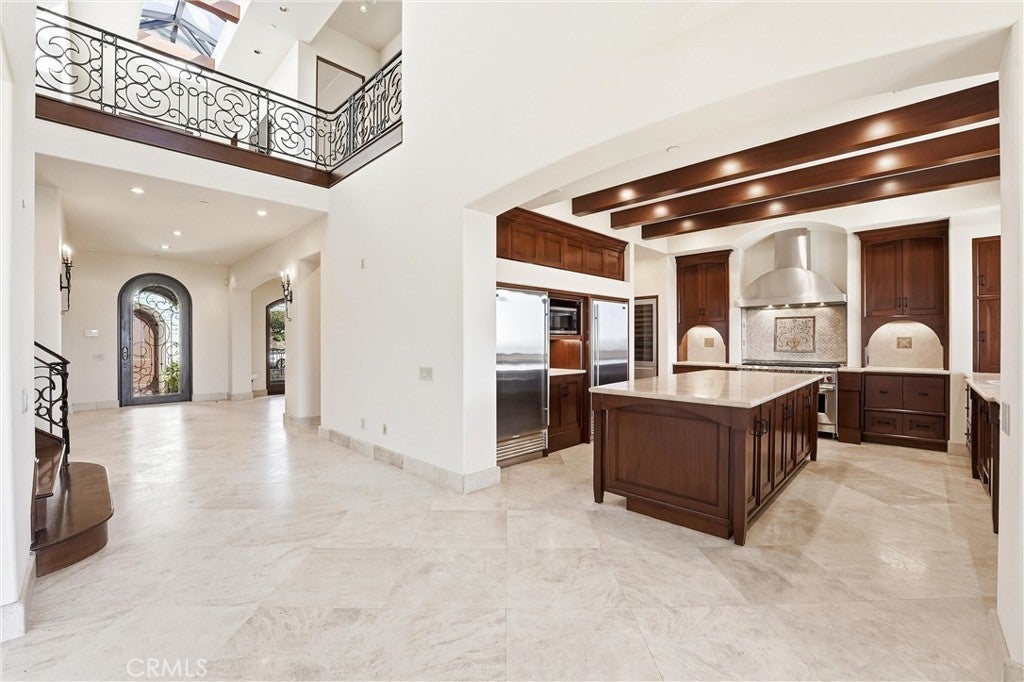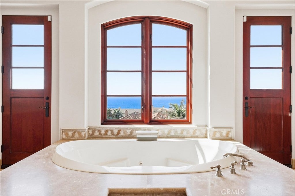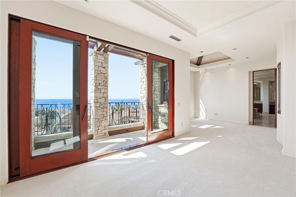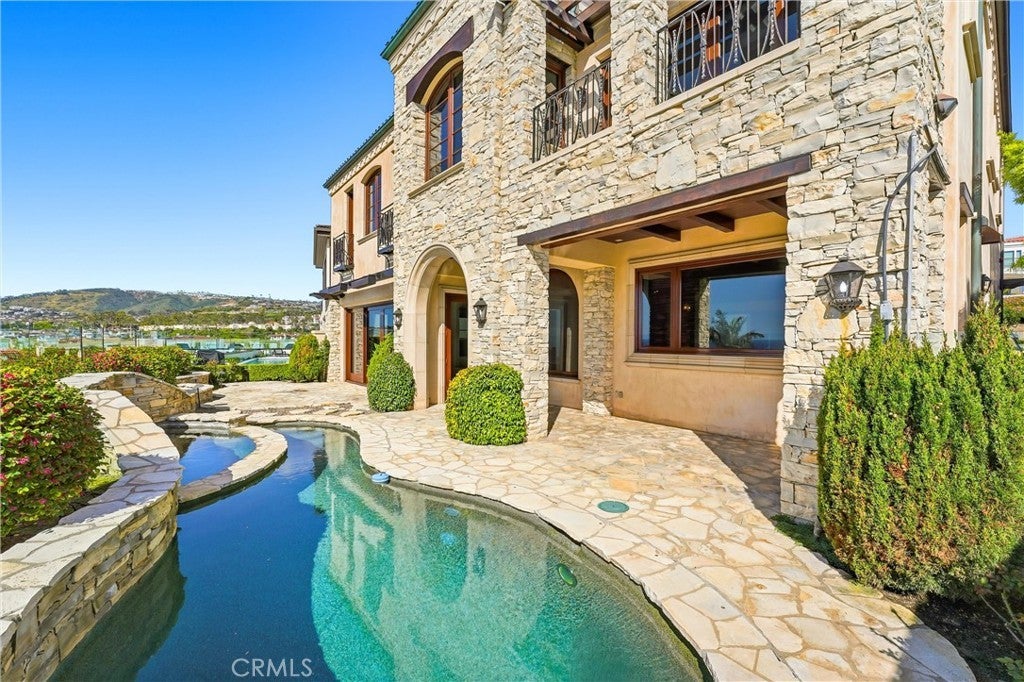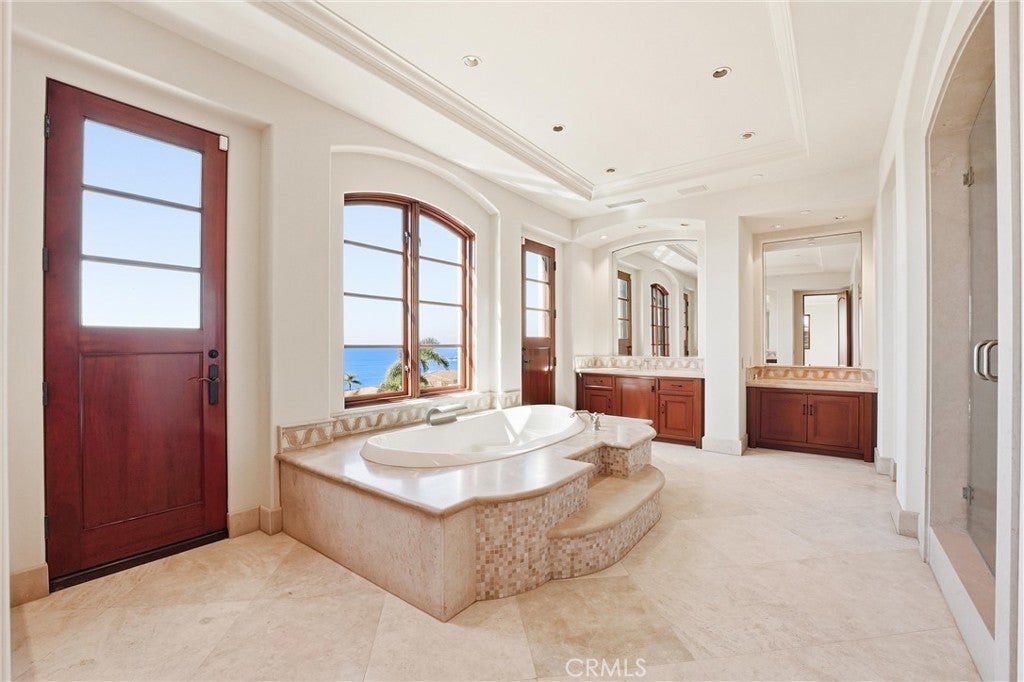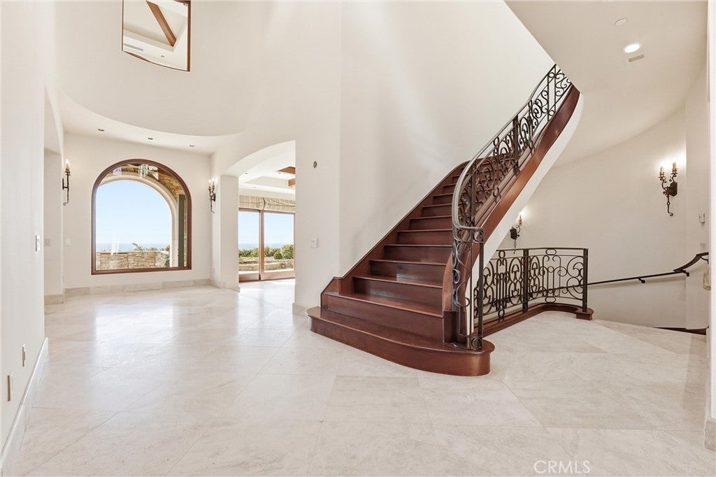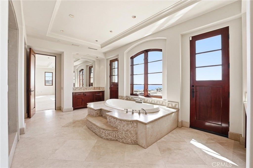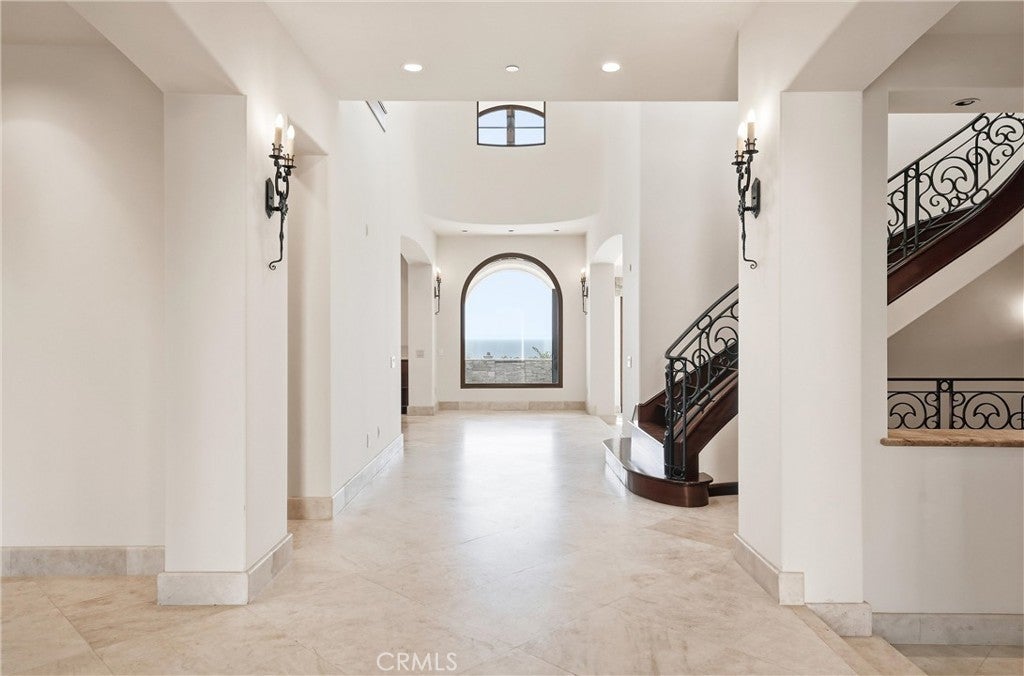 This Italian-inspired custom villa is in the prestigious guard-gated community of Ritz Cove in Monarch Beach, California. It is situated on a quiet cul-de-sac street and is neighboring the Ritz-Carlton and Waldorf Astoria resorts. This estate includes 4 spacious en-suite bedrooms and a detached private casita, 6 bathrooms an oversized subterranean garage with a separate storage/work area. The main floor Features a formal living with a fireplace, dining room and a large chef’s kitchen with high-end appliances, a walk-in pantry, and an eat-at island. The kitchen flows into an oversized family room with built-in entertainment, fireplace and access to the resort style backyard designed for entertaining with a pool, spa, built-in BBQ, all to enjoy the ocean backdrop and stunning Catalina island and sunset views. The Upper Level includes a large primary suite with a fireplace, oversized dressing room stye closet with custom built cabinets, the two secondary en-suite bedrooms feature walk-in closets, all of the bedrooms have balconies. This level also houses a built-out office and a secondary entertainment area. The subterranean level is dedicated to leisure, featuring a custom home theater with oversized recliner seating, a flex room, ideal for a gym or yoga area, and an entertainment room with a wet-bar and wine fridge. The front courtyard features a majestic stone-faced fireplace. Ritz Cove is a private gated community that also includes a private entrance to walking and bicycle paths leading directly to Salt Creek Beach. It is minutes away from Dana Point Harbor and the upscale shops and dining of the Lantern District.