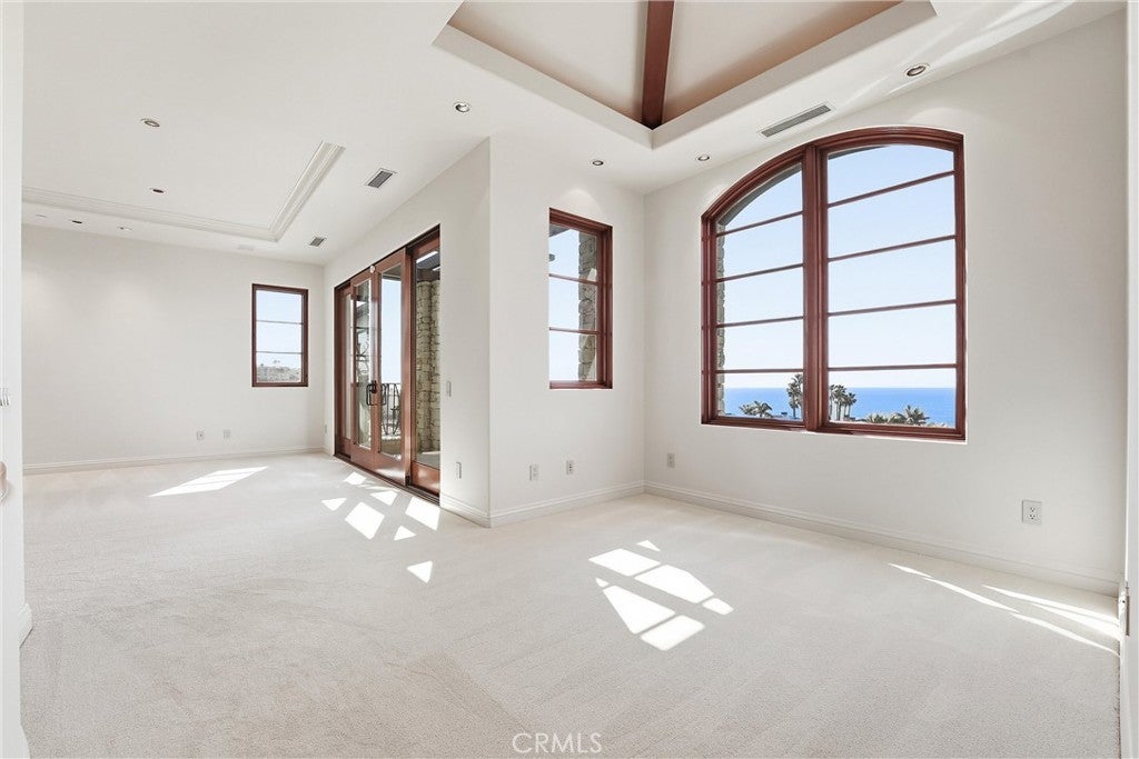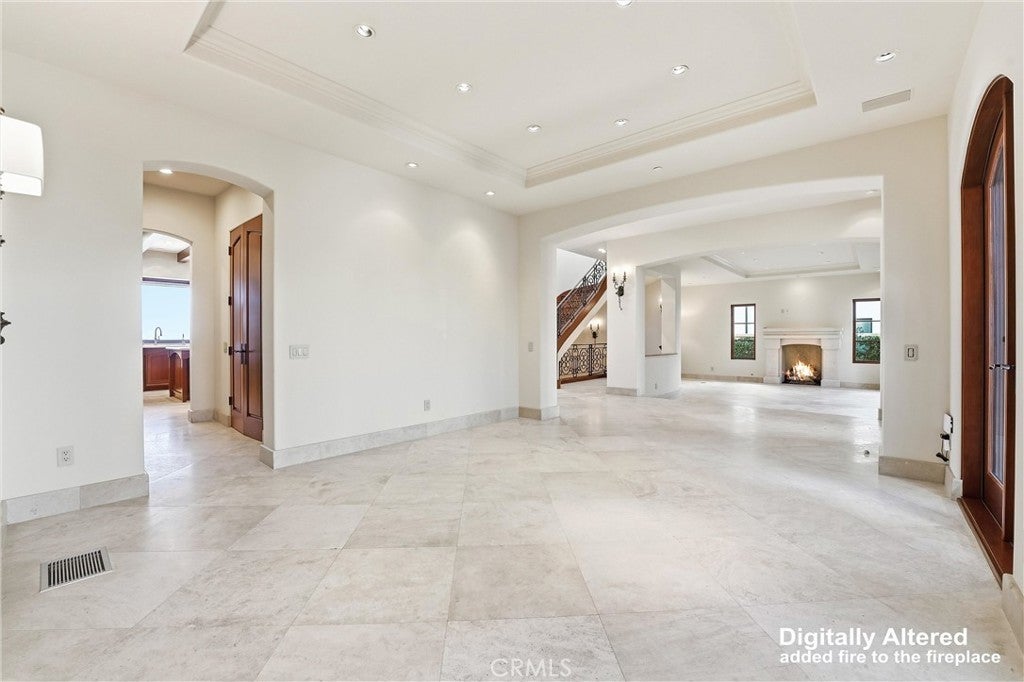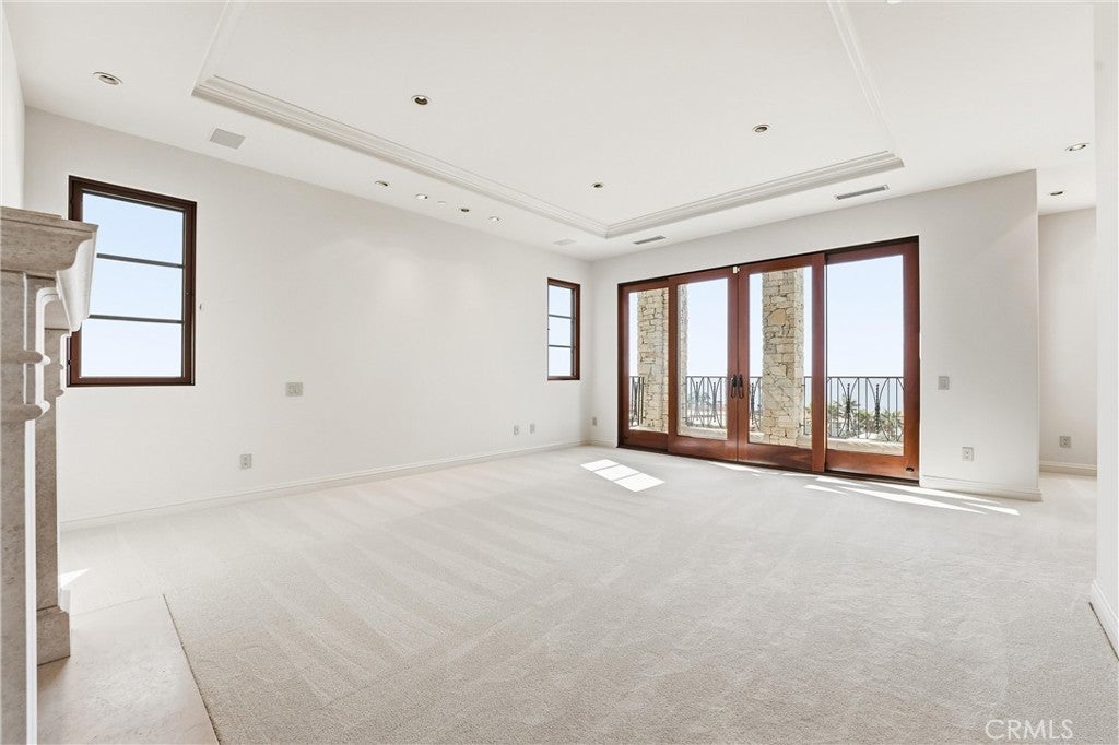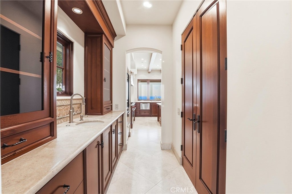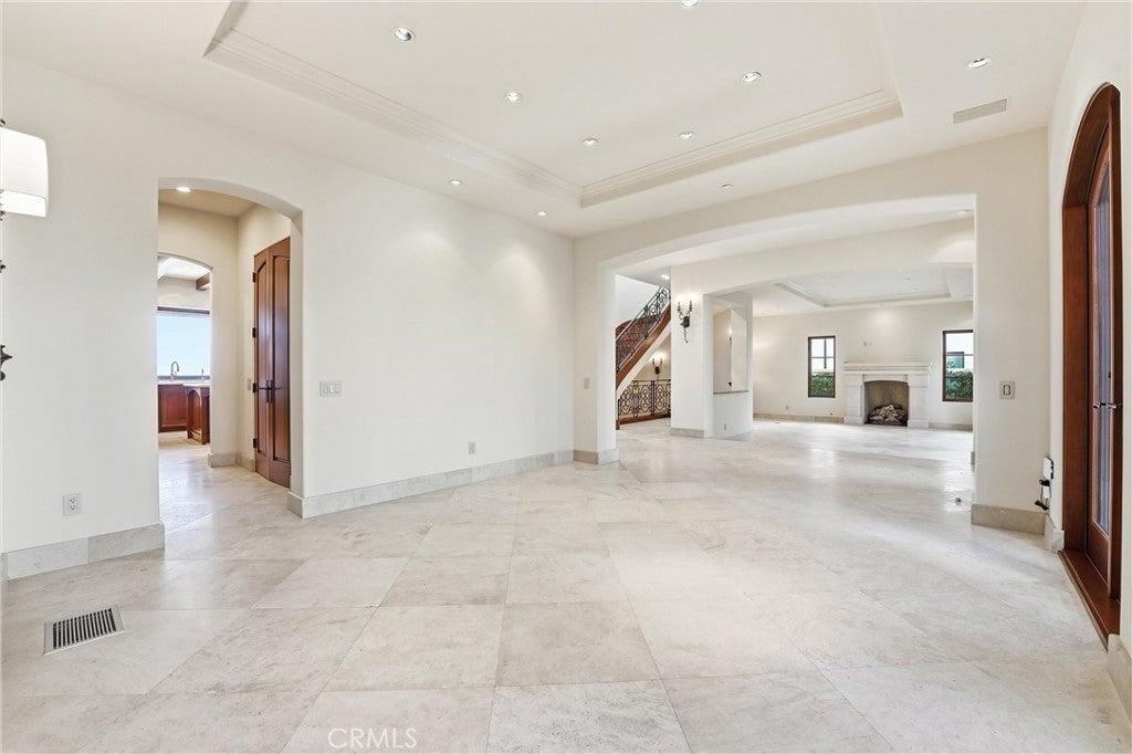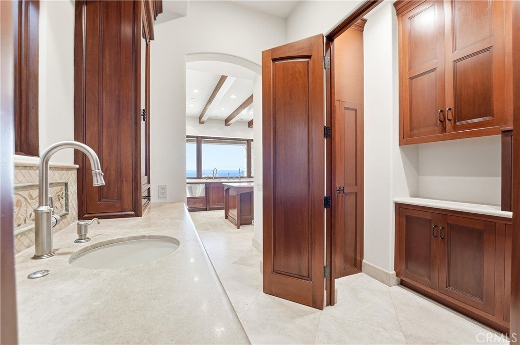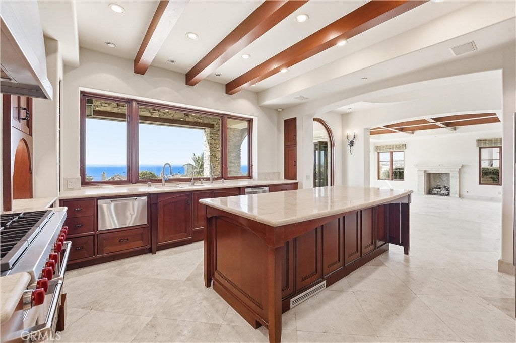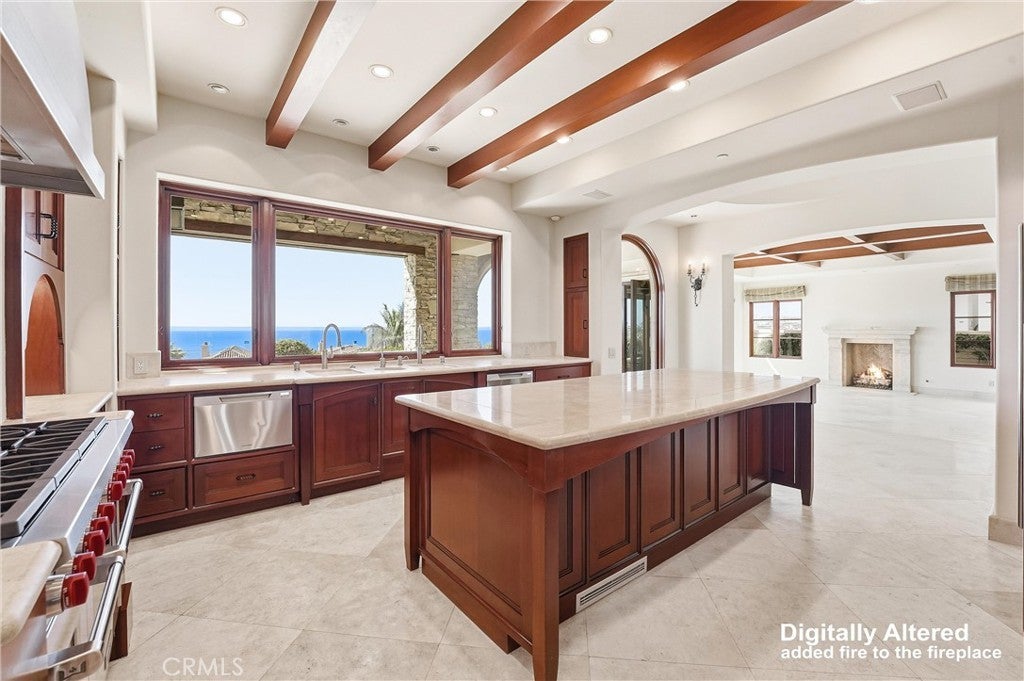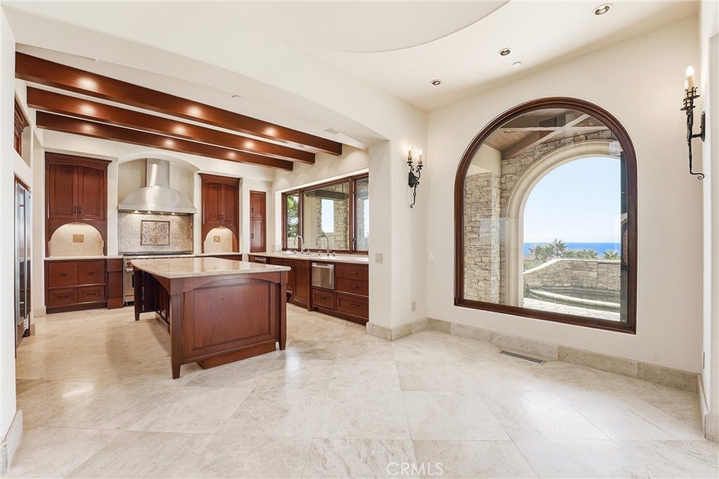 This Italian-inspired custom villa is in the prestigious guard-gated community of Ritz Cove in Monarch Beach, California. It is situated on a quiet cul-de-sac street and is neighboring the Ritz-Carlton and Waldorf Astoria resorts. This estate includes 4 spacious en-suite bedrooms and a detached private casita, 6 bathrooms an oversized subterranean garage with a separate storage/work area. The main floor Features a formal living with a fireplace, dining room and a large chef’s kitchen with high-end appliances, a walk-in pantry, and an eat-at island. The kitchen flows into an oversized family room with built-in entertainment, fireplace and access to the resort style backyard designed for entertaining with a pool, spa, built-in BBQ, all to enjoy the ocean backdrop and stunning Catalina island and sunset views. The Upper Level includes a large primary suite with a fireplace, oversized dressing room stye closet with custom built cabinets, the two secondary en-suite bedrooms feature walk-in closets, all of the bedrooms have balconies. This level also houses a built-out office and a secondary entertainment area. The subterranean level is dedicated to leisure, featuring a custom home theater with oversized recliner seating, a flex room, ideal for a gym or yoga area, and an entertainment room with a wet-bar and wine fridge. The front courtyard features a majestic stone-faced fireplace. Ritz Cove is a private gated community that also includes a private entrance to walking and bicycle paths leading directly to Salt Creek Beach. It is minutes away from Dana Point Harbor and the upscale shops and dining of the Lantern District.