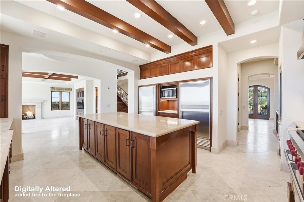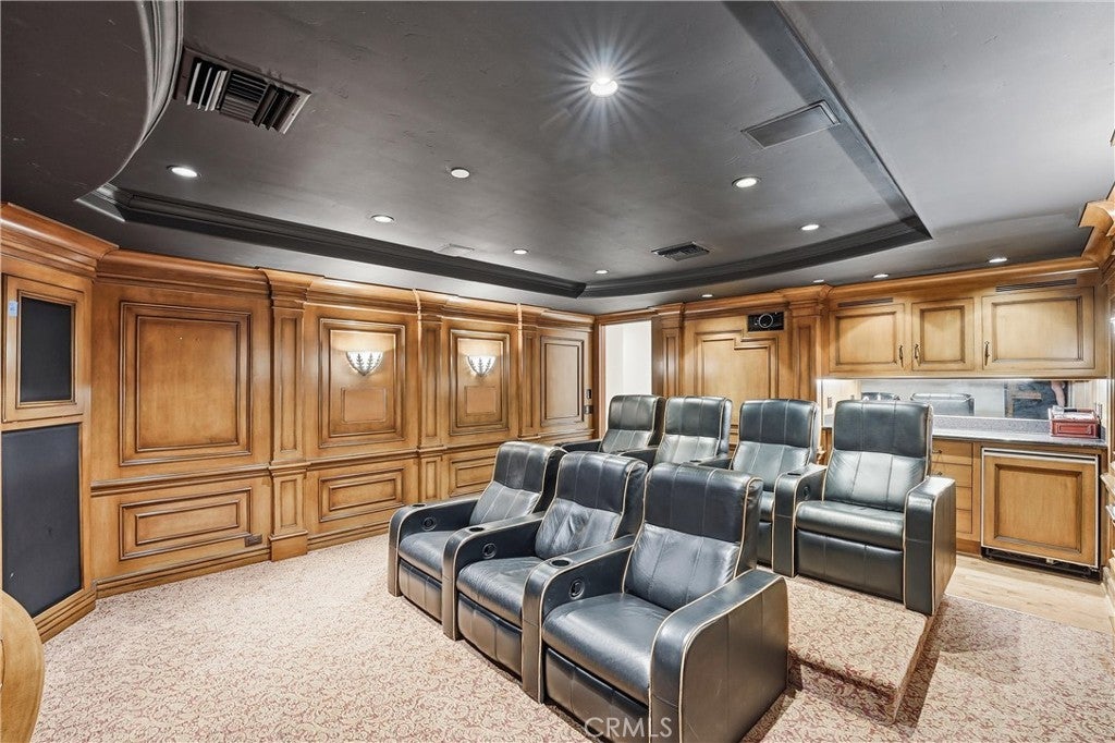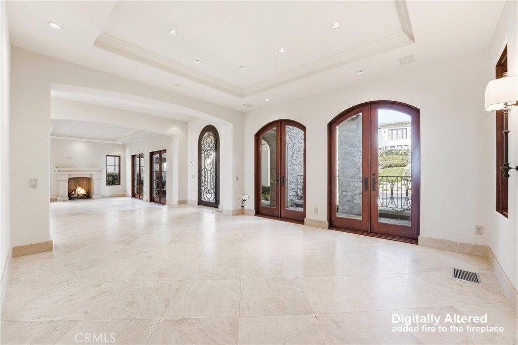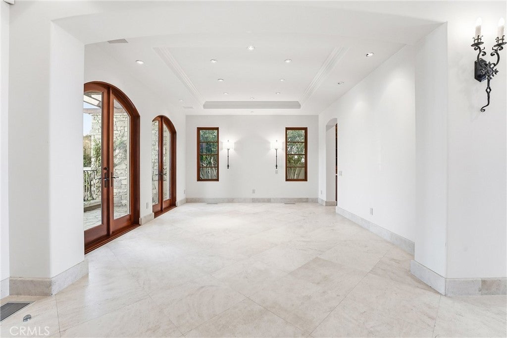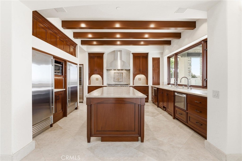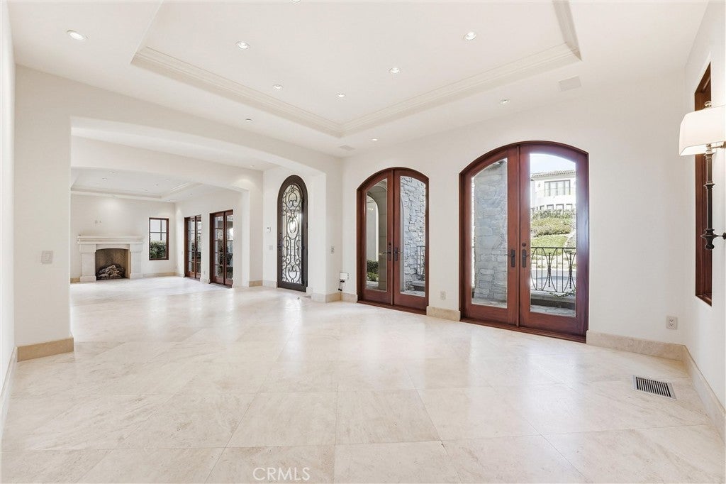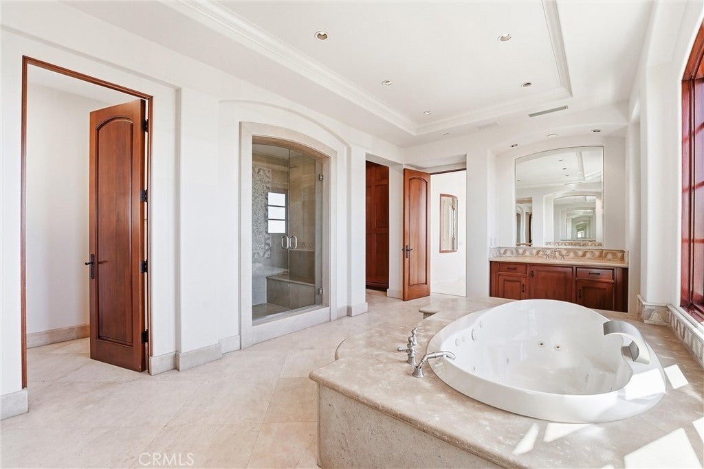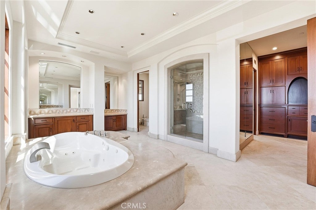 This Italian-inspired custom villa is in the prestigious guard-gated community of Ritz Cove in Monarch Beach, California. It is situated on a quiet cul-de-sac street and is neighboring the Ritz-Carlton and Waldorf Astoria resorts. This estate includes 4 spacious en-suite bedrooms and a detached private casita, 6 bathrooms an oversized subterranean garage with a separate storage/work area. The main floor Features a formal living with a fireplace, dining room and a large chef’s kitchen with high-end appliances, a walk-in pantry, and an eat-at island. The kitchen flows into an oversized family room with built-in entertainment, fireplace and access to the resort style backyard designed for entertaining with a pool, spa, built-in BBQ, all to enjoy the ocean backdrop and stunning Catalina island and sunset views. The Upper Level includes a large primary suite with a fireplace, oversized dressing room stye closet with custom built cabinets, the two secondary en-suite bedrooms feature walk-in closets, all of the bedrooms have balconies. This level also houses a built-out office and a secondary entertainment area. The subterranean level is dedicated to leisure, featuring a custom home theater with oversized recliner seating, a flex room, ideal for a gym or yoga area, and an entertainment room with a wet-bar and wine fridge. The front courtyard features a majestic stone-faced fireplace. Ritz Cove is a private gated community that also includes a private entrance to walking and bicycle paths leading directly to Salt Creek Beach. It is minutes away from Dana Point Harbor and the upscale shops and dining of the Lantern District.