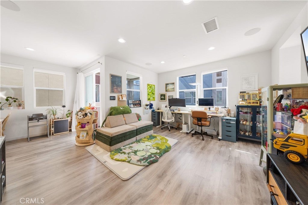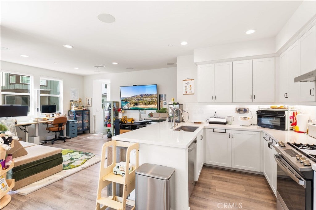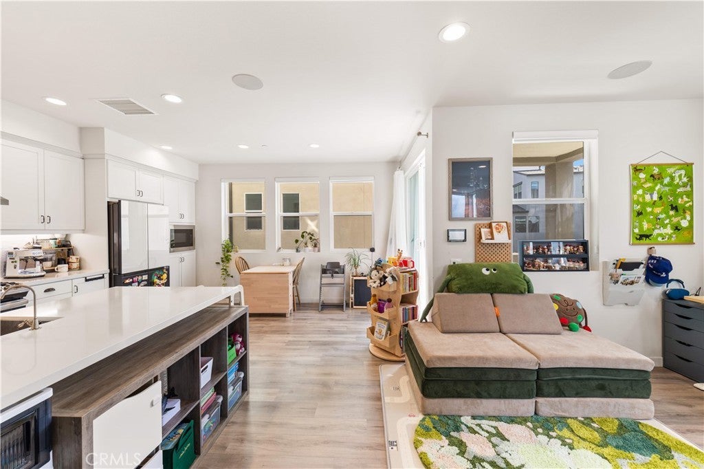 Located in the highly sought-after Great Park Neighborhoods of Irvine, this beautifully upgraded 2-bedroom, 2.5-bathroom townhome in Novel Park offers contemporary living with comfort and refined style.This thoughtfully designed three-story residence features a bright and airy open floor plan filled with natural light, upgraded flooring, recessed lighting, and a direct-access two-car garage equipped with an EV charging station.The main living level showcases a spacious open-concept layout highlighted by a sleek kitchen with stainless steel appliances, a subway tile backsplash, and an oversized center island—perfect for both everyday living and entertaining. Built-in speakers further enhance the ambiance, creating an immersive audio experience. A private patio extends the home outdoors, providing an ideal setting for relaxation.Upstairs, the primary suite features a generous walk-in closet and a dual-sink vanity bathroom. The secondary bedroom includes its own en-suite bath, offering comfort and privacy for guests or family members. Residents enjoy access to resort-style amenities including pools, clubhouses, sports courts, playgrounds, dog parks, and scenic walking trails—all within the award-winning Irvine Unified School District.Ideally located near Woodbury Town Center, Irvine Spectrum, and Irvine/Tustin Marketplace, with convenient access to major freeways, Laguna Beach, Newport Beach, and John Wayne Airport, this home offers the very best of Great Park living.