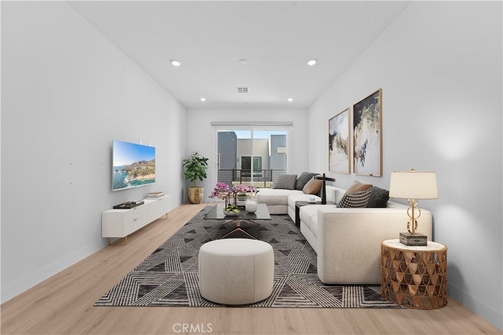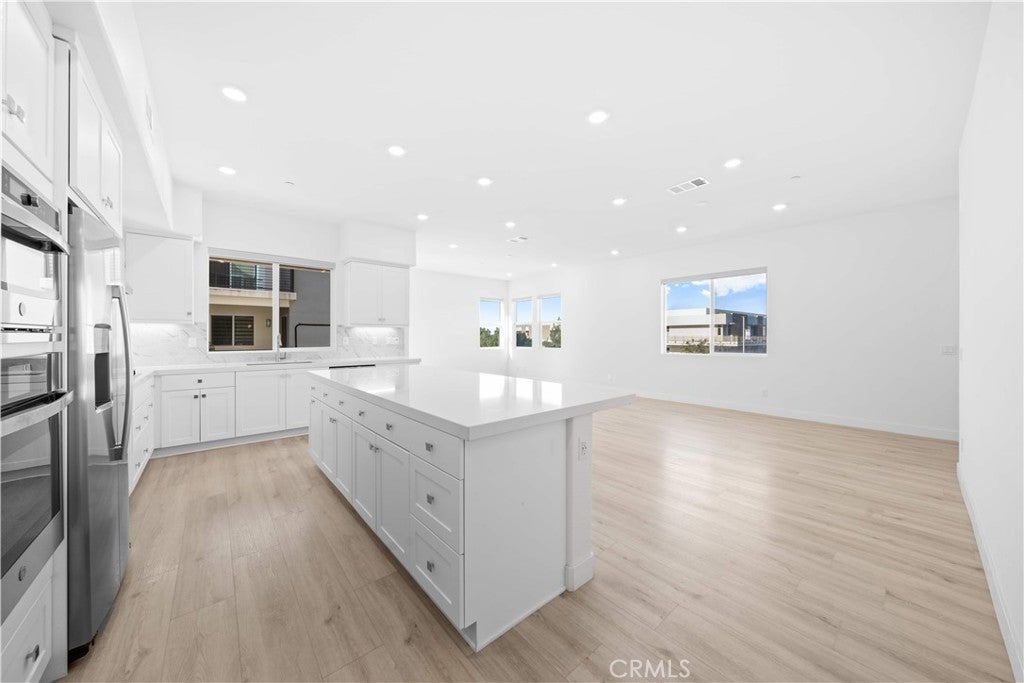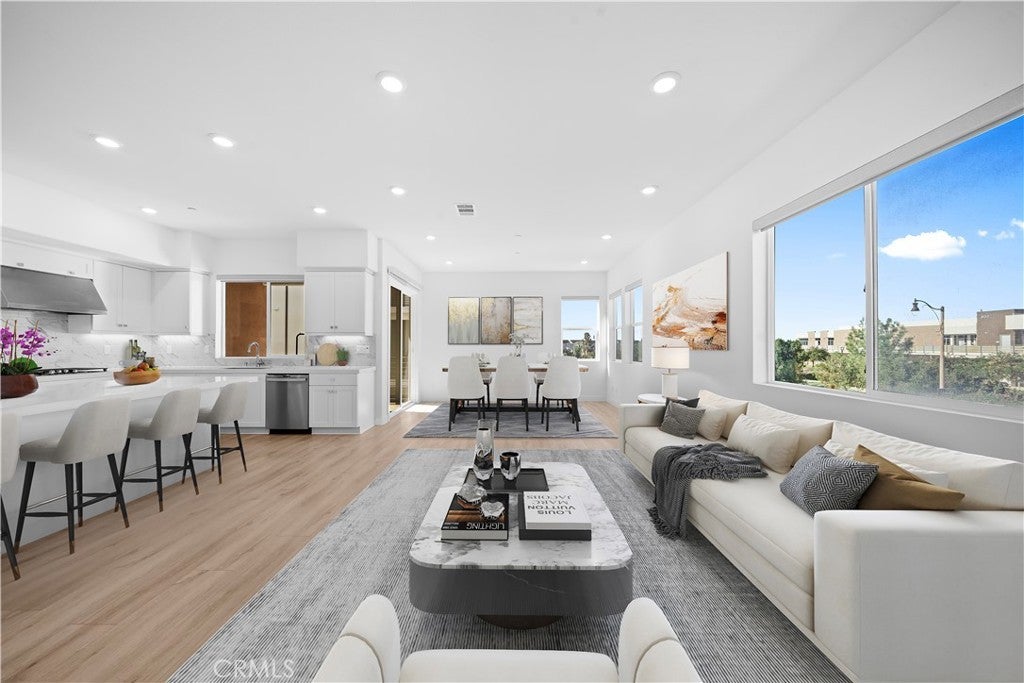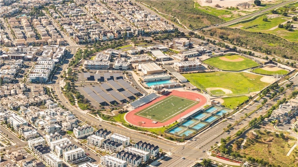 Discover a stunning tri-level townhome, thoughtfully designed and situated directly across from the award-winning Portola High School in one of Irvine's most sought-after communities. This residence features 3 bedrooms, 3.5 bathrooms, and a versatile loft that easily adapts to your needs—whether as a home office, media room, or extra lounge. The second floor boasts an inviting open-concept layout, where the living and dining areas flow seamlessly into a modern kitchen equipped with sleek stainless-steel appliances, contemporary cabinetry, and generous counter space. A private ensuite bedroom on this level offers ideal accommodations for guests or multi-generational living, while a convenient powder room adds to the home's everyday functionality. The third floor is designed for comfort and light, showcasing a bright loft, a luxurious primary suite with a spa-inspired bathroom, and an additional secondary bedroom and bath. Beautiful wood-like flooring runs throughout, enhancing the modern aesthetic while ensuring easy maintenance. Two charming balconies provide peaceful spots to enjoy morning coffee or evening breezes. With its main entrance on Merit, this home offers unmatched convenience—just steps from Portola High School, making it an exceptional choice for families. As part of the renowned Great Park Neighborhoods, residents enjoy world-class amenities, including parks, a clubhouse, heated pools and spas, sports courts, playgrounds, and picnic areas—perfect for both active living and community connection. From the moment you arrive, this home offers the perfect blend of comfort, style, and everyday convenience—truly a rare find in the heart of the Great Park Neighborhoods.