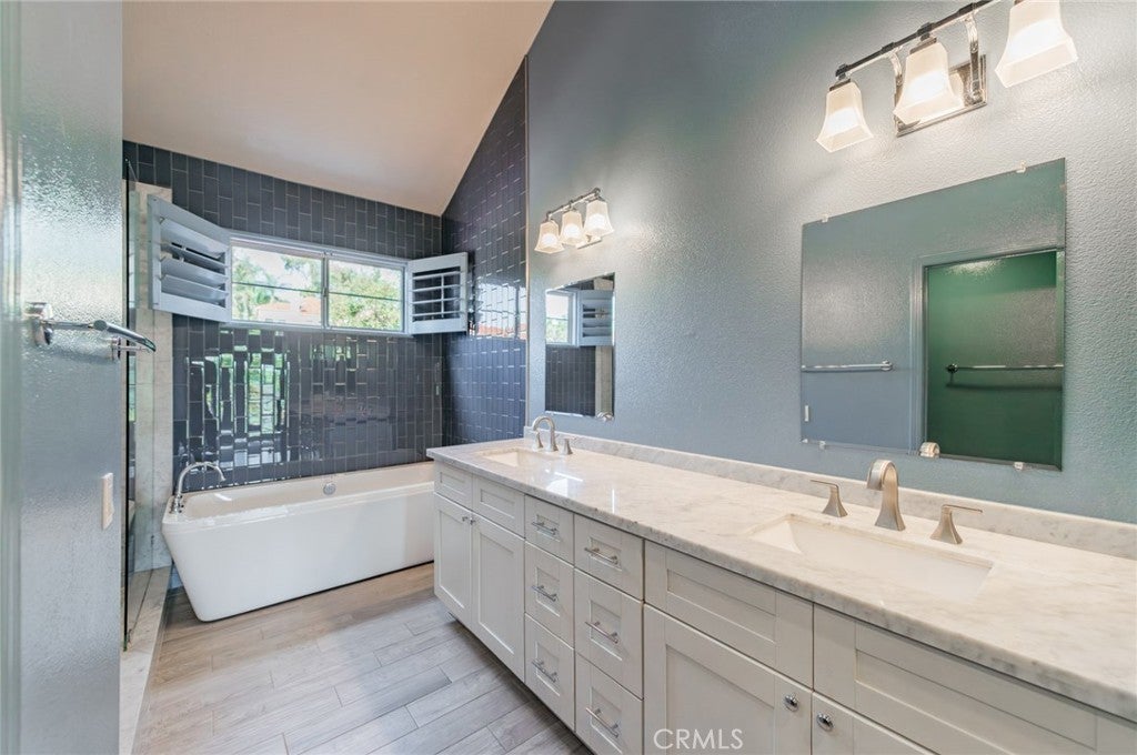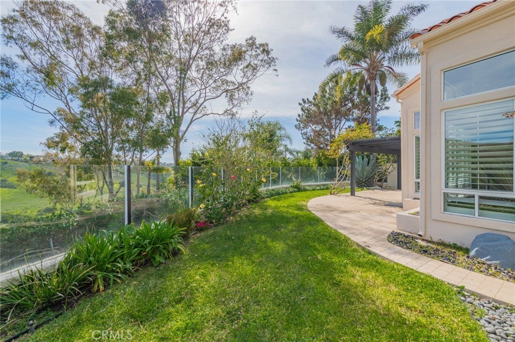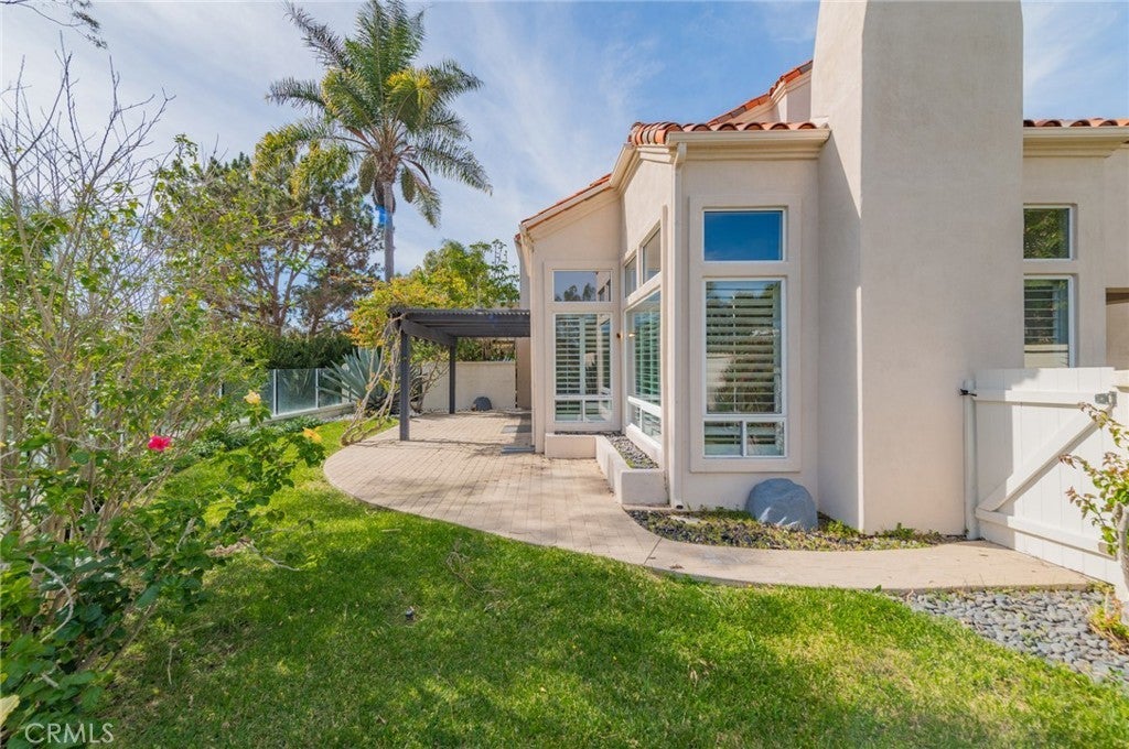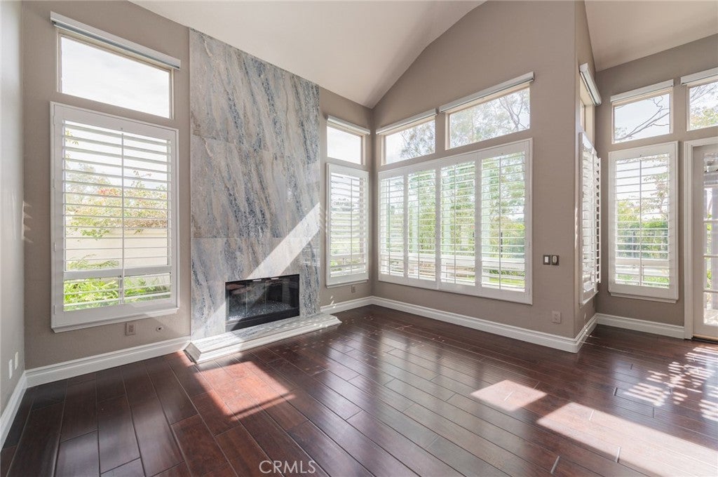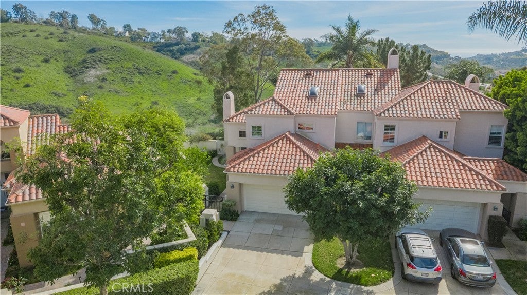 Gated Siena Community in Marina Hills! This upgraded 3 bedroom + loft, 3 bathroom corner home offers an open-concept layout with great natural light, hillside views, and added privacy. Features include hardwood and porcelain tile floors, soaring ceilings, a statement fireplace, and large windows throughout. The remodeled kitchen opens to the living space and includes Carrara marble counters and backsplash, GE Monogram stainless steel appliances, dual ovens, wine fridge, and a 5-burner gas range. One bedroom and a remodeled bath are conveniently located downstairs (ideal for office or guest use). The spacious primary suite features vaulted ceilings, a private view deck, and a spa-style bathroom with marble finishes, soaking tub, and large walk-in shower. Enjoy a wraparound yard with patio, pergola, and peaceful nature views. Additional highlights include newer A/C, shutters, water softener, and access to Siena’s pool/spa plus Marina Hills amenities including clubhouse, Jr. Olympic pool, tennis, pickleball, parks, and nearby trails to Salt Creek Beach.