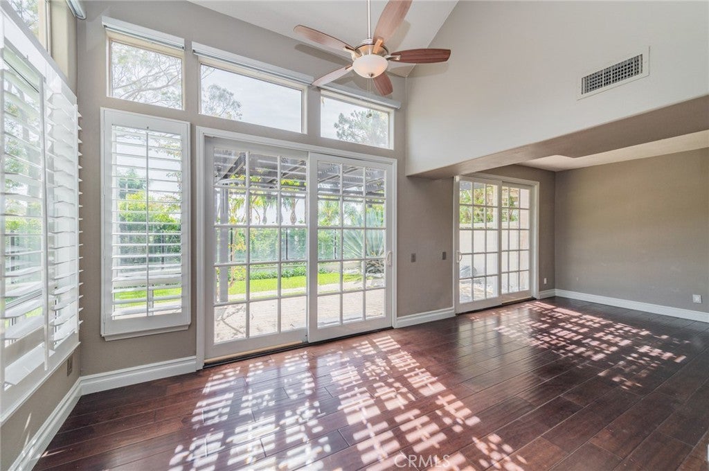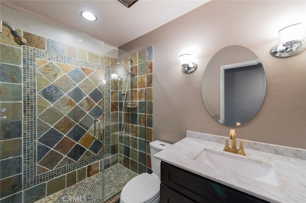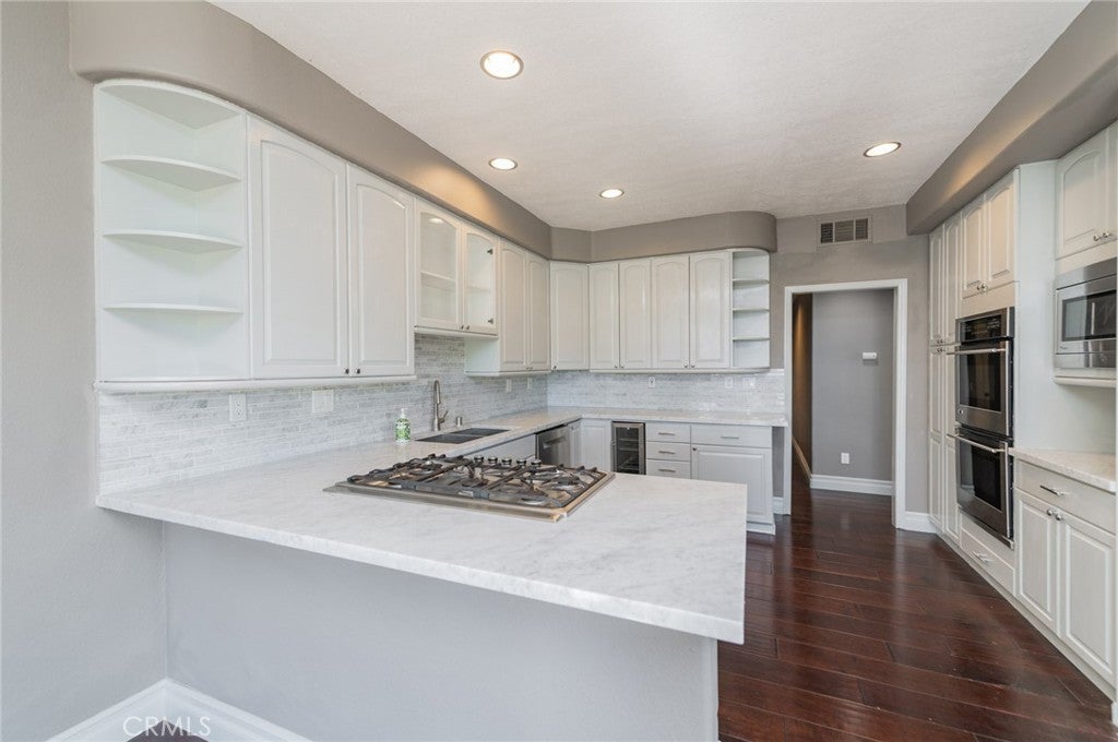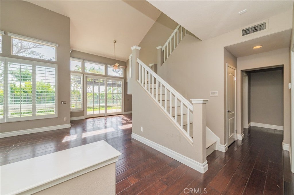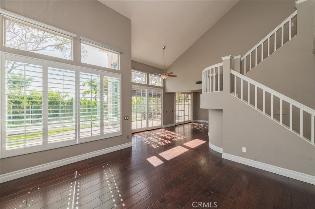 Gated Siena Community in Marina Hills! This upgraded 3 bedroom + loft, 3 bathroom corner home offers an open-concept layout with great natural light, hillside views, and added privacy. Features include hardwood and porcelain tile floors, soaring ceilings, a statement fireplace, and large windows throughout. The remodeled kitchen opens to the living space and includes Carrara marble counters and backsplash, GE Monogram stainless steel appliances, dual ovens, wine fridge, and a 5-burner gas range. One bedroom and a remodeled bath are conveniently located downstairs (ideal for office or guest use). The spacious primary suite features vaulted ceilings, a private view deck, and a spa-style bathroom with marble finishes, soaking tub, and large walk-in shower. Enjoy a wraparound yard with patio, pergola, and peaceful nature views. Additional highlights include newer A/C, shutters, water softener, and access to Siena’s pool/spa plus Marina Hills amenities including clubhouse, Jr. Olympic pool, tennis, pickleball, parks, and nearby trails to Salt Creek Beach.