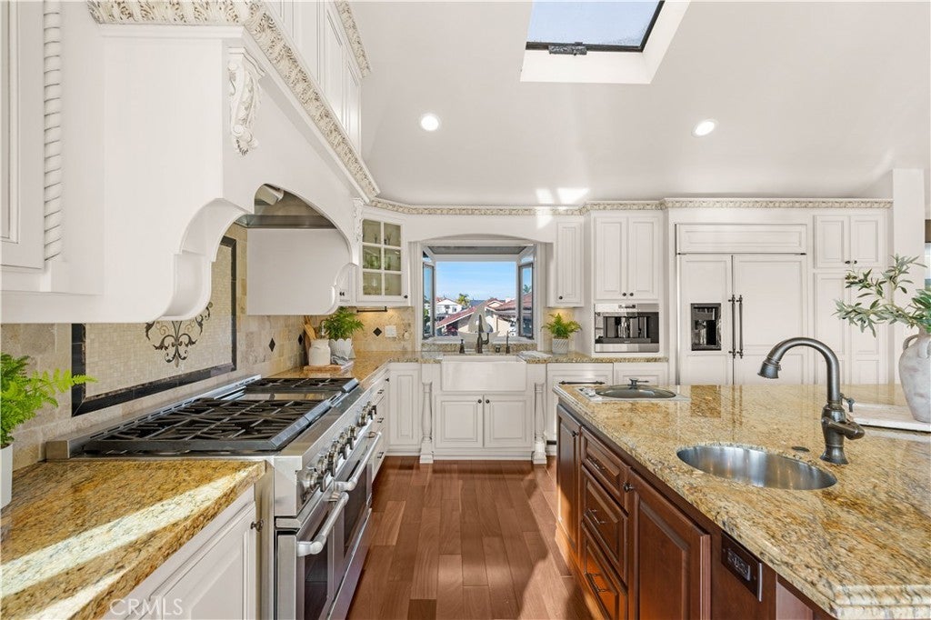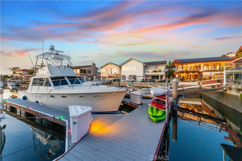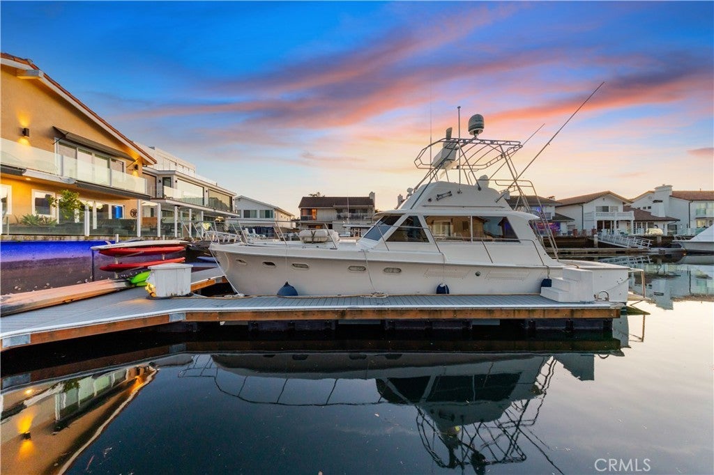 This exclusive waterfront home is located on prestigious Humboldt Island in Huntington Harbour, offering direct water access and panoramic harbor views. This stunning two story residence features four bedrooms, three and a half bathrooms, and an open, airy floor plan designed for both everyday living and entertaining. Enjoy your private dock with space for a boat or yacht up to approximately 35 feet, plus additional storage for paddleboards and kayaks. The home includes fully paid off solar panels with battery storage, providing maximum energy efficiency and long term savings. Interior highlights include gleaming hardwood floors, a gourmet kitchen, and a luxurious primary suite with a walk in closet, a steam shower with a rainfall showerhead, and a heated towel rack. Outdoor living spaces feature a charming front courtyard with a fountain, a backyard entertaining area with a built in fireplace and BBQ, paver landscaping throughout, and an upper deck with breathtaking harbor views. The two car garage offers epoxy flooring and a custom built in kitchenette, ideal for hobbies, entertaining overflow, or extra workspace. Located in a highly desirable and secure harbor community, this home is within walking distance to beaches, dining, shopping, and scenic coastal trails. Experience the ultimate Southern California harbor lifestyle, with endless water activities right at your doorstep.