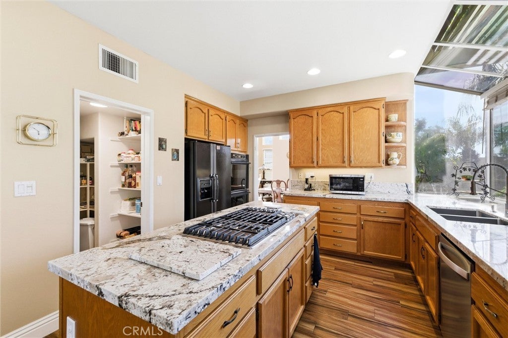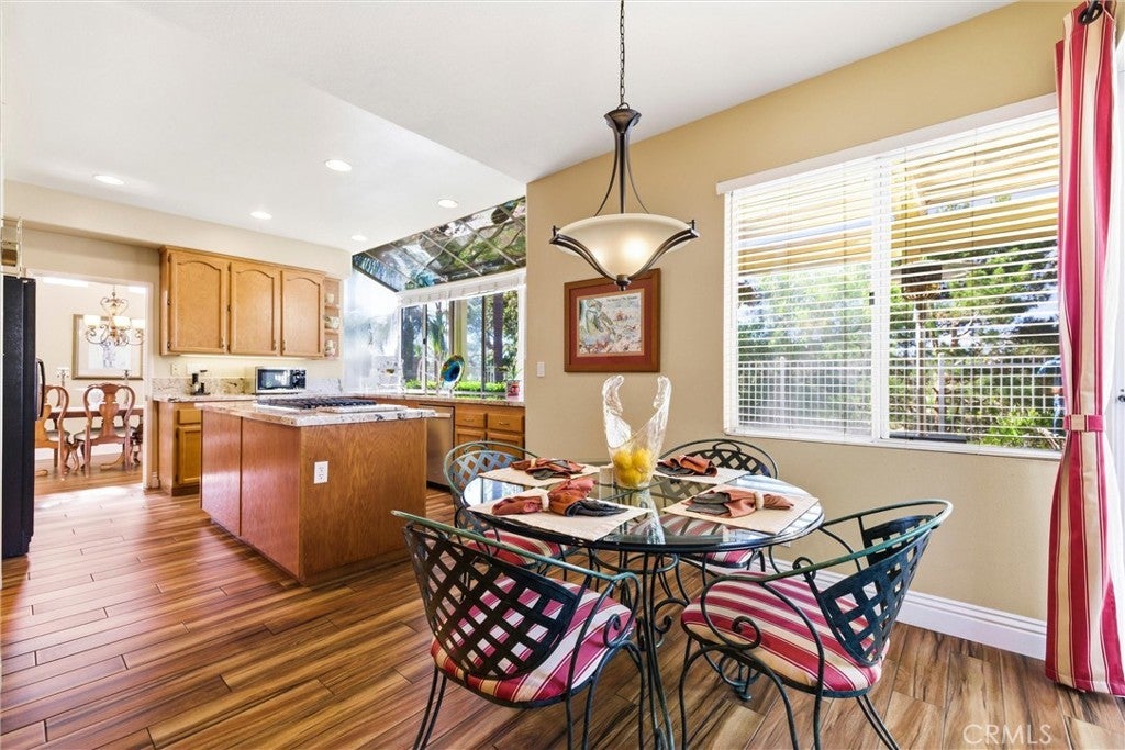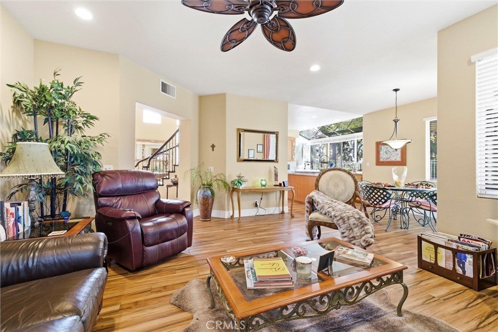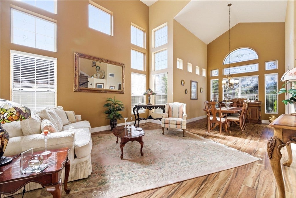 Turnkey home in the desirable Estrella Vista community of Melinda Heights. Great floorplan offering 4 bedrooms, 3 bathrooms, PLUS a large bonus room, including a main-floor bedroom and full bath. Features include custom marble entry, soaring cathedral ceilings, formal living and dining rooms with stained-glass windows, elegant spiral staircase with designer wrought-iron railings, plank-style tile flooring, upgraded baseboards, spacious family room with fireplace, and an updated kitchen with newer granite countertops, walk-in pantry, dual ovens, and large garden window with beautiful views. Upstairs features spacious secondary bedrooms, a large primary suite with retreat, walk-in closet, mirrored secondary closet, and en-suite bath with walk-in shower and soaking tub. Spacious bonus room offers flexible space for media, office, entertainment or a fifth bedroom. Entire home has been Re-piped with PEX piping. Private and quiet backyard with covered patio, built-in BBQ, in-ground spa, turf, lush landscaping, and sunset views. Resort style amenities: including 4 pools, 13 parks, sport courts, picnic shelters, playgrounds, hiking and biking trails, club house and meeting rooms. Enjoy the popular Lago Santa Margarita with a 1.1-mile walking path and the Beach Club and Lagoon. An abundance of shopping and restaurants close by. Award winning schools and much more...Take the opportunity to experience the lifestyle you’ve always dreamed of!!!