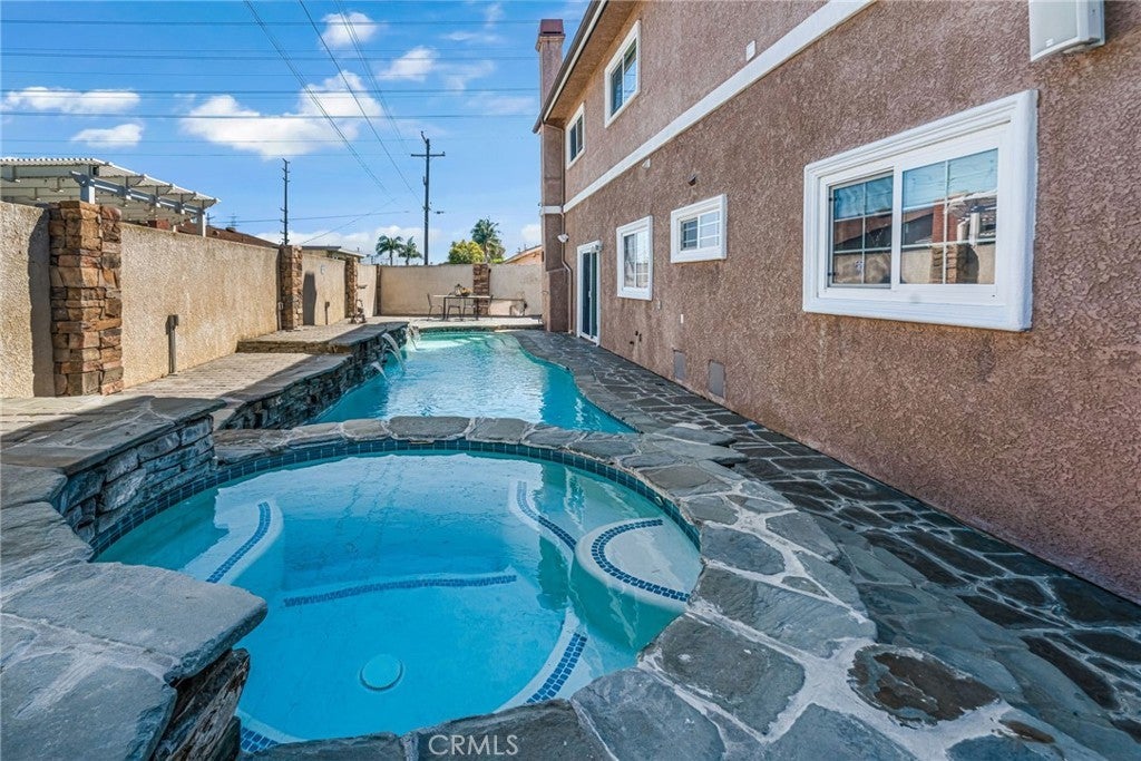 Private upstairs living level with separate entrance, elevator access, primary suite, additional living room, multiple rooms, and three laundry areas designed for true multi-generational living. This one of a kind property delivers a layout that is extremely difficult to find in today’s market. The upper level functions as its own living environment, featuring an expansive primary suite with oversized bathroom, generous closet space, and a functional kitchenette, along with a separate living area and additional rooms accessed through double door entry, creating a highly versatile and private layout within the home. This unique configuration provides flexibility for extended family, guests, or independent living while maintaining connection to the main residence. The main level offers a well-positioned kitchen, multiple living spaces, and a layout that supports both everyday living and entertaining. Throughout the home, three washer and dryer locations add a level of convenience rarely seen. The backyard features a pool and spa designed for year-round enjoyment, enhancing the overall livability of the property. Homes with this type of flexible living level are rare and not easily replicated. Buyers seeking multi-generational living, added privacy, or adaptable space will immediately recognize the value this layout provides. Schedule a showing today to fully experience the layout and potential