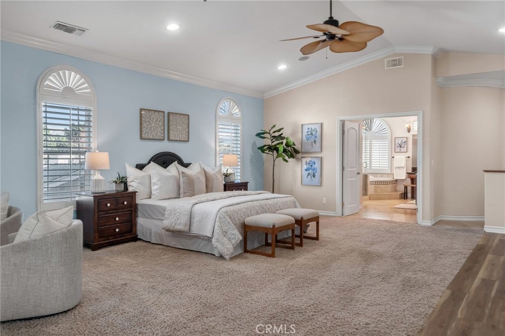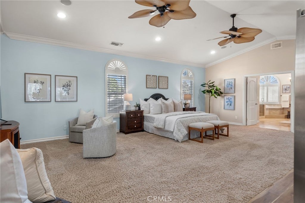 Breakfast Bar, Crown Molding, Cathedral Ceiling(s), Separate/Formal Dining Room, Eat-in Kitchen, High Ceilings, Recessed Lighting, Bedroom on Main Level, Main Level Primary, Primary Suite, Walk-In Closet(s), Elevator, In-Law Floorplan