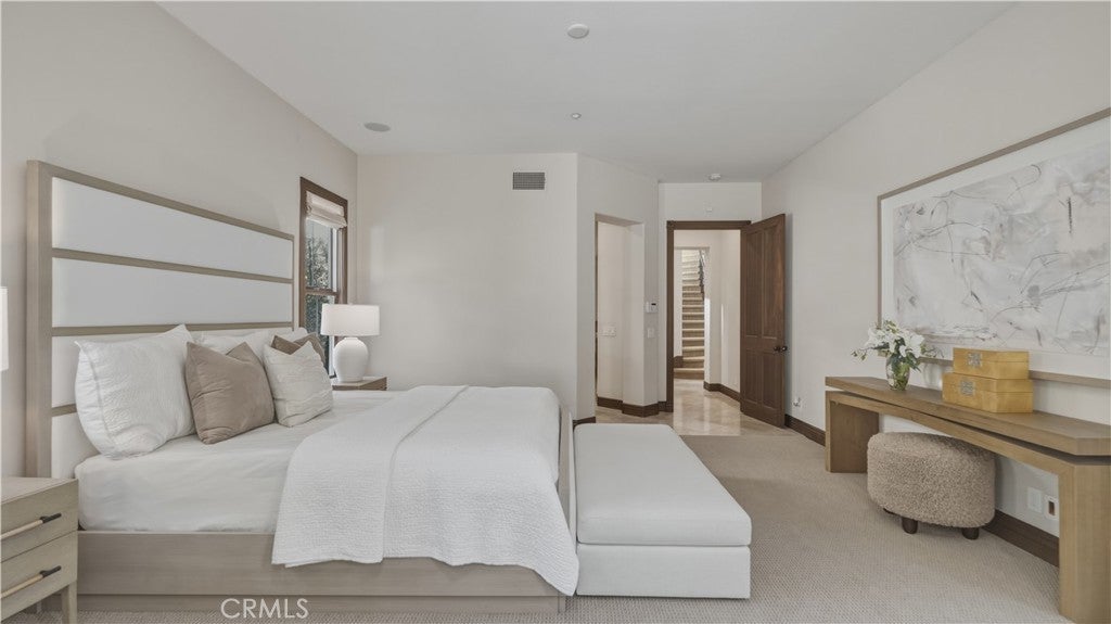 Set within the prestigious guard-gated Coastal Canyon enclave of Sausalito, this thoughtfully upgraded residence is ideally positioned at the end of a quiet cul-de-sac, offering enhanced privacy and a peaceful setting surrounded by open green spaces. The expansive, light-filled floor plan features four generously sized bedrooms, four full bathrooms, powder room, dedicated office, and a spacious bonus room. Designed for seamless indoor-outdoor living, the main living areas open to multiple entertaining patios, a custom built-in bar and barbecue area, and a private resort-style pool and spa—creating an inviting environment for both everyday living and gatherings. An upper-level deck provides tranquil ocean views and additional outdoor space to relax and unwind. Interior upgrades include travertine flooring throughout much of the main level, new carpet, custom crown moldings, extensive woodwork, and fresh interior paint throughout. The gourmet kitchen is appointed with Viking and Sub-Zero appliances, granite countertops, ample cabinetry, and opens directly to a spacious great room ideal for entertaining and casual living. The home is complete with a main-level primary suite and a secondary guest bedroom, offering exceptional convenience and flexibility for guests or multi-generational living. The property offers both tranquility and convenience, just moments from premier shopping, world-class dining, and Southern California’s finest beaches.