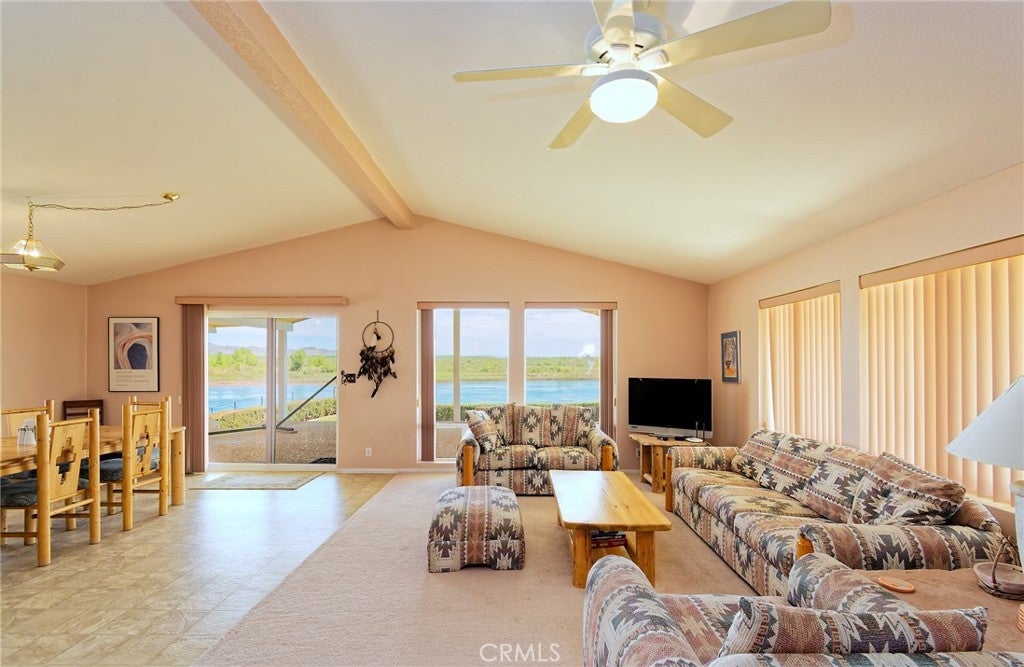 Escape to the Colorado River with this river front property and private boat dock an no HOA! This well maintained, one of a kind home boasts a large covered porch with river views, a lounge deck just above the permanent boat dock and a detached garage with a 6 car capacity to store all the things needed for river or desert fun! The lawn is well groomed with just enough grass to keep you grounded and a horseshoe pit for friendly games. Inside you will find a spacious kitchen and dining area open to the living room with amazing views of sunrises and sunsets. With 3 bedrooms and 3 bathrooms there is plenty of room for sleeping and getting ready for adventure.