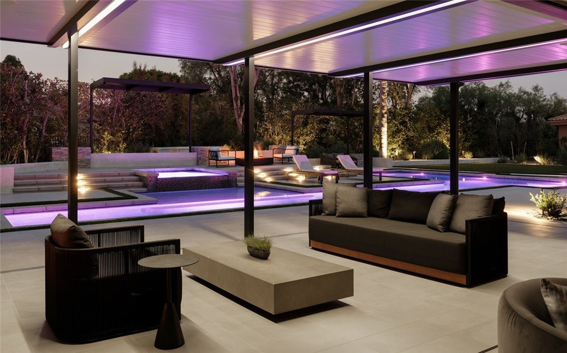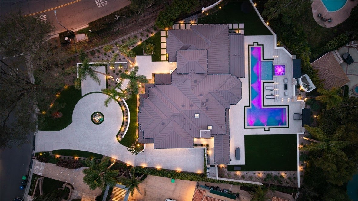 Situated on a premier corner parcel in the coveted community of Nellie Gail Ranch, this newly rebuilt estate blends architectural scale with refined livability. A private roundabout driveway sets a distinguished arrival, leading to a 9-foot pivot entry framed in illuminated stone. Inside, a soaring two-story foyer introduces expansive open-concept living spaces designed for both elevated entertaining and everyday comfort.The chef’s kitchen features a Miele appliance package with an 8-burner range and refrigeration, complemented by a well-appointed butler’s kitchen with secondary Miele refrigerator and dishwasher, ideal for hosting at scale. The main level also includes a private office, a guest suite, a glass-enclosed wine room, and a bonus lounge with wet bar. Upstairs offers four bedrooms, highlighted by an oversized primary suite with volume, privacy, and retreat-like comfort. Automated pocketing glass doors in the living room fully retract creating seamless indoor-outdoor living. Set on an approximate 24,000 square feet lot, the grounds offer a resort-style pool, expansive lawn, built-in outdoor kitchen, dedicated exterior bath, and private sauna. The residence is fully integrated with Savant home automation, including whole-home audio and motorized pocketing shades for effortless control throughout. Secluded within Nellie Gail, yet moments from the 73 and the best of South Orange County.