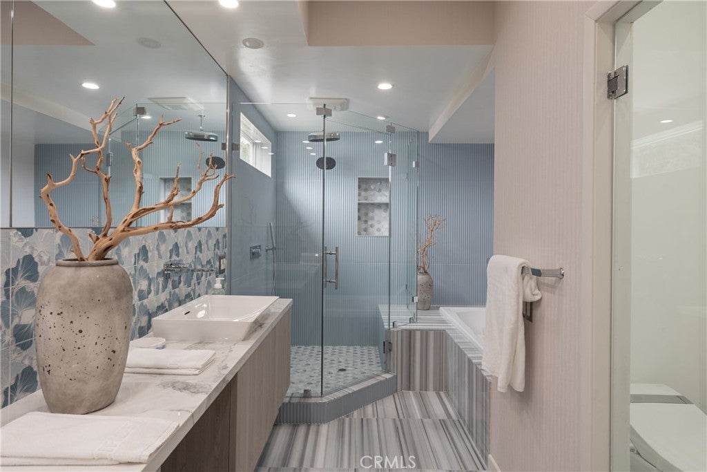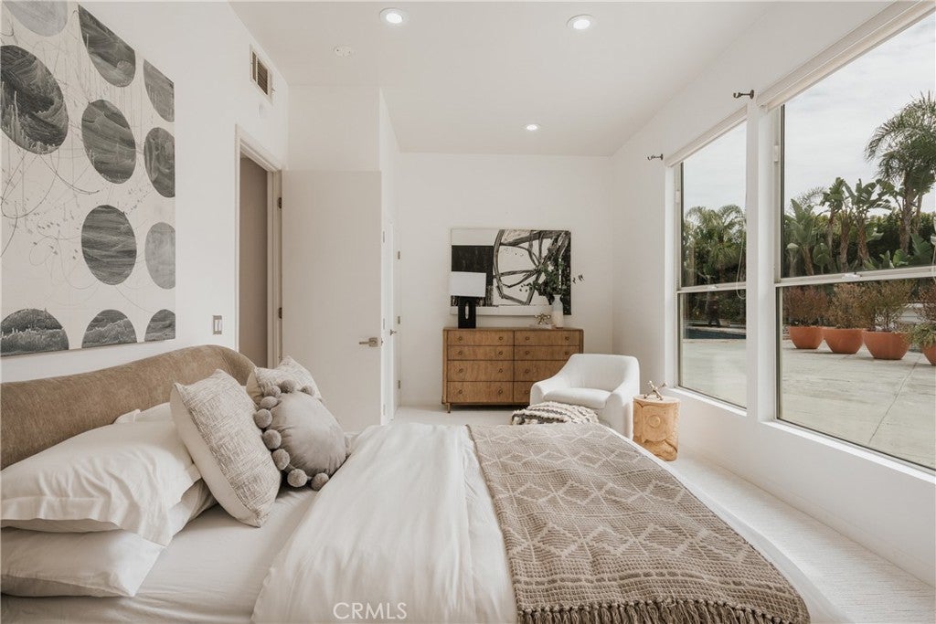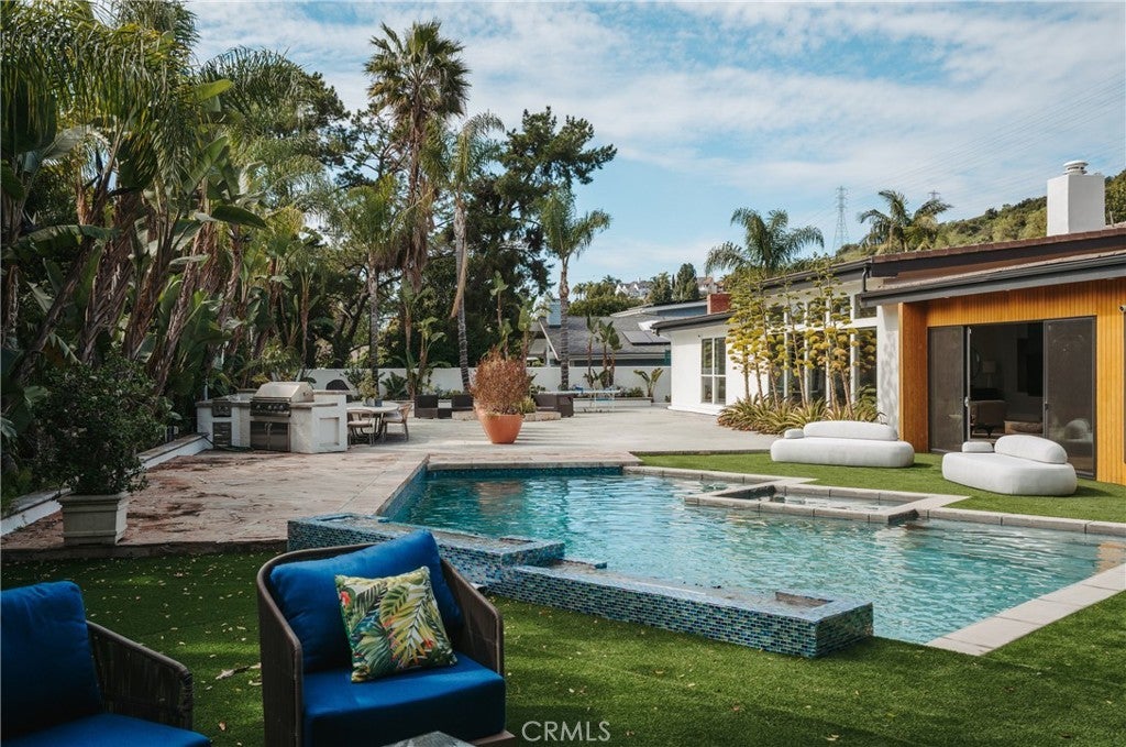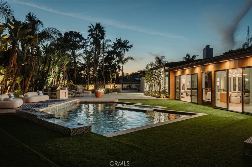 Set on a quiet interior street within Villa Park’s private enclave, this extensively refreshed residence offers approximately 5,888 square feet of bright, functional living on a sprawling 20,000+ square foot lot. The floor plan was designed for everyday comfort and flexibility. A main-level primary suite serves as a private retreat with dual walk-in closets and a fully remodeled spa-style bath that has never been used. Additional first-floor bedrooms allow for convenient single-level living, while upstairs bedrooms and a loft create separation ideal for guests, workspace, or multi-generational needs. In total, the home offers six bedrooms and six and one-half bathrooms, including multiple en-suite rooms. Large spans of glass and generous ceiling height fill the main living areas with natural light and create an open, welcoming atmosphere without sacrificing warmth. The spaces transition naturally outdoors to a wide, flat backyard, uncommon for the area, designed for both quiet daily use and large gatherings. Mature landscaping, newer drought-tolerant plantings, new turf throughout the yard, and a renovated pebble-tech pool and spa create a private setting that feels relaxed yet expansive. At the center of the home, the kitchen blends modern European design with everyday functionality, featuring Italian Snaidero cabinetry, a Wolf range, steam and conventional ovens, a dedicated coffee station, and a casual dining area positioned for daily living. Updated sliding doors further enhance the indoor-outdoor connection. Recent improvements throughout the property include new vinyl flooring across the first level, new carpeting in bedrooms, refreshed interior and exterior paint, LED recessed lighting, updated wallpaper accents, renovated landscaping, sliding door upgrades, and preventative roof tile work. Villa Park is known for its pride of ownership and quiet atmosphere while still offering convenient proximity to restaurants, shopping, freeway access, South Orange County, and greater Los Angeles, a rare combination of privacy and accessibility. Offering scale, usability, and a long list of meaningful updates, the home presents a move-in ready opportunity in one of Orange County’s most established residential communities.