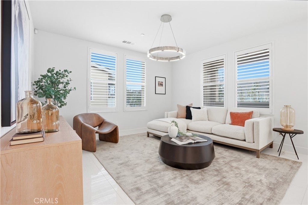 Welcome to an exceptional residence in the highly coveted Sage enclave of Esencia—a sun-drenched, corner-lot, end unit townhome that epitomizes modern luxury living. This elegant 2-bedroom, 2.5-bath home showcases an expansive, open-concept layout situated entirely on a single level, offering an elevated sense of privacy with no neighbors above. Impeccably upgraded, the home features exquisite Portuguese tile flooring, refined stone and granite surfaces, a striking full granite backsplash, and a suite of premium, energy-efficient stainless steel appliances anchored by a designer hooded range. Sophisticated recessed and pendant lighting beautifully complements the home’s bright, contemporary aesthetic. Both bedrooms serve as luxurious suites, each appointed with dual vanities, oversized walk-in showers, plantation shutters, and generous walk-in closets. Additional premium enhancements include Energy Star–rated heating and cooling systems, double-pane Energy Star windows, a tankless water heater, and a spacious attached two-car garage. The residence is turnkey and move-in ready with an included washer, dryer, and refrigerator. Enjoy your morning coffee or evening unwind on the private balcony with tranquil peek-a-boo mountain views. As a resident of Esencia, you will indulge in an unparalleled collection of award-winning, resort-style amenities—state-of-the-art fitness centers, crystalline lagoon pools, community farms, al fresco dining pavilions, dog parks, a charming coffee house, an expansive sports park, arcade, scenic walking trails, verdant parks, thoughtfully designed clubhouses, a horse corral, and a vibrant year-round calendar of HOA-curated events.Perfectly situated, you are moments from a blue-ribbon elementary school, a short 15-minute drive to the coast, and just 20 minutes from Irvine via the 241 Toll Road.