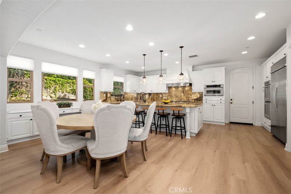 Welcome to 25 Via Nerisa in sought-after Talega of San Clemente on an oversized, private lot. This freshly remodeled residence offers 4 spacious ensuite bedrooms plus an office, loft, and custom built-in study area, providing flexible living spaces for work, relaxation, and entertaining. From the moment you enter, you’ll appreciate the new vinyl wood plank flooring throughout, fresh interior paint, custom blinds, updated ceiling fans, and new cabinet hardware that create a clean, contemporary feel. The private downstairs office is thoughtfully designed with custom built-in shelving, cabinetry, and desk space, separated by a stylish barn door. A large downstairs bonus room offers versatility as a game room, media space, or formal dining room. The gourmet kitchen opens seamlessly to the great room and dining area. Designed for both everyday living and entertaining, it features: Granite countertops, Stainless steel appliances, 8-burner gas range, Double ovens, Oversized built-in refrigerator, Stainless steel sink, Custom lighting, Expansive walk-in pantry. Upstairs, a quiet loft and dual built-in study desks with drawers and cabinetry provide the perfect homework or creative space. The primary suite spans the entire back of the home, offering exceptional privacy along with a private balcony, dual walk-in closets, and a cozy fireplace. The spa-inspired primary bath includes custom mirrors, updated fixtures, a large walk-in shower, and a soaking tub. Each secondary bedroom features a beautifully remodeled ensuite bath with quartz countertops, marble flooring, new fixtures, mirrors, sinks, and hardware. Even the laundry room has been elevated with new quartz counters, sink, fixtures, and marble floors. Step outside and experience true indoor-outdoor California living. The expansive wrap-around yard includes: Gated courtyard entry with bubbling fountain, Outdoor fireplace, Firepit with seating area, Turf play spaces, New Built-in Blaze BBQ grill, Private putting green. Additional upgrades include Google Smart Home and Security systems, Moen Flo water shutoff for leak detection and conservation, earthquake gas shutoff valve, owned solar panels with new solar battery, and new Saferacks garage storage system in the oversize 3 car garage with extra storage, built-in cabinets, and a work bench. All of this is located within the master-planned community of Talega, where residents enjoy beautiful parks, a Swim Club, scenic trails, and award-winning schools.