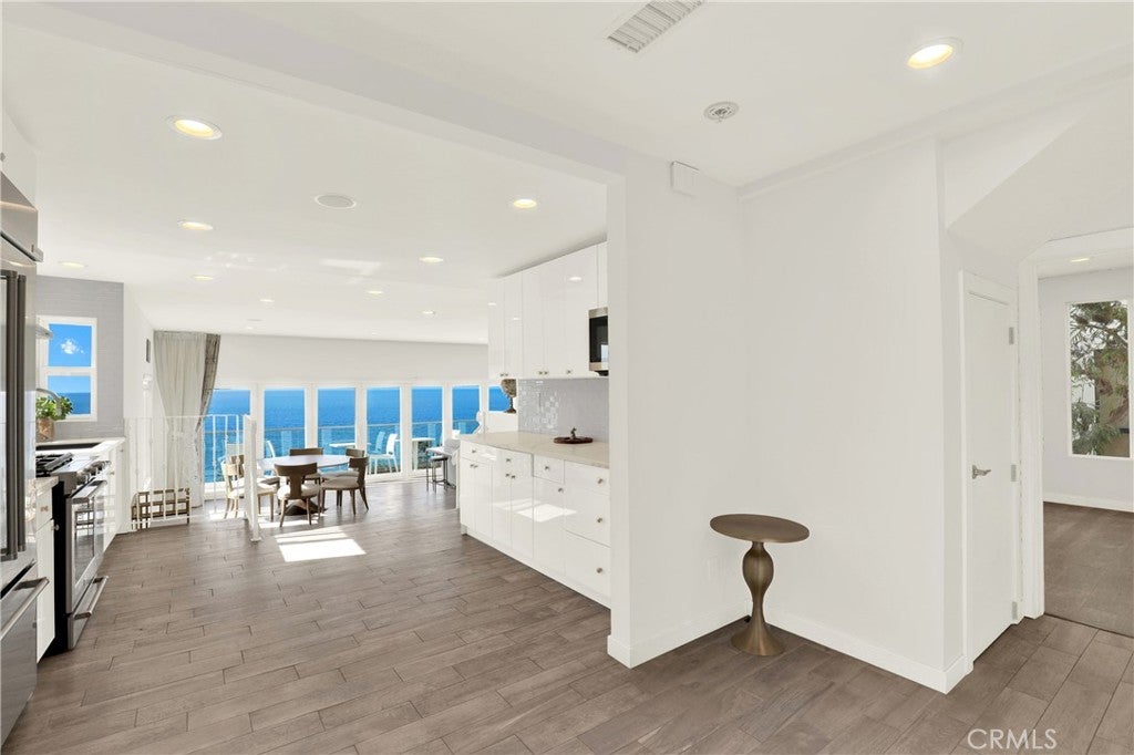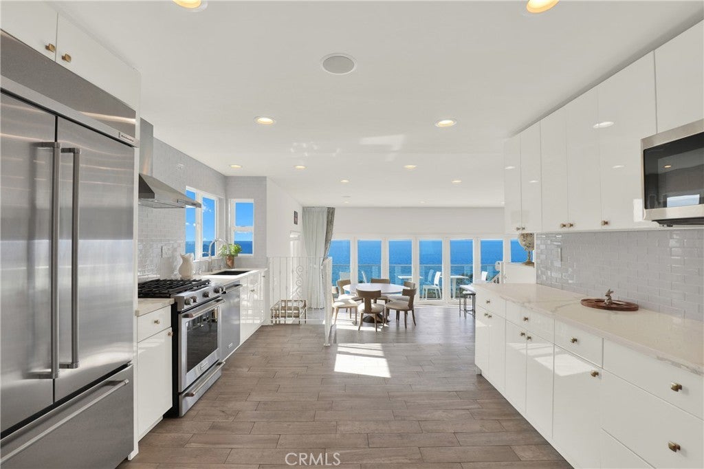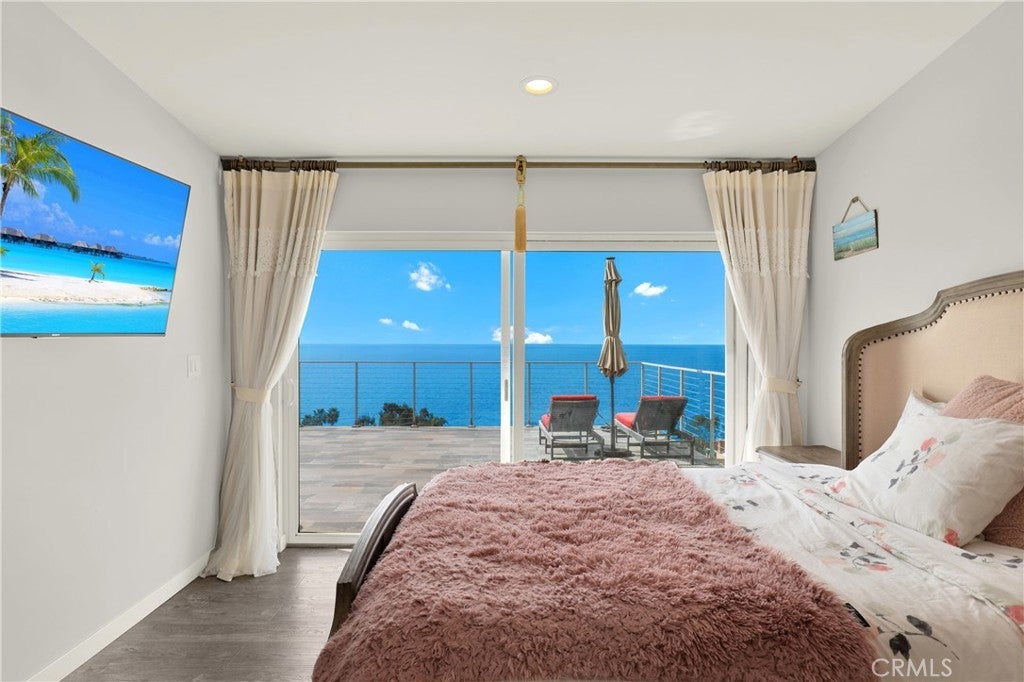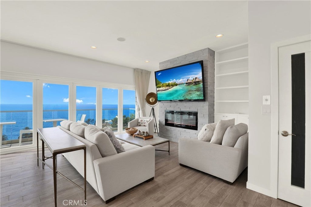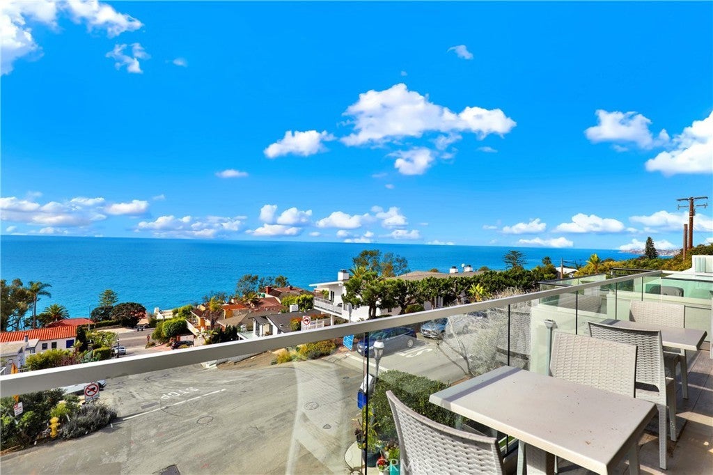 Upper-level coastal retreat with panoramic ocean views in the heart of Woods Cove. This beautifully maintained third-floor living space spans two interior levels and offers approximately 1,520 square feet of light-filled living with floor-to-ceiling windows and a spacious panoramic ocean view deck. The residence includes three bedrooms and three bathrooms, featuring two spacious suites with attached baths plus an office with closet that may function as a third bedroom. Furnished throughout with the exception of the primary bedroom and office. Private elevator access from the garage to the third floor as well as a separate stair entry. Located just moments from the beaches, restaurants, galleries, and village amenities. Lease is for upper/third floor living only.