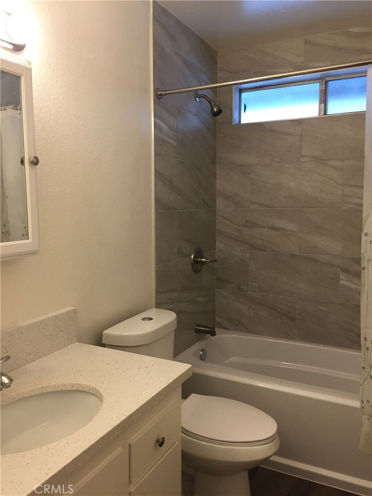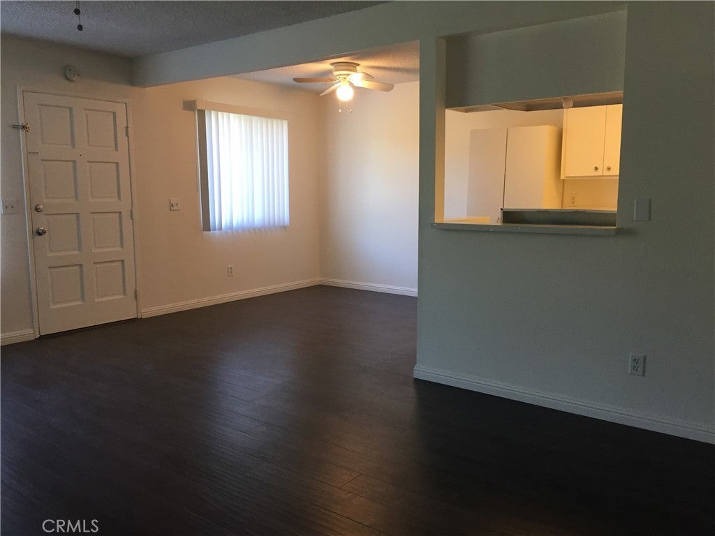 This is a spacious 1 bedroom 1 bathroom upper unit apartment in Huntington Harbor area. Kitchen has been remodeled with quartz counter tops. Small dining area off of kitchen. Large living room with open floor plan. Bedroom is extremely spacious. Extra large closet space. No closet doors. Large remodeled bathroom. Vanity has quartz countertops. All new tile surrounding in shower/tub. Extra linen/storage and additional large closet area off of bathroom area. Wood planked flooring throughout the entire apartment. Large open balcony area. There is a single detached garage. Community laundry on site. Close to the beach, shops, restaurants, and freeway.