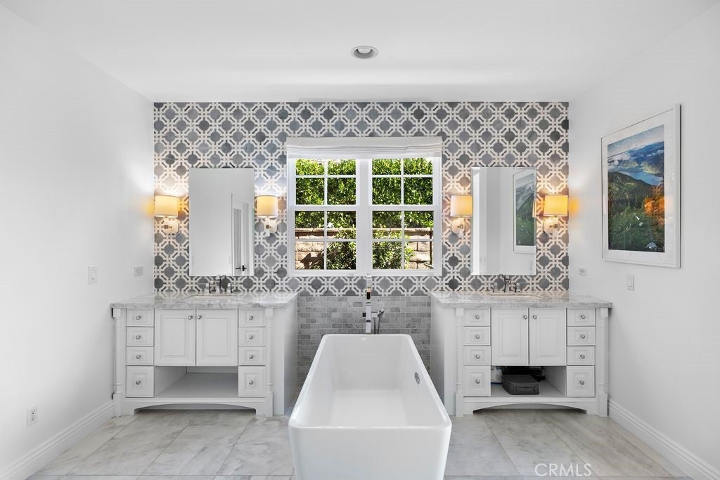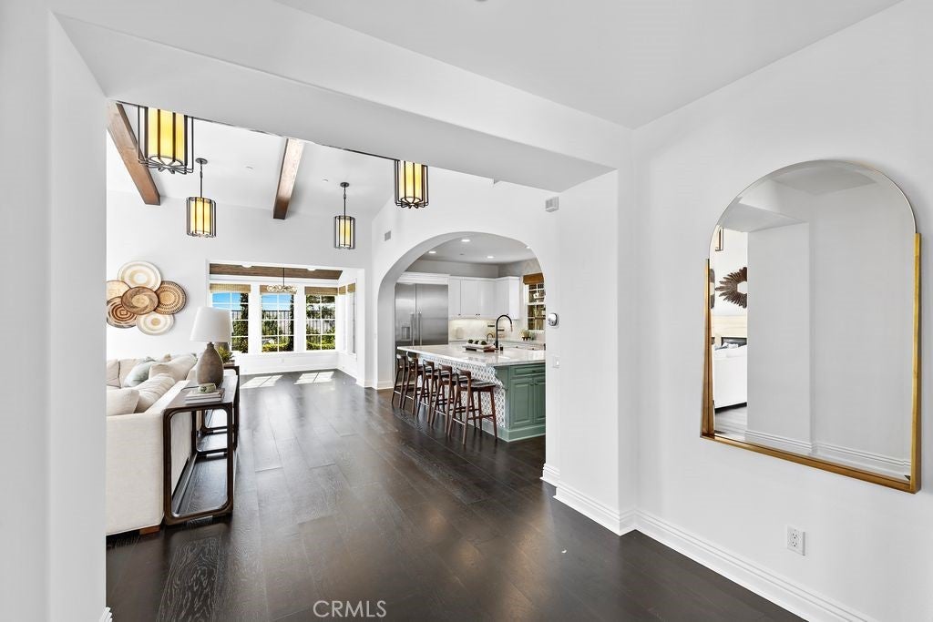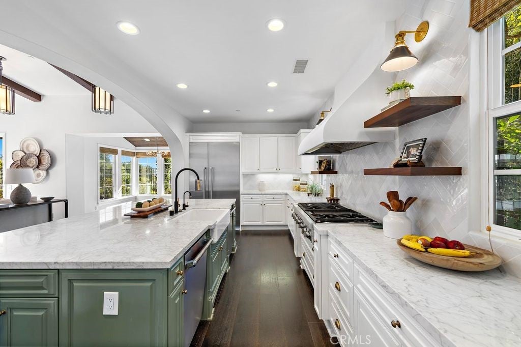 Welcome to 5 Stockmen Rd, a rare single-level luxury estate in the exclusive guard-gated community of Covenant Hills! Tucked away on a private cul-de-sac shared by only five homes, this former model captures sweeping hill and sunset views while offering exceptional privacy. Extensively remodeled and thoughtfully upgraded, the 4,099 sq. ft. residence features 5 bedrooms (or 4 + office) and 5 baths with no interior steps. Soaring ceilings and wide-plank hardwood floors lead to a light-filled great room and a stunning chef’s kitchen appointed with Thermador refrigerator & freezer, dual ovens, dual dishwashers, 6-burner range with griddle, wine fridge, and an oversized island designed for entertaining. A dramatic center courtyard creates seamless indoor-outdoor living. The luxurious primary suite offers a spa-inspired remodeled bath, soaking tub, walk-in shower, custom closet, and automated shades. Each secondary bedroom includes an en suite bath, with a sound-insulated room ideal for nursery, office, or studio. An attached private guest casita provides flexible living for extended stays. The resort-style backyard showcases panoramic views, a Pebble Sheen pool & spa with oversized heater, outdoor shower, Ipe deck, turf, and new putting green. Additional highlights include owned 7.62kW solar, 5-zone HVAC, Culligan soft water system, whole-house filtration, expanded laundry with built-ins and additional refrigeration, custom garage cabinetry, EV charger, and smart home features. Located moments from the exclusive Covenant Hills clubhouse with swimming, tennis, and resort-style amenities, the home also enjoys access to nearby parks and miles of scenic trails. Ladera Ranch’s vibrant shopping, highly rated schools, recreational facilities, beaches, and major freeways are all just minutes away.