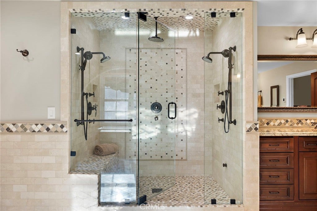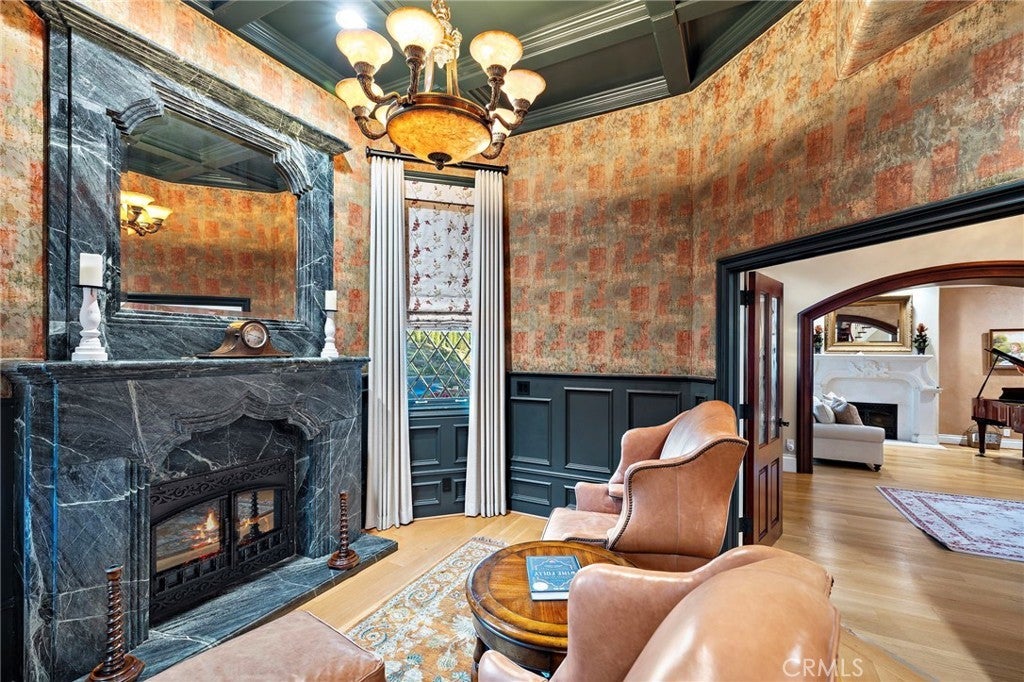 Welcome to a Premier Equestrian Estate spanning nearly Two Acres and showcasing nearly $2 Million in Upgrades in the gated community of Coto de Caza. A stunning brick exterior and private gated driveway leads to the English-inspired residence, where soaring ceilings and a grand crystal chandelier set the tone. The formal living room with a signature Marble Fireplace flows into a grand Great Room featuring Vaulted Wood Ceilings for grand-scale entertaining. At the heart of the home: a true Chef’s kitchen, a Culinary Masterpiece equipped with Three Sub-Zero refrigerators, professional Wolf Appliances, including a Built-In Grille, High-End Pot Filler, and multiple Warming Drawers. The oversized center Island showcases Hand-Carved Wood Details. Enter into the dedicated food preparation area and walk-in pantry. The main level is complete with a private Library, a Bedroom with an Ensuite Bath, and a Laundry Room with Sub-Zero refrigerator. The upper level is a sanctuary of wellness and leisure, highlighted by a Primary Suite with a private balcony that has a spiral staircase with direct access to the grounds, plus breathtaking mountain views from the retreat. The Primary Bathroom serves as a Personal Spa, spanning the long hallway, complete with a Soaking Tub, Glass Enclosed Shower Sauna, Massage Room, and a Boutique-Style Walk-In Closet. On the opposite wing, the estate transforms into an entertainer’s paradise with a Movie Theater, a private Gym with its own balcony and exterior staircase entrance, and a dedicated craft room. The outdoor grounds are equally impressive, featuring Horse Stables and a Corral alongside a pool oasis, spa, and a gazebo. The backyard living space is finished with a stainless steel Wolf BBQ and a brick fireplace, offering a serene backdrop for outdoor dining. Complete with a Four-Car Garage, this one-of-a-kind showpiece property represents the ultimate in California luxury living.