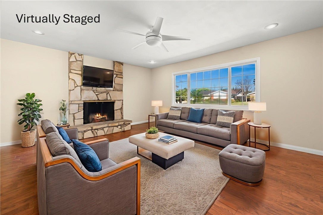 Welcome to your ideal home in the heart of Anaheim, California! Step inside to discover a bright and open floor plan featuring a spacious living room filled with natural light, complemented by a stone fireplace. The kitchen boasts ample cabinetry and ease of access to the dining area perfect for everyday living and entertaining alike. The generous primary suite provides a peaceful retreat with its own private bath and ample closet space. Two additional bedrooms are well-sized and versatile—perfect for family, guests, or a home office. Outside, enjoy a private backyard oasis with plenty of room for gatherings, gardening, or simply relaxing under the California sunshine. The property also features a two-car garage and convenient laundry space. Located in a desirable neighborhood near shopping, dining, parks, major freeways, and just minutes from world-famous attractions like Disneyland Resort.