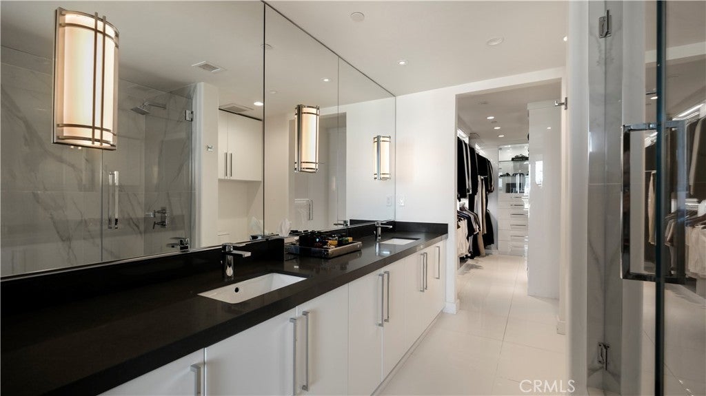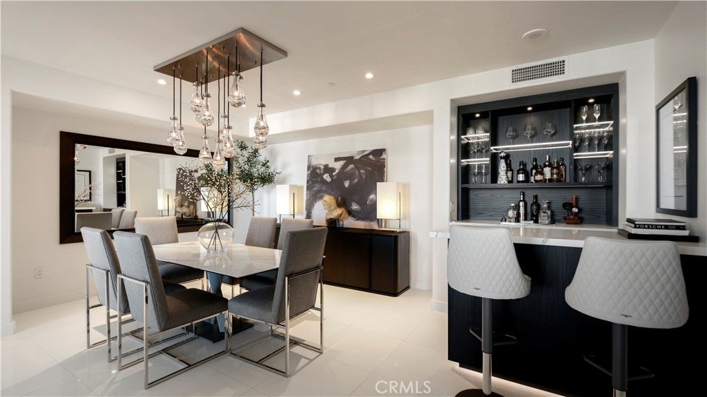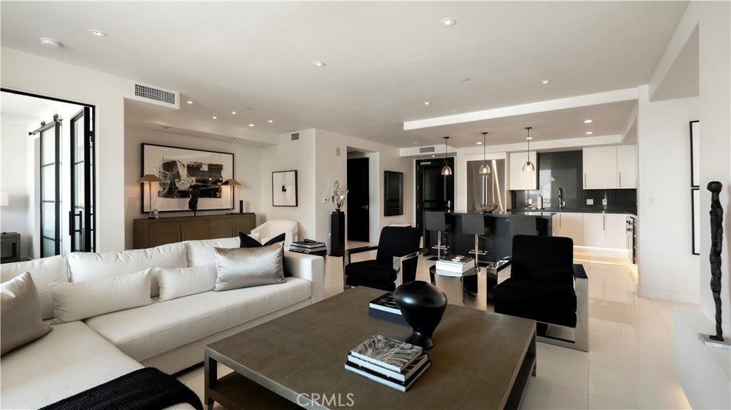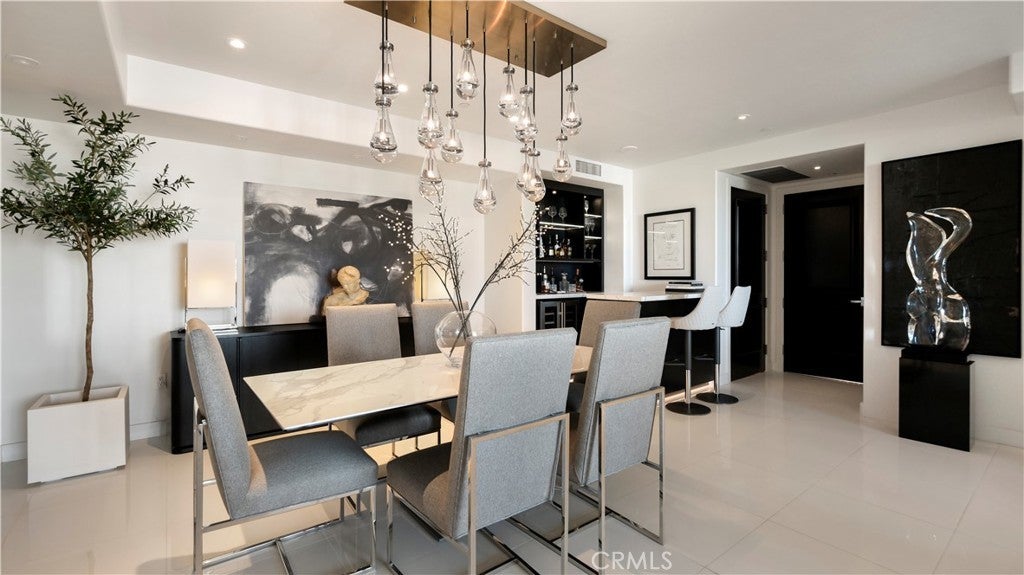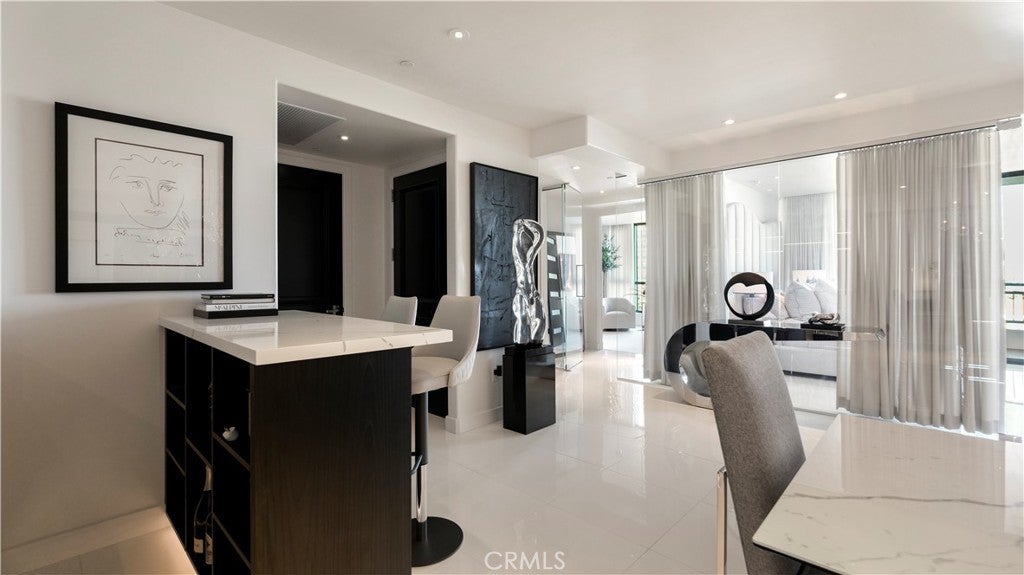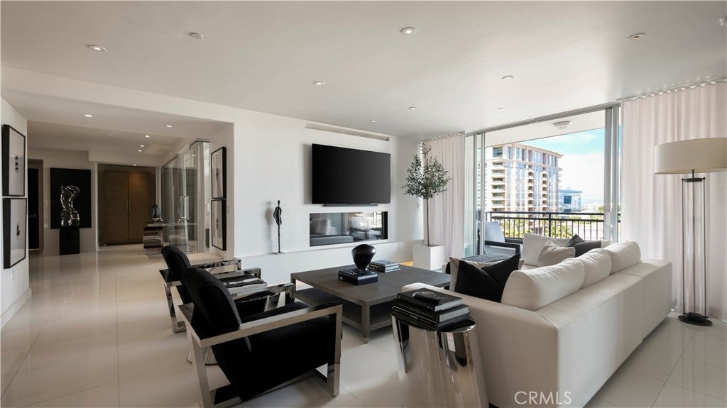 Welcome to 8085 Scholarship, a truly rare offering at The Plaza in Irvine. This extensively reimagined contemporary residence is the result of a tasteful combination of two units into one expansive, single level showpiece, creating a scale and layout seldom available in luxury high rise living. Fully gut renovated with a refined, contemporary design aesthetic, the home was rebuilt with meticulous detail. Brand new appliances, cabinetry, sinks, toilets, upgraded plumbing fixtures, and curated finishes throughout deliver a cohesive, designer environment that is completely turnkey. Clean architectural lines, beautiful white stone flooring, and walls of glass enhance the open concept layout, filling the residence with natural light while offering seamless flow for both elevated entertaining and comfortable daily living. The thoughtfully designed floor plan features two spacious primary suites, each serving as a private retreat with generous walk in closets and spa inspired baths appointed with premium materials and contemporary detailing. In addition, a dedicated office or primary retreat provides flexibility for remote work, a lounge, or fitness space. Two powder rooms add convenience for guests. A formal dining room introduces a sense of occasion, while a sophisticated bar area creates the perfect setting for hosting. The chef’s kitchen anchors the main living space with top tier appliances, sleek stone countertops, and a greatly sized island that serves as both focal point and gathering hub. Practical luxuries further distinguish this offering, including four side by side parking spaces, an exceptional rarity within The Plaza, along with two private storage units for added convenience. Residents enjoy resort caliber amenities including 24/7 concierge and security, a state of the art fitness center, resident lounge, conference facilities, billiards room, outdoor terraces, and a pool, spa, and steam room, all moments from premier dining, shopping, world class beaches, and John Wayne Airport. 8085 Scholarship presents a one of a kind opportunity to own one of the most distinctive and fully transformed residences within The Plaza.