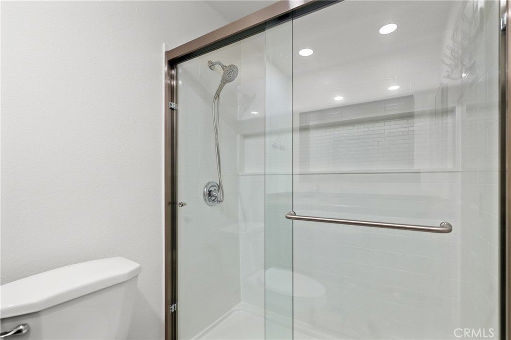 Welcome to this immaculate upper-level condo in the desirable Woodside Village neighborhood of Santa Ana. Thoughtfully updated and move-in ready, this light-filled home features wide plank luxury vinyl flooring throughout, fresh interior paint, and recessed lighting that enhances the modern, airy feel. The inviting living room opens to a private balcony—perfect for morning coffee or relaxing evenings. The well-designed floor plan offers comfortable living with a seamless flow between the living, dining, and kitchen areas, ideal for both everyday living and entertaining. Bathroom with upgraded, remodeled shower. Located within a gated community, Woodside Village offers resort-style amenities including sparkling pools, a clubhouse, and beautifully maintained lush green spaces, creating a peaceful and welcoming environment. Conveniently situated near shopping, dining, and major freeways, this home combines comfort, style, and accessibility in one exceptional opportunity.