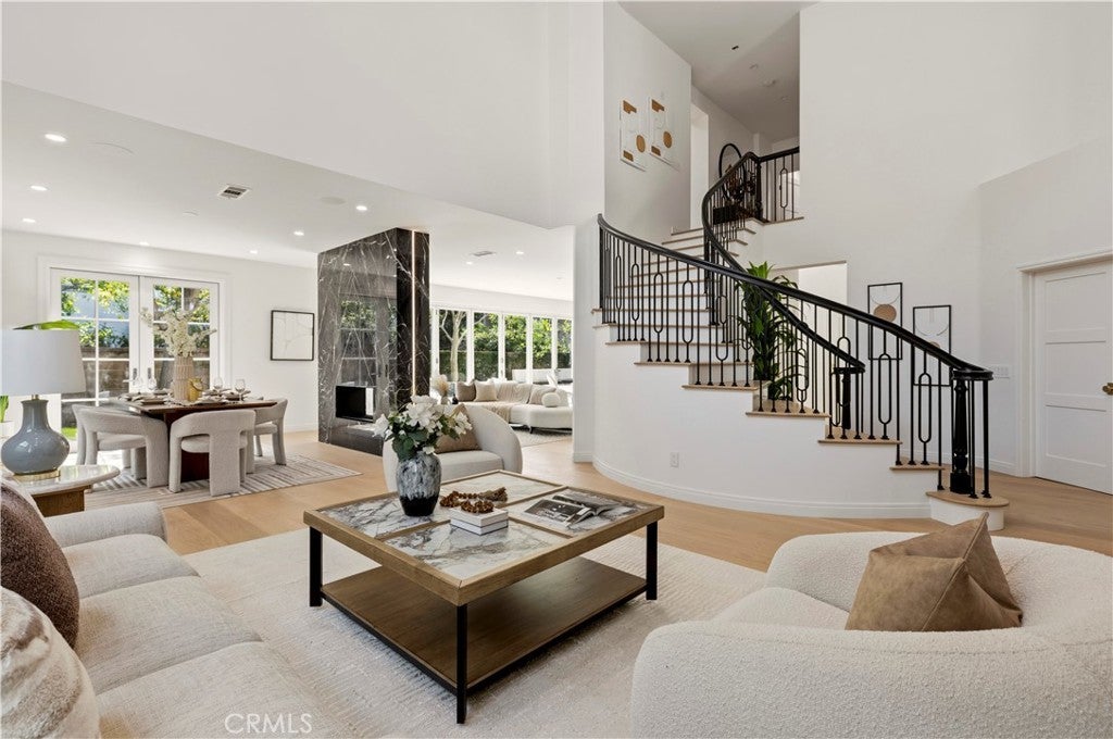 Newly Renovated! Nestled on a premium cul-de-sac in the highly sought-after 24-hour guard-gated Trailwood community of Northwood Pointe, this sharp redesigned home perfectly blends style and function. Step through the dramatic entry with soaring ceilings and an elegant spiral staircase, where tasteful designer accents greet you throughout. The open-concept floor plan flows seamlessly from the fireplace-equipped family room with a nearby bar to the backyard, where triple French doors open to a serene space ideal for summer barbecues, morning coffee, or evening cocktails. At the heart of the home, the gourmet kitchen features top-of-the-line custom countertops, cabinetry, stainless steel appliances, and a large center island—a stunning centerpiece for cooking, dining, and entertaining. Two first-floor suites offer flexibility—one ideal for a home office, gym, or playroom, and the other perfect for in-laws or guests. Upstairs, the master suite boasts a luxurious ensuite, walk-in closet, and private patio, while two additional bedrooms with ensuites and a convenient laundry room provide ample space for family. Major upgrades include new plumbing, electrical, roofing, drywall, insulation, HVAC systems, water heaters, appliances, landscaping, and closets-too many to list!! Residents enjoy resort-style amenities, including private parks, playgrounds, pools and spa, tennis courts, BBQ areas, scenic hiking trails, and tree-lined sidewalks. The community hosts annual events such as the Harvest Festival and Snow Day, fostering a close-knit neighborhood feel. Located within one mile of award-winning schools—Canyon View, Sierra Vista, and Northwood High—this home is walking distance to schools, parks and the Hicks Canyon Hiking & Riding Trail, and just minutes to Orchard Hills, NorthPark, and Northwood Shopping Centers. No Mello-Roos and low HOA—this rare gem won’t last long! A must-see!