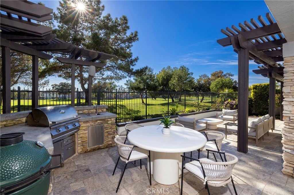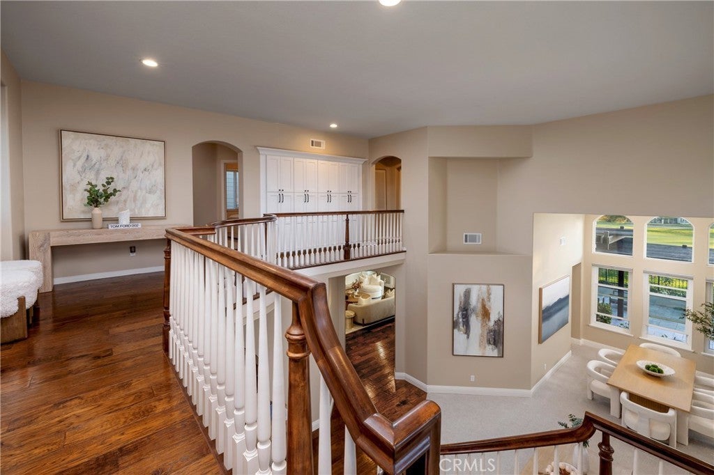 Set along a premier stretch of the Huntington Club Golf Course within the guard-gated enclave of The Peninsula, this exceptional coastal residence captures sweeping fairway views, vibrant sunsets, and an ideal orientation that fills the home with natural light throughout the day. Positioned on a quiet interior street with no residences directly opposite, the property offers enhanced privacy and a heightened sense of openness. All just moments from neighborhood parks, scenic wetlands trails, the shoreline, and award-winning SeaCliff Elementary School. Spanning over 3,000 square feet, the thoughtfully designed floor plan includes four bedrooms, with a desirable main-level suite, and an upstairs loft ideal for a home office or secondary lounge. The family room, anchored by a fireplace and custom media cabinetry, opens seamlessly to the kitchen and outdoor living spaces. The recently refreshed kitchen features quartzite countertops, premium stainless steel appliances, a generous breakfast bar, and a sunlit breakfast nook overlooking the golf course. Upstairs, the expansive primary suite enjoys sweeping fairway views from a private balcony and a beautifully remodeled bath with dual vanities, walk-in shower, Japanese soaking tub, and a spacious walk-in closet. Secondary bedrooms are generously sized and share an upgraded bath. The rear grounds are designed for relaxed coastal living and entertaining, complete with a built-in BBQ center, professional hardscape and landscape design, custom lighting, and low-maintenance finishes—all set against tranquil golf course vistas.