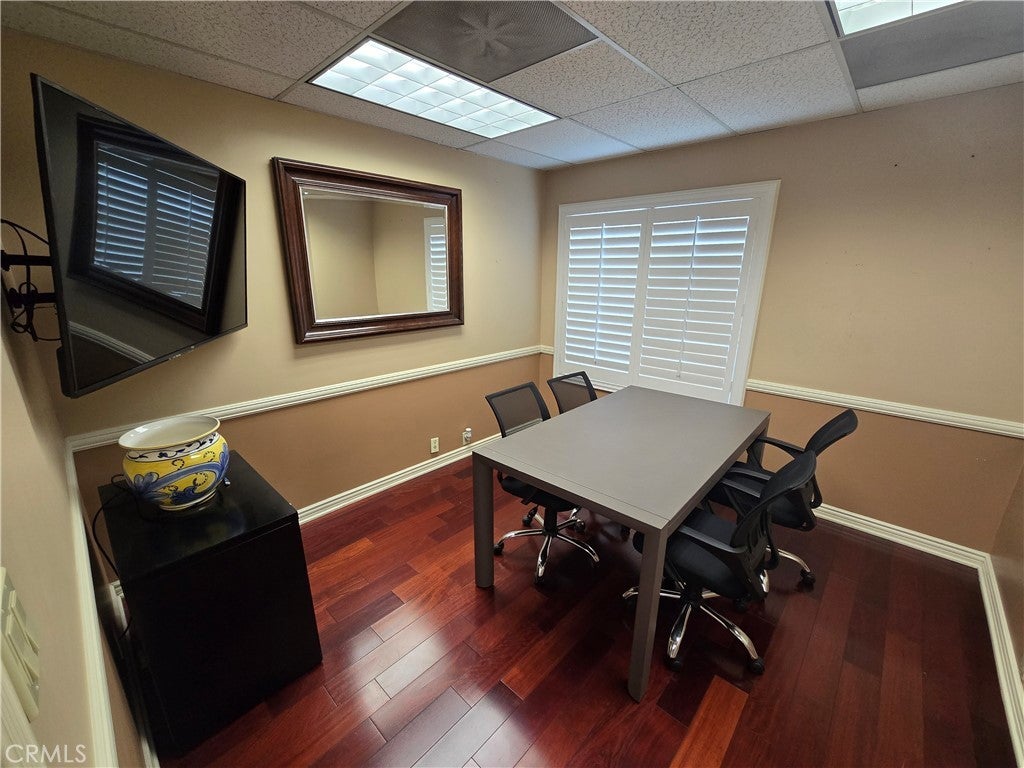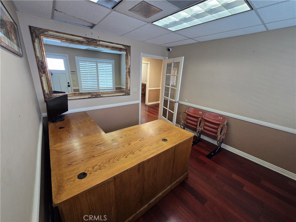 RARE OPPORTUNITY: 713 SF Office plus DEEDED 317 SF Private Garage (Approx 1030 Total Usable SF). Professional headquarters available in prestigious Orleans Square. This professional office condo is well-suited for professional services such as a CPA, Law Firm, or Medical professional. HIGHLIGHTS: Includes a massive private garage with eleven-foot ceilings—an extremely rare feature in Orange County office condos. This versatile space offers easy rear-building access and is ideal for secure parking, business storage, or private workspace. TURN-KEY INTERIOR: Designed with four private window offices, reception area, private kitchenette, and a private bathroom equipped with a shower. Recent upgrades include brand-new windows and custom shutters, a new private HVAC system, and access to a building with a recent roof restoration. LOCATION: Situated in Santa Ana near John Wayne Airport, Metrolink, and major local freeways. HOA BENEFITS: Monthly dues cover water, gas, common area electricity, trash, on-site security patrol, professional janitorial for common areas, landscaping, master insurance policy, and capital reserves. Note: Square footage per tax records is 713 SF; deeded private garage provides extra usable space.