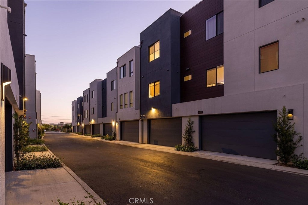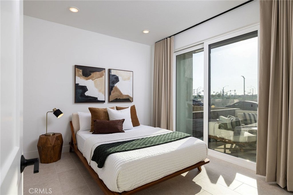 This newly built luxury townhome in The Landing at Tustin Legacy offers the perfect blend of modern sophistication and everyday convenience in one of Orange County's most desirable new communities. Completed in 2023, this light-filled contemporary home welcomes you with an open-concept layout featuring soaring 12-foot ceilings, imported Italian stone floors, and sleek matte black designer finishes that create an atmosphere of understated elegance. Enter the 3-story plan through the thoughtfully designed lower level that includes an ensuite bedroom (or optional office or fitness room) and direct access to the two-car garage. This space also opens directly to a sunny patio, bringing the outdoors in and making for a welcoming curb appeal. Large windows fill the second-level great room with natural light, creating an ideal environment for both entertaining guests and everyday relaxation. The living room flows seamlessly to a private balcony, extending your living area outdoors. The luxe chef's kitchen is finished with full-height maple cabinetry, a complete stainless steel JennAir/KitchenAid appliance suite, and a striking quartz island ready for casual bites and conversation. Upstairs, two generously sized bedrooms each provide ample accommodation with large windows and spacious closets. The primary suite serves as a true retreat, with two walk-in closets featuring professional organizers and a spa-like bathroom with double sink vanity and oversized shower. Modern convenience is built-in, with smart features including paid solar panels, an EV charger, Google Home smart system, instant hot water system, and SpringWell whole-home water filtration system. This property’s excellent location within The Landing community provides views of Disneyland fireworks displays and John Wayne Airport, while being within the boundaries of top-rated Tustin Unified schools. All within walking distance of The District shopping center and entertainment, local parks, and a diverse array of restaurants, creating a lifestyle where luxury living meets unmatched convenience in the exciting heart of Tustin Legacy.