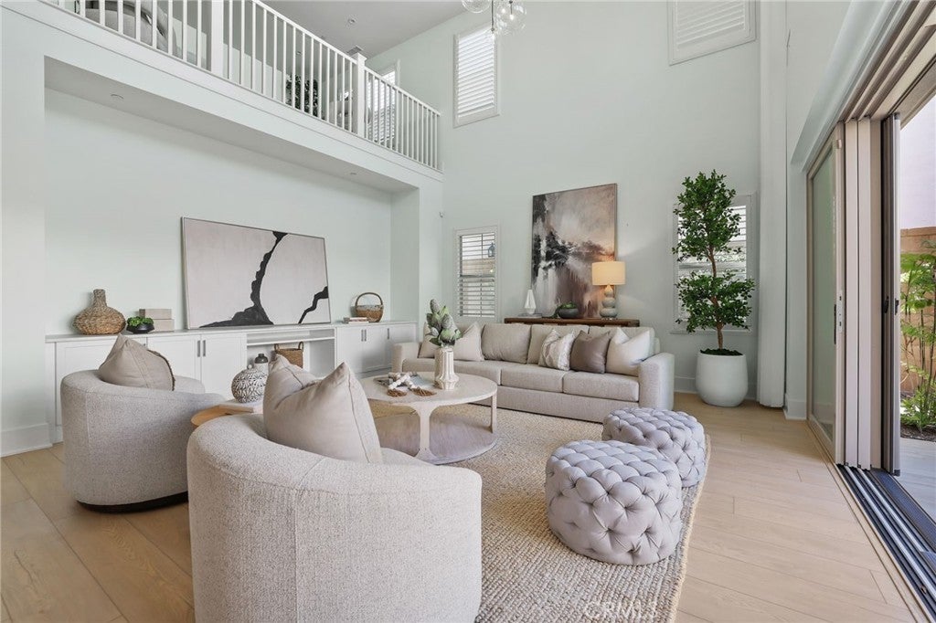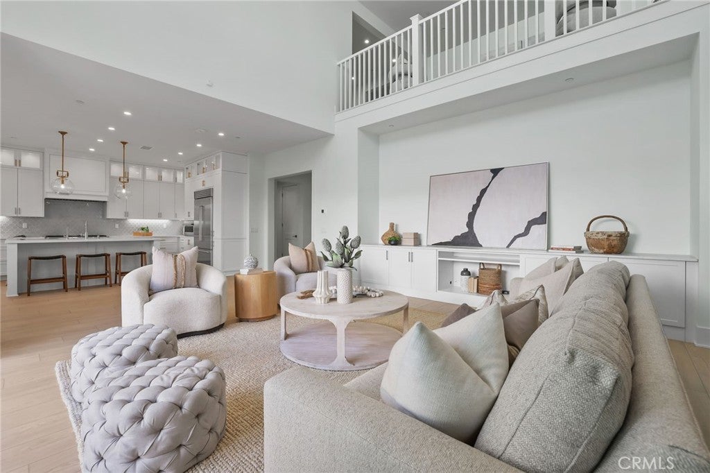 Your luxury residence is located in the prestigious Portola Springs community. With over $300,000 in upgrades, this move-in ready luxury home offers a resort-style backyard and a premium private, quiet location. This beautifully upgraded Cielo Plan 2 residence built by Shea Homes features a bright and airy open-concept floor plan with dramatic 20-foot ceilings. The spacious Great Room flows seamlessly into the dining area and gourmet kitchen, creating the perfect space for everyday living and entertaining. The first floor also includes a guest bedroom with a private bath and an additional powder room. The chef-inspired gourmet kitchen is equipped with Wolf and Sub-Zero stainless steel appliances, quartz countertops, designer backsplash, upgraded cabinetry, a walk-in pantry, and a large center island with seating. Upstairs, the grand primary suite features a luxurious bathroom and His and Hers walk-in closets. Two additional spacious en-suite bedrooms, a versatile loft, and a laundry room with sink and window complete the second level. The professionally landscaped backyard with fruit trees provides a peaceful setting for relaxation and entertaining. The two-car garage includes an EV charging outlet. Additional upgrades include 26 fully paid solar panels, motorized living room curtains, RH Light Fixtures, an automatic water softener system, and plantation shutters throughout. Residents of Portola Springs enjoy exceptional resort-style amenities including multiple Jr. Olympic pools, wading pools, parks with shade structures, playgrounds, BBQ and picnic areas, basketball, volleyball, tennis, and pickleball courts, scenic walking trails, and more. Portola Springs Community Park features a community center, lighted softball and soccer fields, and additional recreational facilities. Ideally located in Irvine, close to shopping, dining, major freeways, recreation, and top-rated schools.