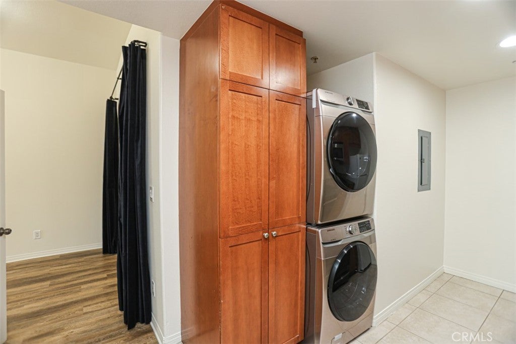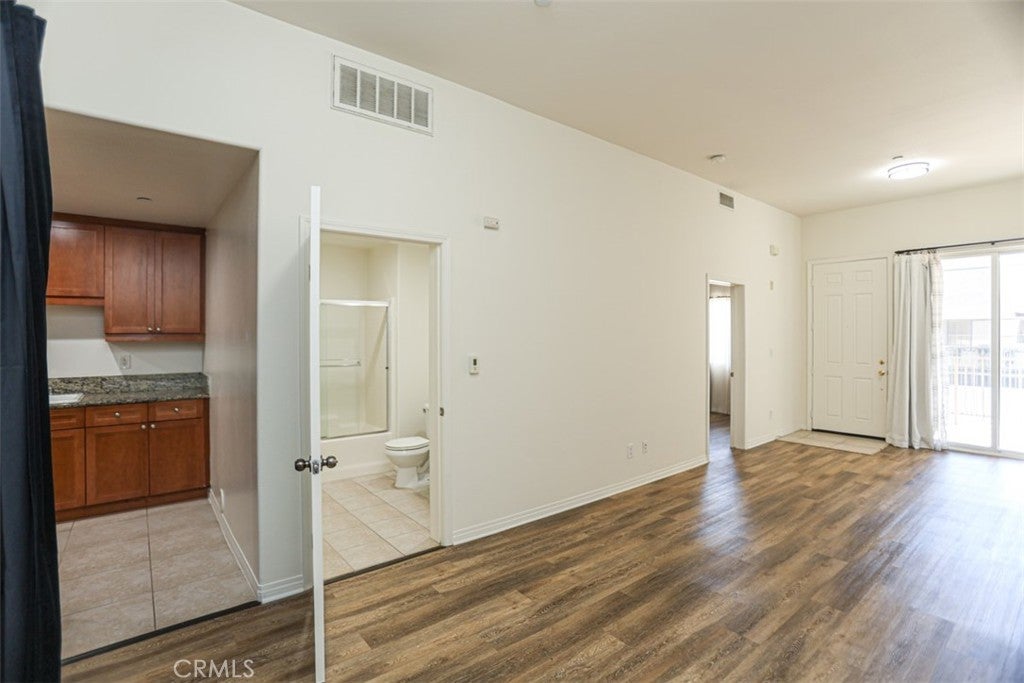 This charming ground-floor condo, built in 2007, is a hidden gem located in the desirable city of Fountain Valley. Situated within the highly sought after Los Caballeros Sports Village, this move-in-ready unit offers 1 bedroom plus a den, 2 bathrooms, and over 800 sqft of living space. It provides the functionality of a 2-bedroom, 2-bathroom layout with an inviting open concept, highlighted by 10' ceilings, granite countertops and sleek vinyl flooring and tile throughout. The condo is equipped with energy-efficient central A/C, in-unit laundry, Washer/Dryer combo, adding convenience to daily living. The unit is nestled within a gated community, offering covered/assigned parking, with HOA dues covering trash, water, and earthquake insurance. The location is ideal, being close to shopping, dining, Mile Square Park, freeway access, and just steps away from the Los Caballeros Sports Club, which features one of Southern California's largest pickleball facilities. This condo offers the perfect blend of comfort, style, and convenience in a highly sought-after area.