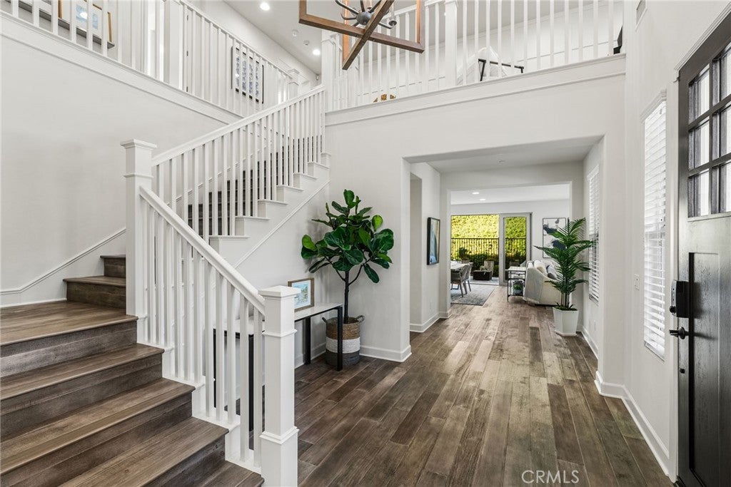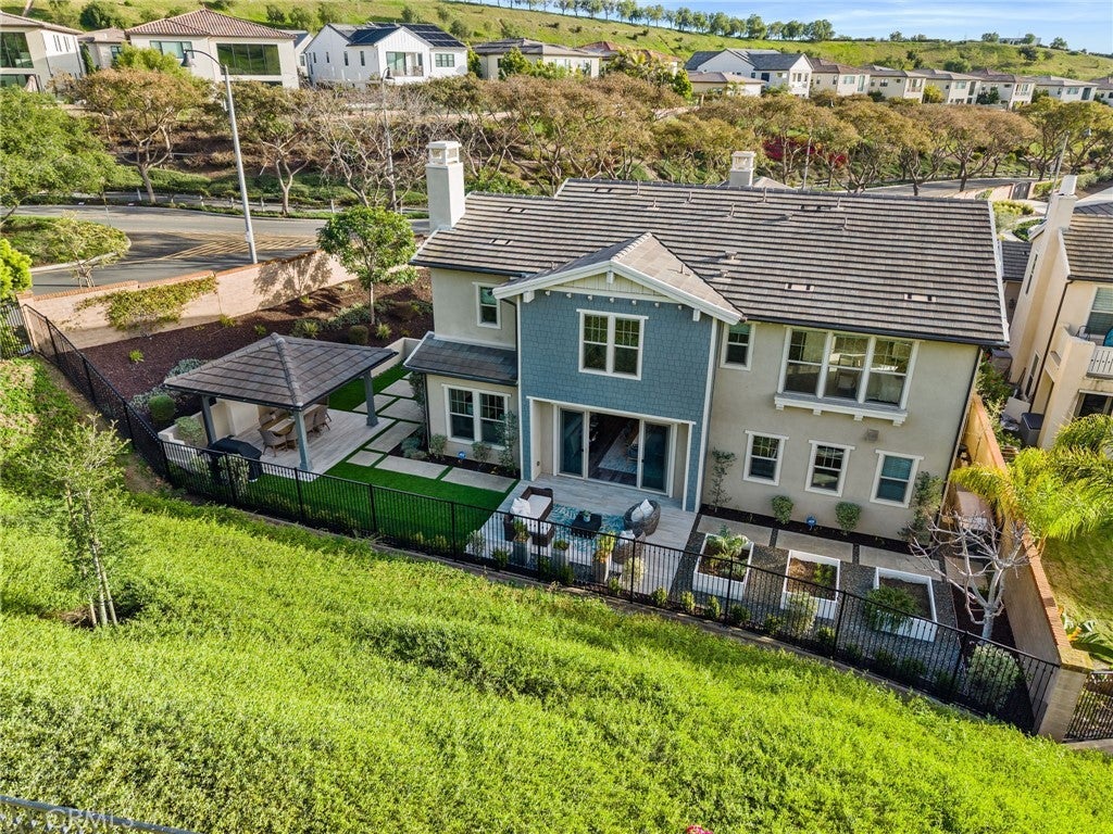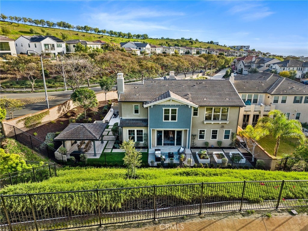 Presenting an exceptionally private homesite, this ocean-close executive-class residence is ideal for active families seeking a coastal lifestyle in the exclusive gated neighborhood of Blue Harbor at Pacifica San Juan. A top-of-the-cul-de-sac location with only one direct neighbor is the finest in the enclave and accommodates multi-driver households with an extended driveway. Just three miles from Dana Point Harbor, the newer Craftsman-style design was crafted in 2017 and welcomes guests with a front yard patio, and an entry courtyard with romantic stone portico with open-air fireplace, built-in seating and upgraded tile decking. Grounds extend nearly 17,649 square feet and include a backyard with entertainment pavilion and private patio. Solar power complements the two-story residence, which reveals five ensuite bedrooms and five- and one-half baths in approximately 4,053 square feet. One bedroom is located on the main floor, and a casita with separate entrance makes a great office or guest suite. First impressions are stunning, with a double-height ceiling and dramatic staircase embellishing the foyer. To the left, a formal living room with fireplace opens to the courtyard. On the right, free-flowing living spaces include a fireplace-warmed family room with paneled accent wall and surround sound, and an open dining room with backyard access. The kitchen showcases slate Shaker cabinetry with fashionable brass hardware, white Shaker cabinetry at a generous island, a full backsplash to the ceiling, walk-in pantry, and high-end stainless steel appliances including a built-in refrigerator. Upstairs, a loft offers desirable versatility, and the elegant primary suite reveals serene hillside views, a retreat, walk-in closet, and an opulent bath with individual vanities, a soaking tub and separate shower. An abundance of windows bathes the home in natural light, illuminating amenities that include plank flooring throughout, in-ceiling speakers and upgraded lighting. Built by luxury home builder Taylor Morrison, Blue Harbor is limited to just 46 residences. Nestled near a hilltop,the view-oriented community is served by top-tier public schools for all grade levels. Award-winning private schools include St. Margaret's Episcopal School, St. Edwards and JSerra Catholic High School. The private Club Pacifica rewards residents with a large heated lap pool and spa, cabanas, a fitness center, and an outdoor lounge area with fireplace and barbecues.