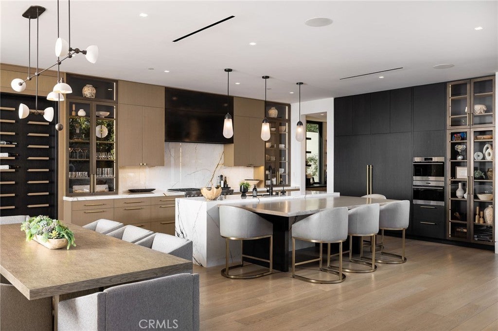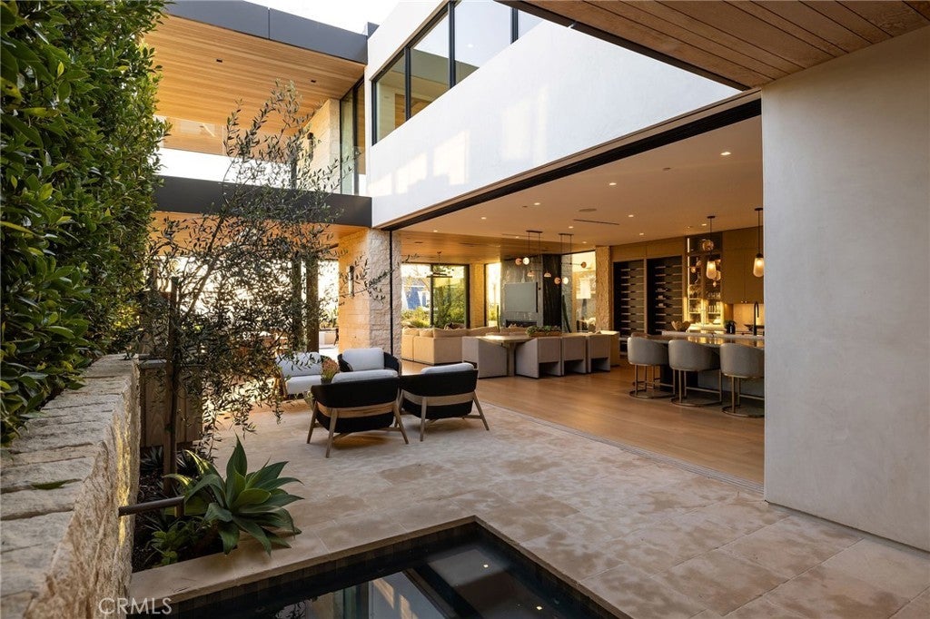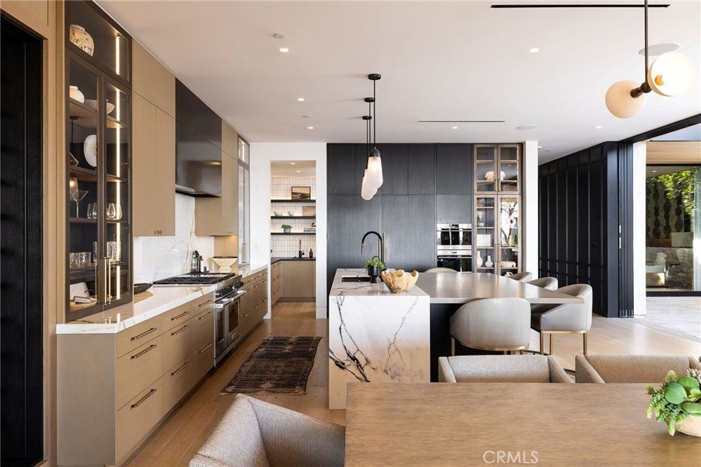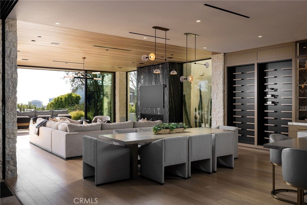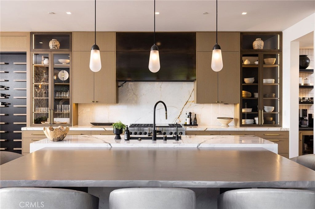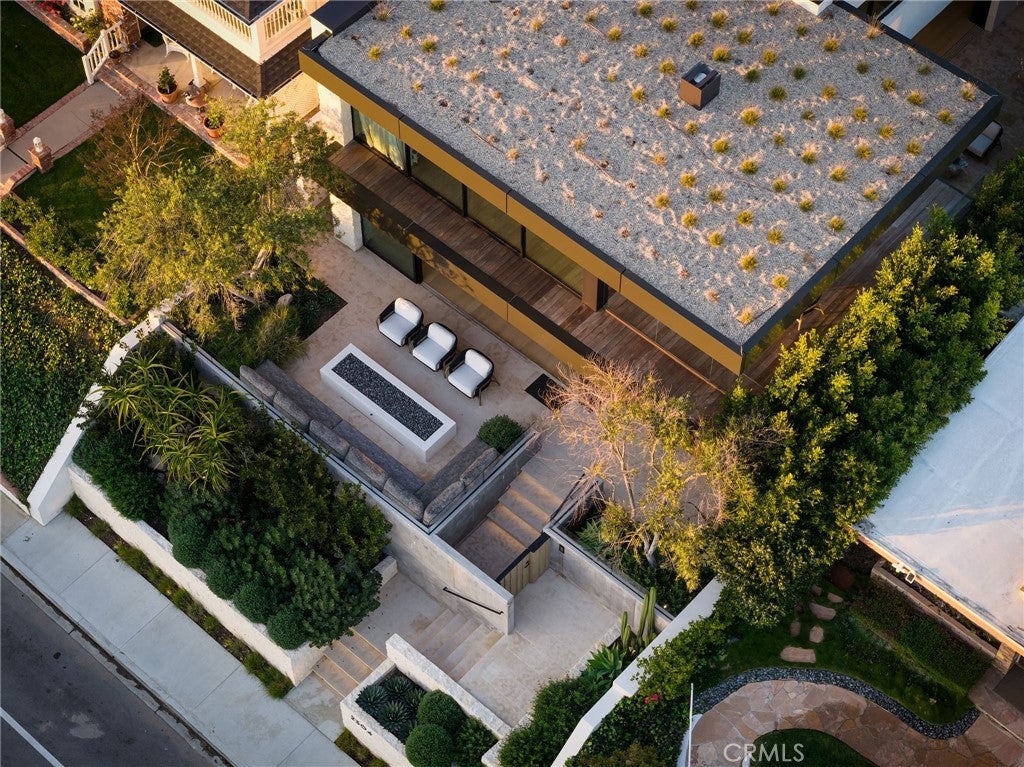 Perched along one of the most coveted stretches of Cliff Drive, this newer-construction architectural masterpiece captures unobstructed sit-down ocean and harbor views from nearly every primary living space. A rare collaboration between Brandon Architects, Erica Bryen Design, and Gonterman Construction, the approximately 5,200-square-foot residence offers 5 bedrooms and 6.5 baths, thoughtfully designed for elevated coastal living and effortless entertaining. Expansive walls of glass create seamless indoor/outdoor flow to two private patios, one with in ground jacuzzi, and a spectacular roof deck with bar, perfectly positioned for sunset entertaining- creating multiple resort-inspired outdoor living environments. Inside, warm-modern interiors are defined by wide-plank flooring, custom millwork, statement stone surfaces, designer lighting, and a striking temperature-controlled wine wall. The showpiece kitchen anchors the main level with bespoke cabinetry, oversized island, and curated finishes, opening to ocean-view living and dining spaces. A private office, beautifully appointed guest suites, and a serene primary retreat with spa-inspired bath complete the interior. An elevator services all levels, enhancing livability, while additional highlights include a three-car garage and whole-house soft water and filtration system. Meticulously executed and perfectly positioned, this is a rare opportunity to own one of the finest newer homes along Cliff Drive in Newport Beach.
