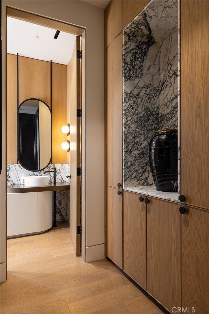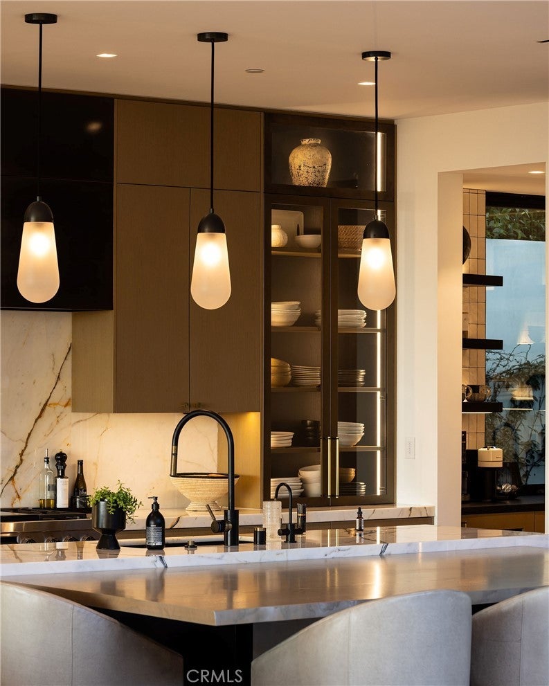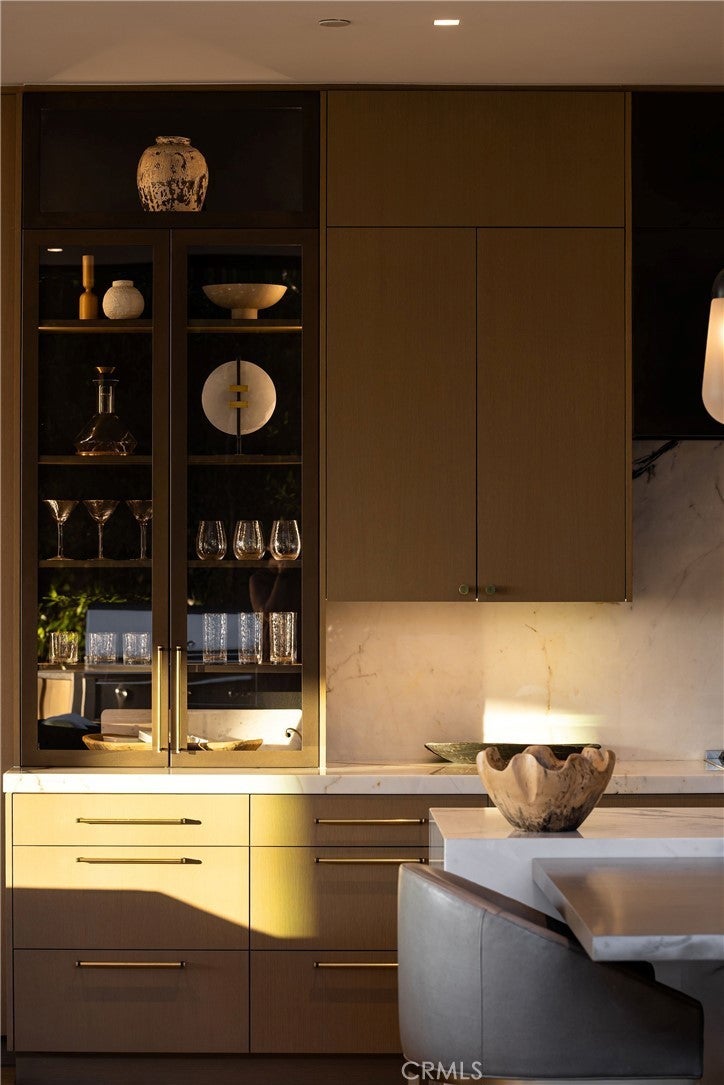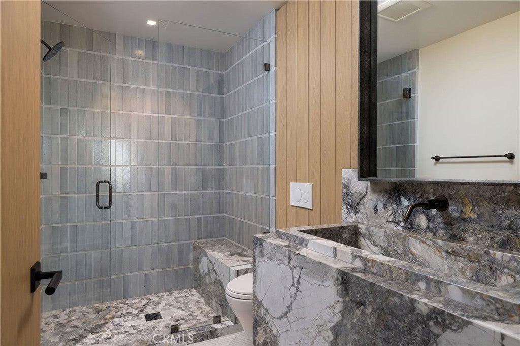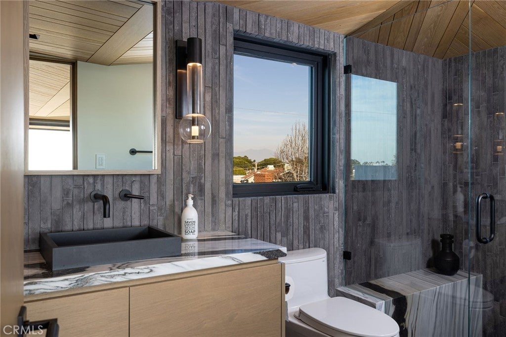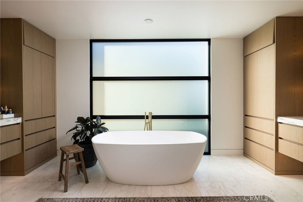 Perched along one of the most coveted stretches of Cliff Drive, this newer-construction architectural masterpiece captures unobstructed sit-down ocean and harbor views from nearly every primary living space. A rare collaboration between Brandon Architects, Erica Bryen Design, and Gonterman Construction, the approximately 5,200-square-foot residence offers 5 bedrooms and 6.5 baths, thoughtfully designed for elevated coastal living and effortless entertaining. Expansive walls of glass create seamless indoor/outdoor flow to two private patios, one with in ground jacuzzi, and a spectacular roof deck with bar, perfectly positioned for sunset entertaining- creating multiple resort-inspired outdoor living environments. Inside, warm-modern interiors are defined by wide-plank flooring, custom millwork, statement stone surfaces, designer lighting, and a striking temperature-controlled wine wall. The showpiece kitchen anchors the main level with bespoke cabinetry, oversized island, and curated finishes, opening to ocean-view living and dining spaces. A private office, beautifully appointed guest suites, and a serene primary retreat with spa-inspired bath complete the interior. An elevator services all levels, enhancing livability, while additional highlights include a three-car garage and whole-house soft water and filtration system. Meticulously executed and perfectly positioned, this is a rare opportunity to own one of the finest newer homes along Cliff Drive in Newport Beach.