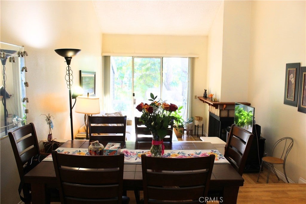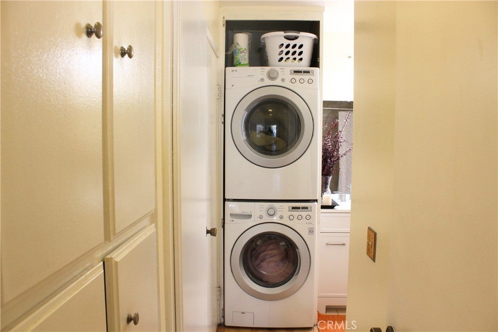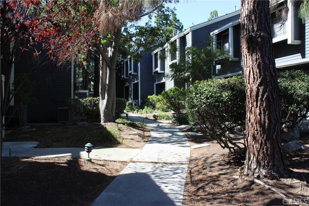 Welcome to this beautifully maintained 2-bedroom, 1-bath second-floor condo featuring soaring cathedral ceilings that create a bright, open atmosphere throughout. The inviting living room and primary bedroom both offer direct access to a private balcony, perfect for relaxing while overlooking the peaceful tree-lined grounds and sparkling pool area. The kitchen is thoughtfully updated with refurbished cabinetry, sleek new quartz countertops, a cozy breakfast counter, and ample storage space. Appliances include a refrigerator, stove, new dishwasher, and convenient in-unit laundry. The second bedroom enjoys abundant natural light and is ideally positioned near the bathroom and main living areas, offering both comfort and functionality. Located in a highly desirable Pine Creek community, residents enjoy resort-style HOA amenities including two sparkling pools, a relaxing spa, tranquil water-filled creeks, and lush landscaped grounds. The unit includes one covered parking space (#449) and one uncovered space (#437). With its move-in-ready condition, fantastic location, and easy freeway access, this condo offers the perfect blend of comfort, convenience, and value—an opportunity not to be missed.