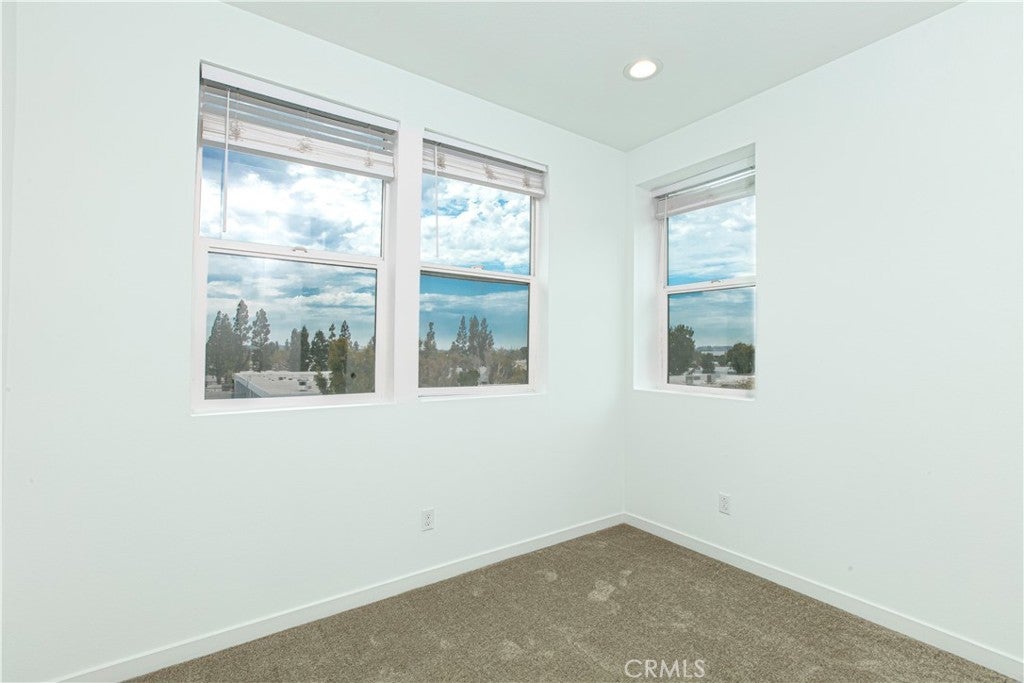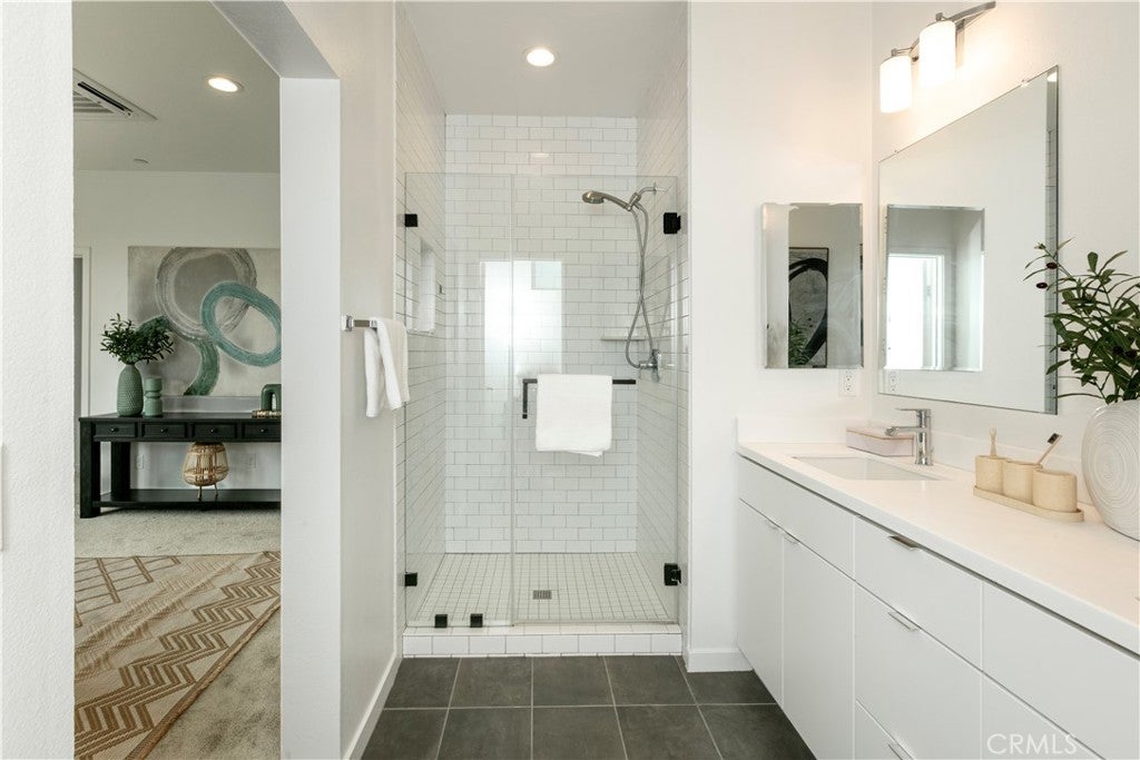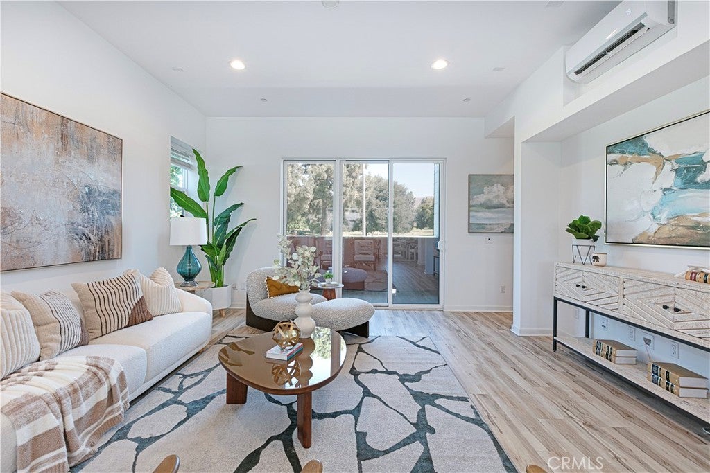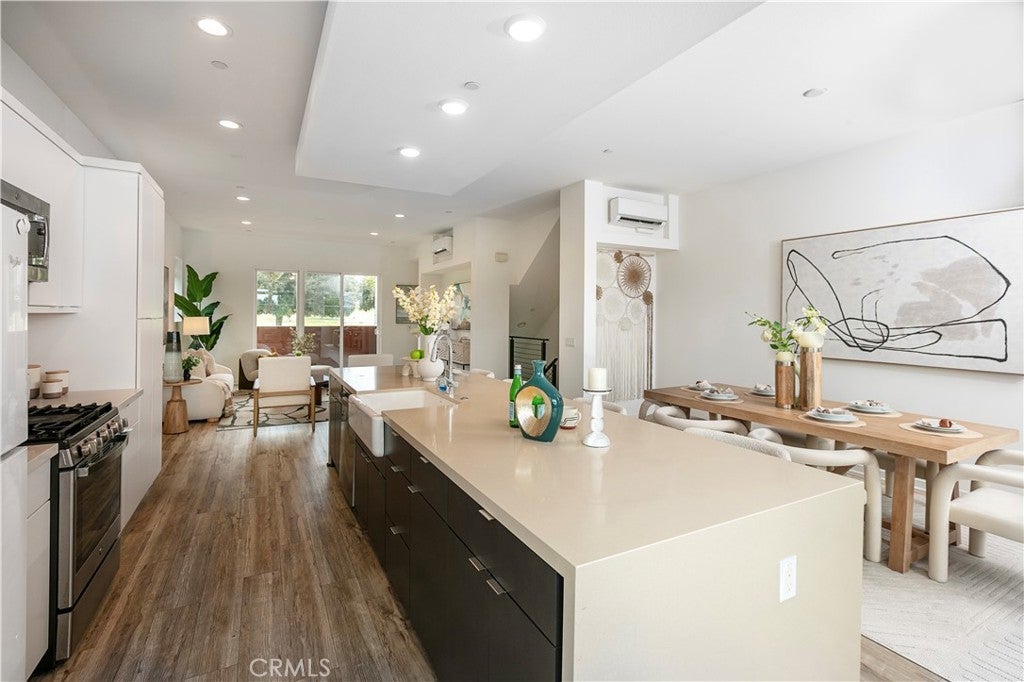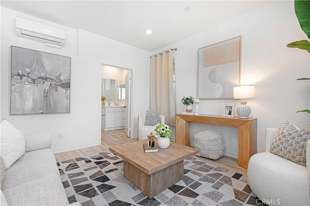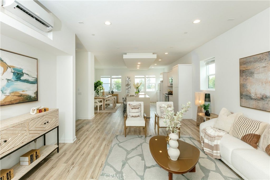 Experience modern luxury in Brea’s premier West Village. Built by Trumark Homes in 2020, this sophisticated 3-story end-unit townhome seamlessly blends architectural elegance with functional living. The journey begins with a striking floating wood staircase that leads to a versatile first-floor bonus room with an en-suite bath—perfect for a home office, gym, or guest suite. The heart of the home unfolds on the second level, featuring an expansive open-concept floor plan anchored. A gourmet chef’s kitchen serves as the centerpiece, boasting a massive quartz island, white shaker cabinetry, and premium stainless steel appliances. Retreat to the third floor to find the oversized primary suite, offering a spa-inspired bathroom and a private balcony with serene, unobstructed hill views. Meticulously upgraded with designer flooring, recessed lighting, and energy-efficient features including zoned split AC, a tankless water heater, and leased solar panels. Complete with an attached 2-car garage and located minutes from top-rated schools, Brea Mall, and vibrant dining. This turn-key designer masterpiece offers an unparalleled lifestyle of comfort and convenience.