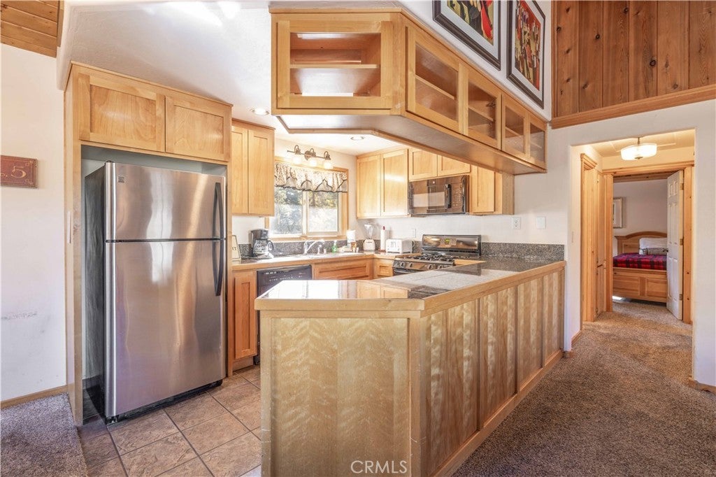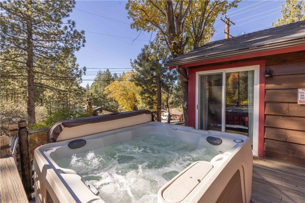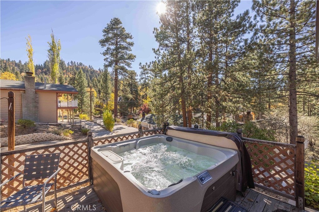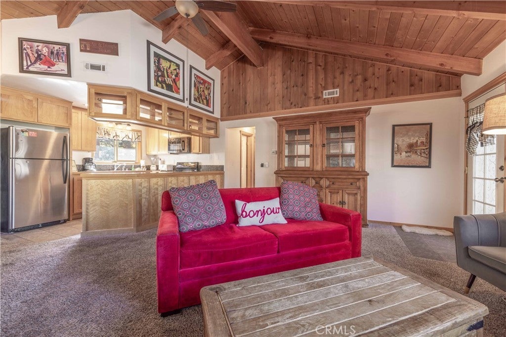 Priced Aggressively! Charming Big Bear Lake cabin just steps from The Village! This updated 2-bedroom, 1-bath retreat offers vaulted wood-beam ceilings, a cozy river-rock fireplace, and tasteful upgrades throughout. Enjoy pine cabinetry, granite-tile counters, tile flooring, dual-pane windows, and a beautifully tiled bath. Both bedrooms feature sliding glass doors and elevated ceilings, creating a bright, airy feel. A spacious laundry/mud room adds convenience. Outside, relax on the stamped-concrete patio with peek-a-boo lake views or entertain on the back deck surrounded by mature pines. Large front and rear parking areas provide plenty of space for guests. Located less than 1/3 mile to The Village, the marina, and minutes to ski resorts, this cabin is ideal as a personal getaway or proven vacation rental. This home embodies the best of Big Bear living — whether you’re seeking personal escape or rental return.