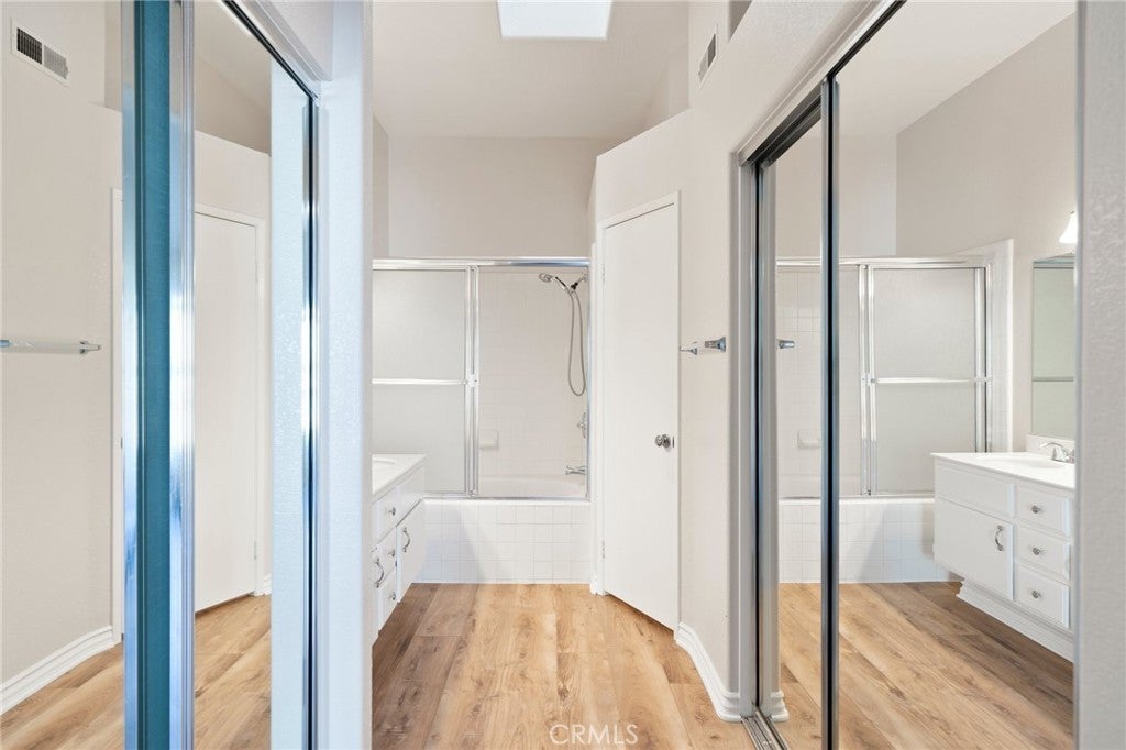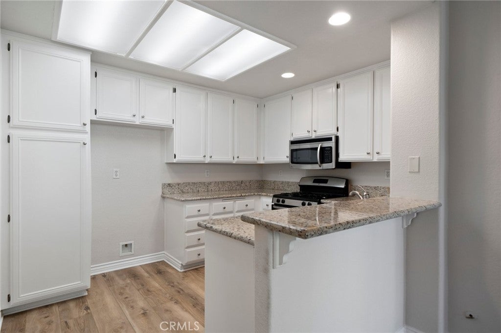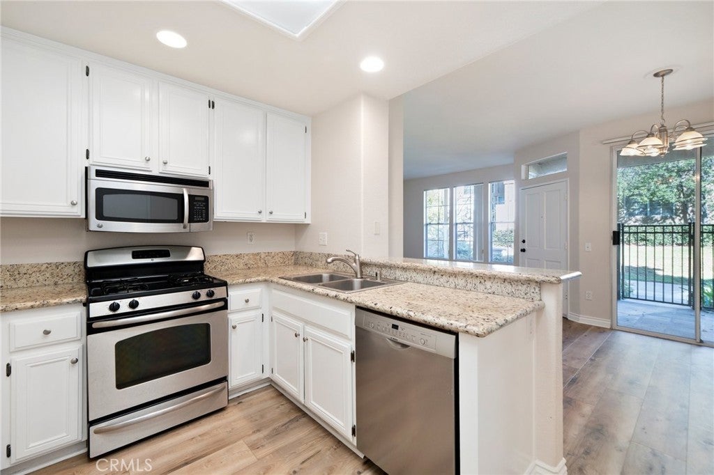 Located in the highly desirable Seacove Place community, this tranquil two-story townhouse offers the perfect combination of comfort and convenience. The spacious, open floor plan is filled with natural light and features a cozy fireplace, creating a warm and inviting atmosphere. Recently upgraded with brand-new luxury vinyl flooring throughout, the home is both stylish and functional. The kitchen boasts granite countertops, stainless steel appliances including a newer stainless steel refrigerator, recessed lighting, and a convenient pantry, making it perfect for everyday cooking and entertaining. Upstairs, you’ll find two generously sized bedrooms with vaulted ceilings. The primary bedroom features two mirrored closets, an ensuite bath with double sinks, a skylight, and a separate water closet. The secondary bedroom includes a walk-in closet and peaceful greenbelt views. A half bath is conveniently located downstairs, and there are indoor laundry hookups for added ease. With no one above or below, this property also comes with a one-car garage, a driveway, and an assigned parking space, providing a total of three parking spots. The community features a recently updated pool and spa, while nearby parks offer playgrounds, sports fields, tennis courts, and a basketball court. Nature lovers will enjoy the 22+ miles of hiking and biking trails, and the home is just 5 miles from Laguna Beach. Close to shopping, dining, toll roads, and award-winning schools, this home truly has it all.