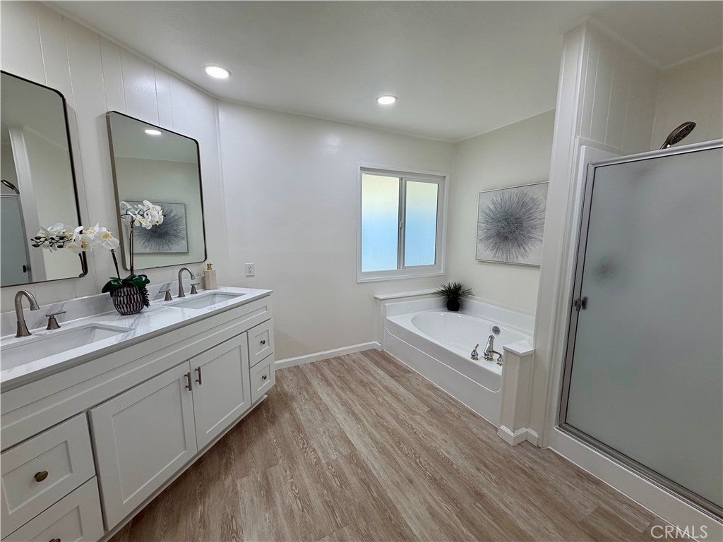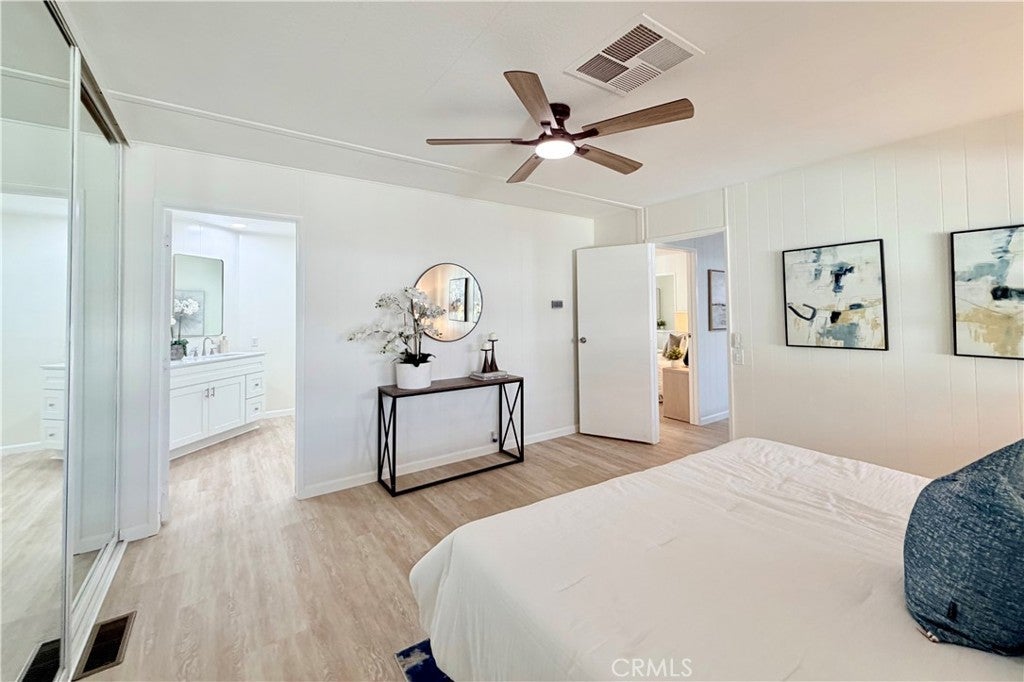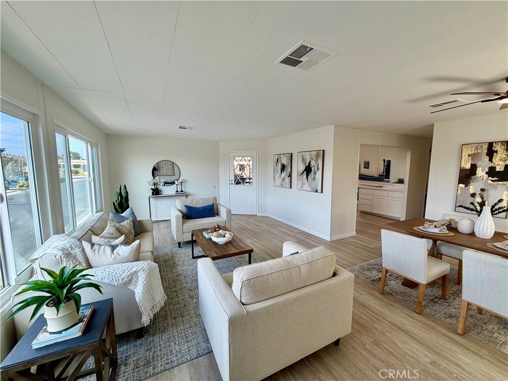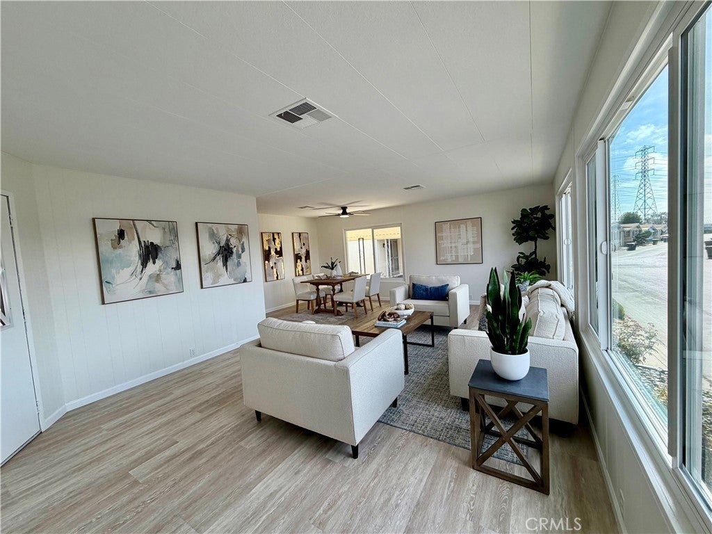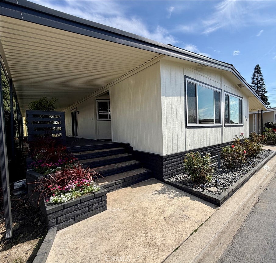 LOCATION, LOCATION, LOCATION! Welcome home to One of Orange County's premier 55 or better communities! This beautifully updated home is located in Sunkist Gardens, situated in one of the most desirable areas of Anaheim - near Angel Stadium, Honda Center & the newest exciting addition (under construction), OC Vibe, featuring restaurants, entertainment, outdoor space & more. Recent improvements include fresh paint inside & out, stunning, open kitchen, new vanities in both bathrooms, recessed lighting & dual pane windows. Private, covered patio off family room offers the best outdoor space around. Home is ideally positioned toward the back of the community, with minimal traffic and no homes directly across the street, creating a private, serene setting. The west-facing orientation fills the living space with beautiful natural light - so open & inviting. Home has a new roof, newer central air conditioning and heating, a large storage shed providing additional storage & long driveway able to accommodate at least 2 cars. Plus, guest parking right across the street. Sunkist Gardens is known for its pride of ownership, well-maintained grounds, open green space, sparkling pool, indoor spa, gym, large clubhouse with activities and gatherings. Residents enjoy plenty of guest parking, a pet-friendly environment, and affordable RV parking within the community. Conveniently located near freeways, shopping, restaurants, and grocery stores. This home offers both comfort and convenience in a fantastic Anaheim location. Homes that combine privacy, location, and community lifestyle like this rarely become available. Come experience this stunning home & everything Sunkist Gardens has to offer.