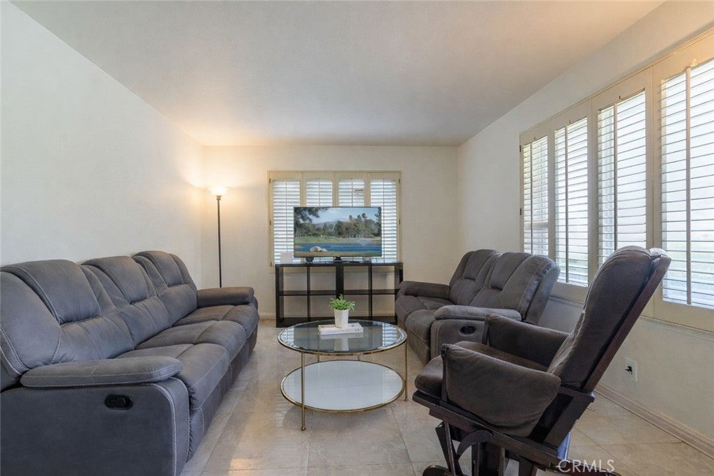 Welcome to The Lido Unit at Tiburon, a beautifully maintained single-story end unit in one of the most desirable locations in the Tiburon community of Fountain Valley. This 2-bedroom, 2-bath home features an open layout with a dining area adjacent to the living room, creating a spacious and inviting feel from the moment you enter. Tile flooring runs throughout the home, and large windows and sliding doors provide abundant natural light and views to the private patio. The remodeled kitchen features honey-golden granite countertops and backsplash, stainless appliances, stainless sink and hardware, medium brown cabinetry with accented glass cabinet doors, and generous storage. The primary suite includes an en-suite bathroom with tile flooring and a tub/shower with waterfall glass doors. The secondary bedroom is located near a full guest bathroom with a walk-in shower and glass enclosure. One of the largest patios in Tiburon creates a private outdoor retreat with a peaceful waterfall pond with live turtles, perfect for relaxing or entertaining. Additional features include dual-pane windows and sliders, scraped ceilings, plantation shutters, and a detached two-car garage with laundry hookups. Tiburon residents enjoy five pools, two clubhouses, parks, playgrounds, and scenic greenbelts with walking paths. Ideally located near shopping, dining, parks, and freeway access, this home offers comfort, convenience, and community living.