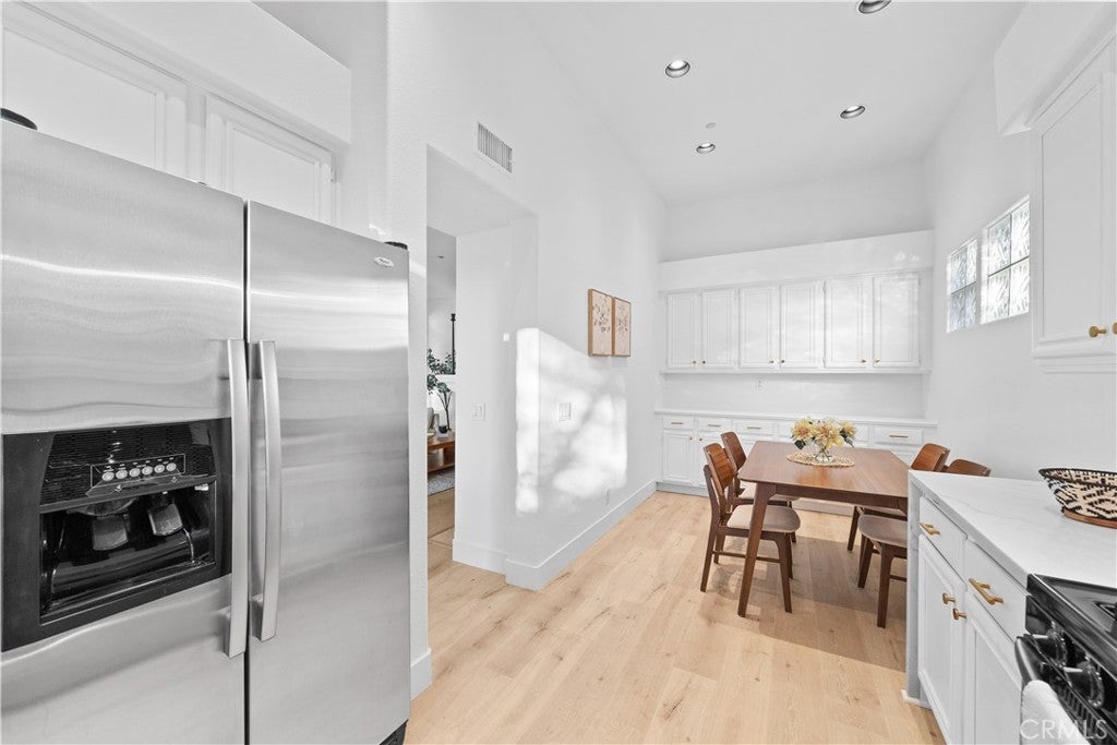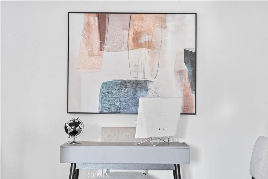 Turnkey remodeled detached home in the highly sought-after Villavante community of Rancho Santa Margarita, located just moments from Tijeras Creek Golf Course. This light-filled residence offers approximately 1,712 sq ft with an open floor plan and beautiful hardwood flooring throughout the entry, living, and dining areas. The main level features a flexible office or ideal for guests, plus a convenient full bathroom with shower. The spacious kitchen includes quartz countertops, rich wood cabinetry, stainless steel appliances, and a bright breakfast nook. Upstairs, the oversized primary suite features a private patio deck, a large walk-in closet, and a spa-style bath with tub and separate shower. The secondary bedroom includes its own full bathroom for added privacy. Enjoy peaceful canyon views from the backyard with patio and low-maintenance artificial turf. Additional upgrades include fully paid solar, complete PEX re-pipe, and a garage with epoxy flooring and ample storage. Close to pools, spa, RSM Lake, parks, hiking trails, shopping, dining, tennis, and pickleball.