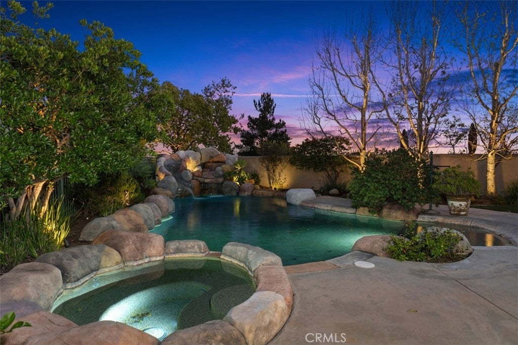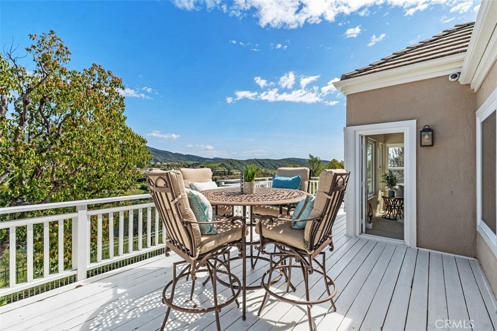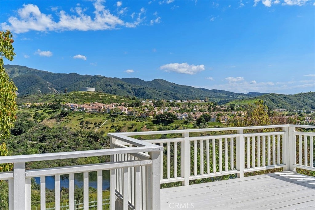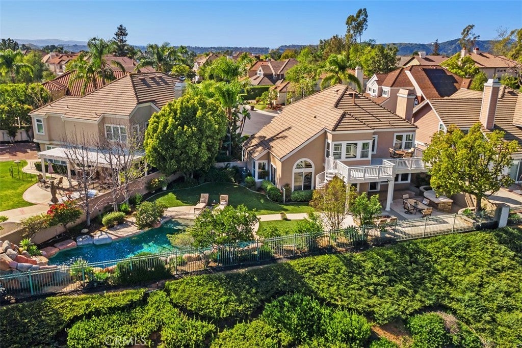 Majestic panoramic views of the Saddleback Mountains, rolling hills, sparkling lake/reservoir, and dazzling city lights make this truly a one-of-a-kind home. Perched at the end of a quiet cul-de-sac on one of the premier lots (approximately 9,000 sq. ft.) in the prestigious 24-hour guard-gated community of Dove Canyon in South Orange County, the views are so profound you simply won’t be able to take your eyes off them. Enjoy breathtaking morning sunrises and moonlit evenings from multiple backyard patio areas or the private second-level deck. The lot and location truly make this home a rare find. This beautifully well-maintained residence reflects true pride of ownership and offers 4 bedrooms and 3 bathrooms, including a convenient downstairs bedroom ideal for guests or a home office. Designed for both comfort and entertainment, the backyard offers a true private resort experience. Enjoy the sparkling pool and spa with a recently re-PebbleTec bottom, freshly painted boulders, waterfall and slide, built-in BBQ, large fire pit, newer hardscape, patio and garden lighting, and artificial turf. An expansive upper deck showcases incredible vistas and provides a spectacular secondary entertaining space. A staircase connects the downstairs patio to the upper deck, creating seamless indoor-outdoor flow and making this elevated setting ideal for large or intimate gatherings. Upstairs, the primary suite is a private retreat designed to capture spectacular panoramic views from nearly every angle, filling the space with natural light. The ensuite bath features dual vanities, a soaking tub, and a separate shower, creating a comfortable escape. Enjoy your morning coffee on the deck while surrounded by natural beauty and the birds humming. The upper level also offers two spacious secondary bedrooms (one with a walk-in closet) and a full bath, providing comfort for family or guests. This home has been well maintained with newer Milgard dual-pane windows, newer dual-zone AC units, a newer hot water heater, and complete PEX re-piping. Residents of Dove Canyon enjoy resort-style amenities including a private Jack Nicklaus Signature golf course and clubhouse, tennis and pickleball courts, community pool and spa, scenic hiking and biking trails, a children’s playground, and many community events. Walking distance to Santa Margarita Catholic High School and located near award-winning public schools. This home truly has it all. Come and see this exceptional home.