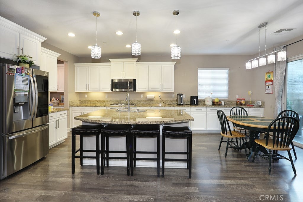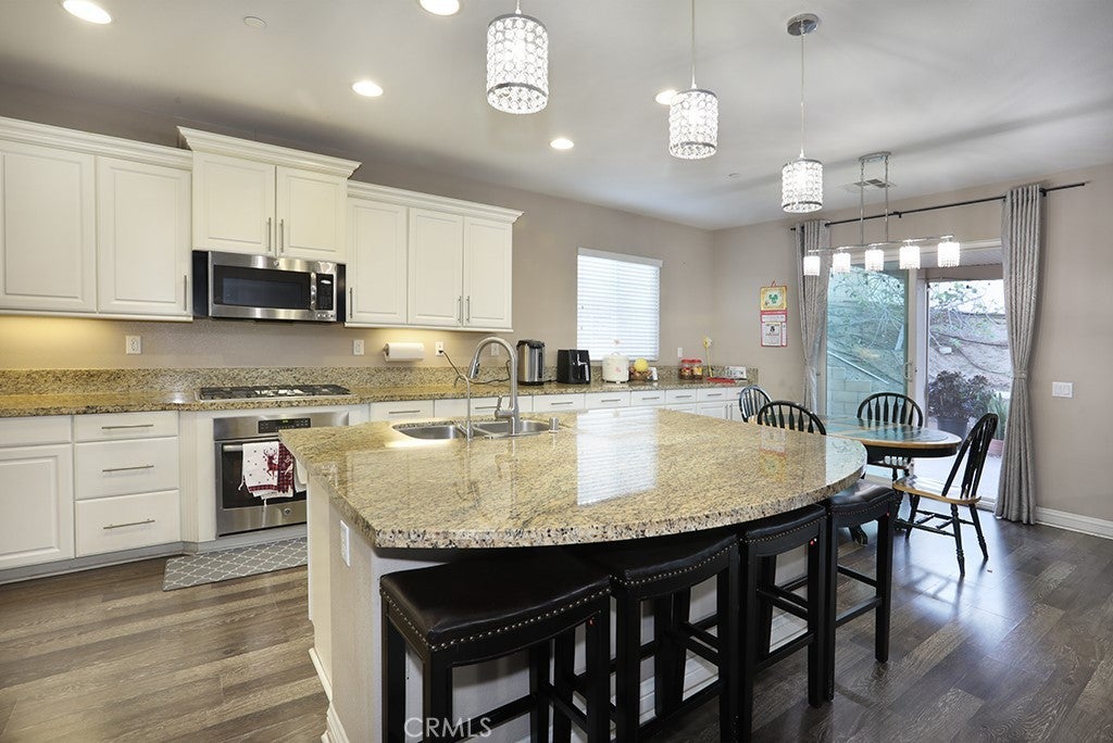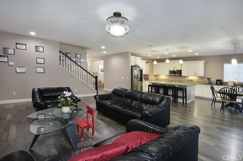 Welcome to 12253 Baird Way, a stunning and spacious residence located on a desirable corner lot in the beautiful Highlands community of Riverside. This impressive home offers 5 bedrooms, 4.5 bathrooms, and approximately 3,779 square feet of living space on a generous 8,712 square foot lot, providing plenty of room for comfortable living and entertaining. Step inside to a bright and inviting floor plan featuring a beautifully designed kitchen with white cabinetry, granite countertops, stainless steel appliances, and a large center island that opens seamlessly to the spacious family room—perfect for gatherings and everyday living. The family room is highlighted by a cozy fireplace and large sliding glass doors that lead to the beautifully landscaped backyard. The outdoor space is ideal for relaxation and entertaining, featuring stamped concrete, multi-level planter beds with lighting, mature fruit trees, and a covered patio with built-in lighting, creating a peaceful and private retreat. This thoughtfully designed home includes a main-level bedroom with a private full bathroom and walk-in closet, ideal for guests or multi-generational living. Upstairs, you’ll find a spacious loft, a convenient laundry room with sink, and three well-sized secondary bedrooms. The luxurious primary suite features two walk-in closets, a soaking tub, separate walk-in shower, and dual vanities, offering a spa-like retreat. Additional highlights include a water softener system, 3-car attached garage with built-in storage cabinets, and beautifully landscaped front and back yards. Prime location close to shopping, dining, entertainment, and major freeways, this exceptional Riverside home truly has it all.
