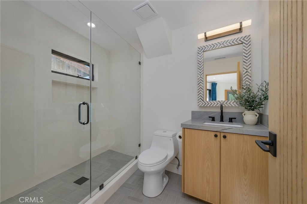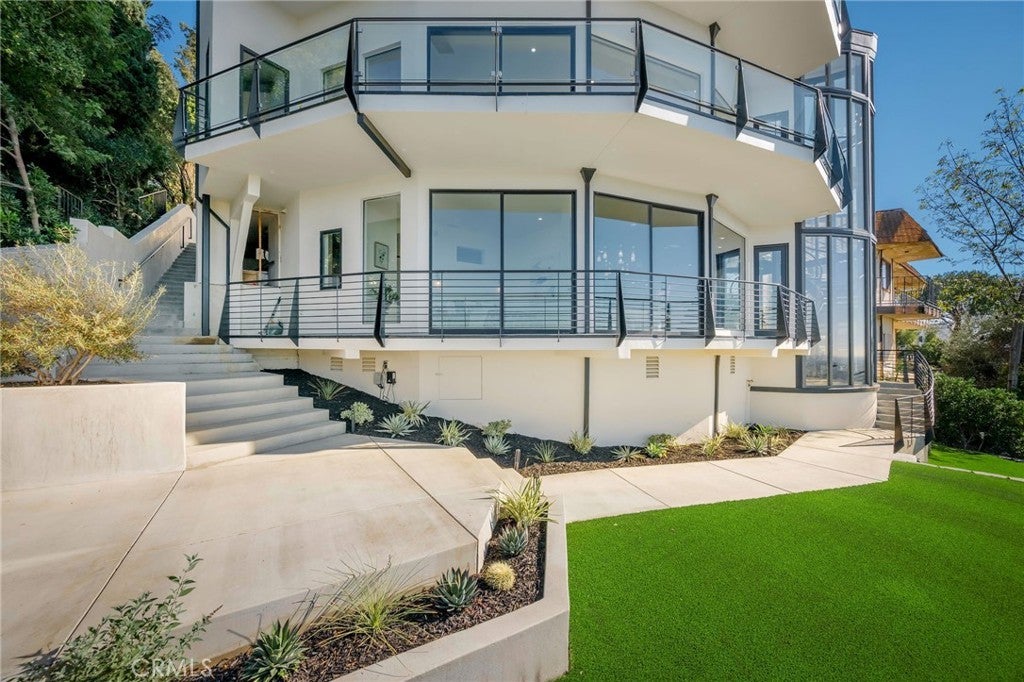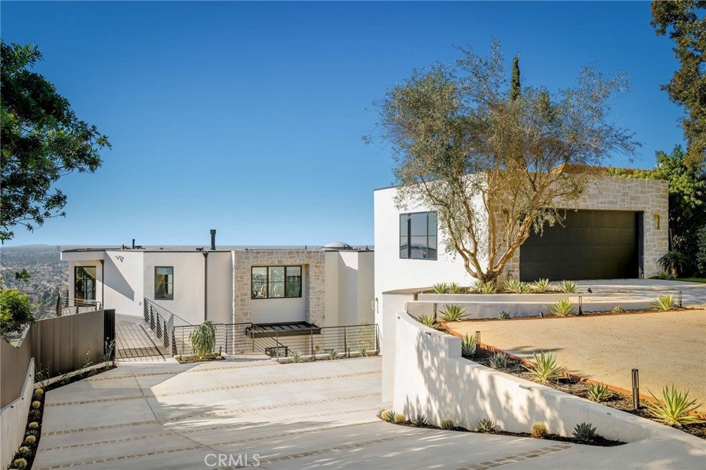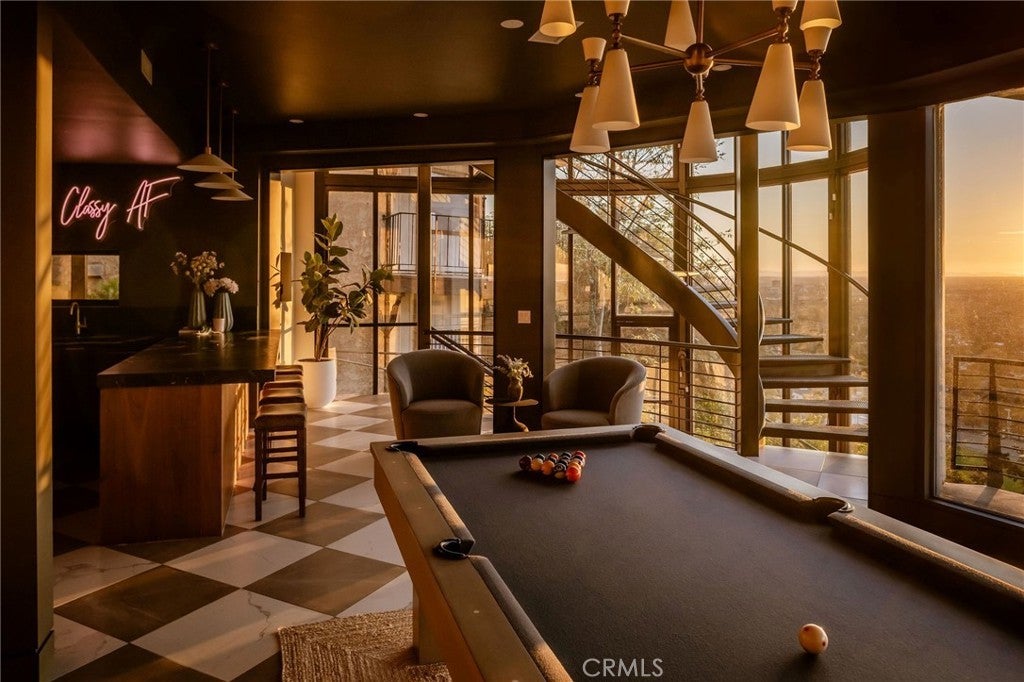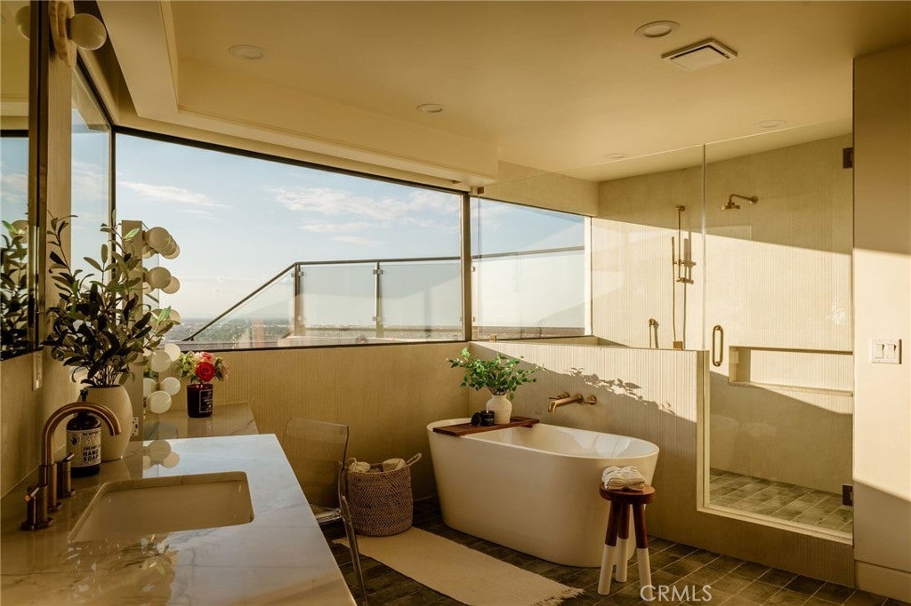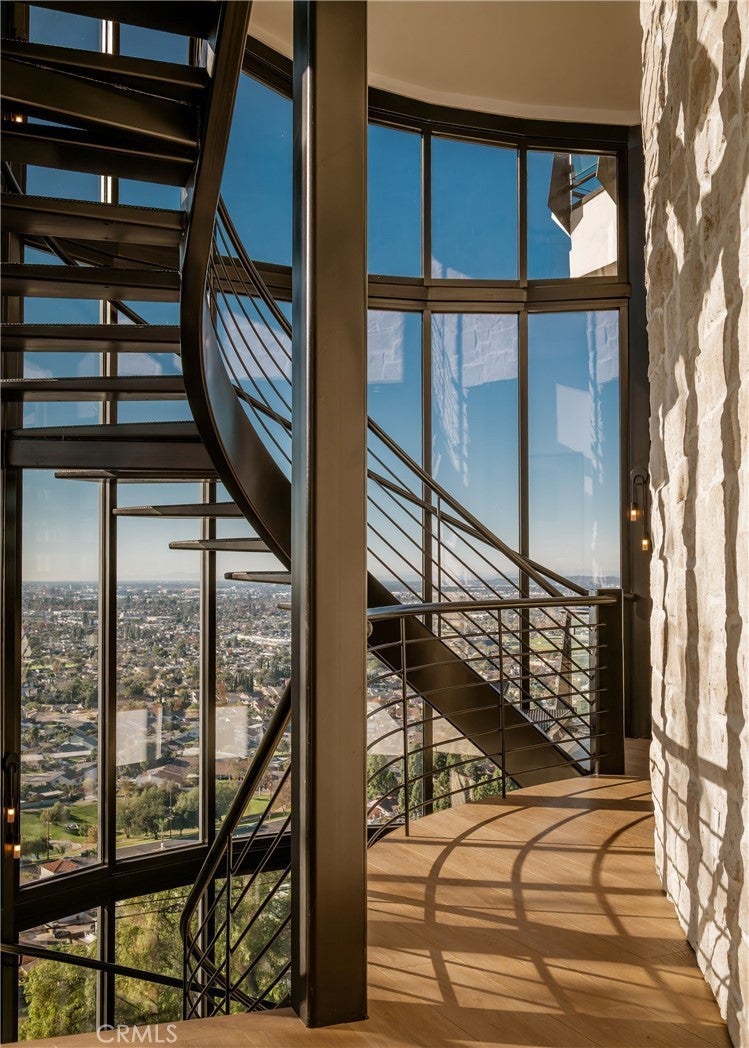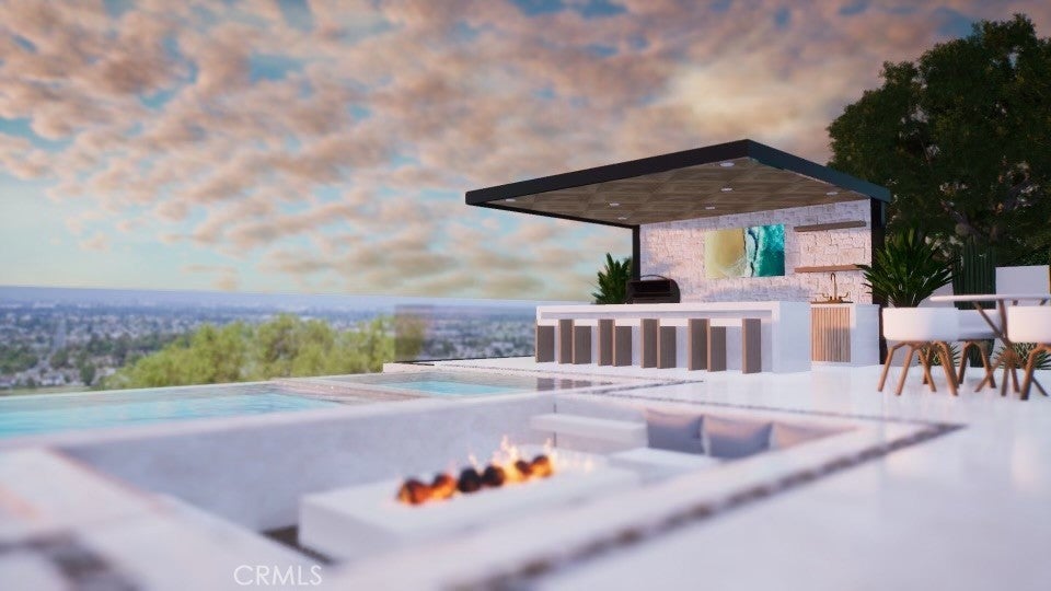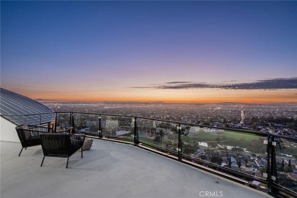 Welcome to “The Halo House” — a one-of-a-kind trophy estate perched in the coveted hills of North Tustin, California, where 180° panoramic views stretch from Catalina Island across the Long Beach Port to the Downtown Los Angeles skyline. Enjoy nightly Disneyland fireworks, best experienced from your private hot tub under the stars. The main living level is designed for elevated everyday living and entertaining. The chef’s kitchen features white oak cabinetry, quartzite waterfall countertops, full backsplash, and a complete JennAir appliance suite, plus a workstation sink. A hidden butler’s pantry offers a second dishwasher, wall oven, steam oven, microwave, beverage fridge, and abundant storage—ideal for hosting. Walls of glass open to a view deck, creating seamless indoor-outdoor living with dramatic scenery as your backdrop. The primary suite occupies its own private level, delivering a true resort experience. Step onto a 1,200-sq-ft view deck with spa-style hot tub, travertine firepit, and lounge areas overlooking ocean, city, and sunset views. Inside, the suite includes floor-to-ceiling sliding glass doors, a dedicated office, and a spa-inspired bath with dual vanities, heated floors, and a freestanding soaking tub. The custom walk-in closet features its own washer/dryer combo and LG clothing steamer. A coffee bar and beverage fridge complete this exceptional retreat. The lower level is an entertainer’s dream, anchored by a full custom bar with fluted walnut cabinetry, dramatic black quartzite countertops, ice maker, dishwasher, fridge, and restaurant-style sink trough with glass rinser. A pool table area, bold design details, and floor-to-ceiling windows with panoramic views create a space made for unforgettable gatherings. An additional bedroom and bathroom plus direct backyard access offer flexibility for guests or extended living. Multiple outdoor spaces provide endless options for relaxation and entertaining, including a private courtyard with fireplace, fountains, mature olive trees, and landscape lighting. Backyard renderings are available, offering future potential for a pool and expanded outdoor living. This is more than a home—it’s a statement. A rare trophy home combining iconic views, resort-style living, and exceptional design.