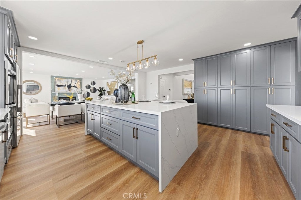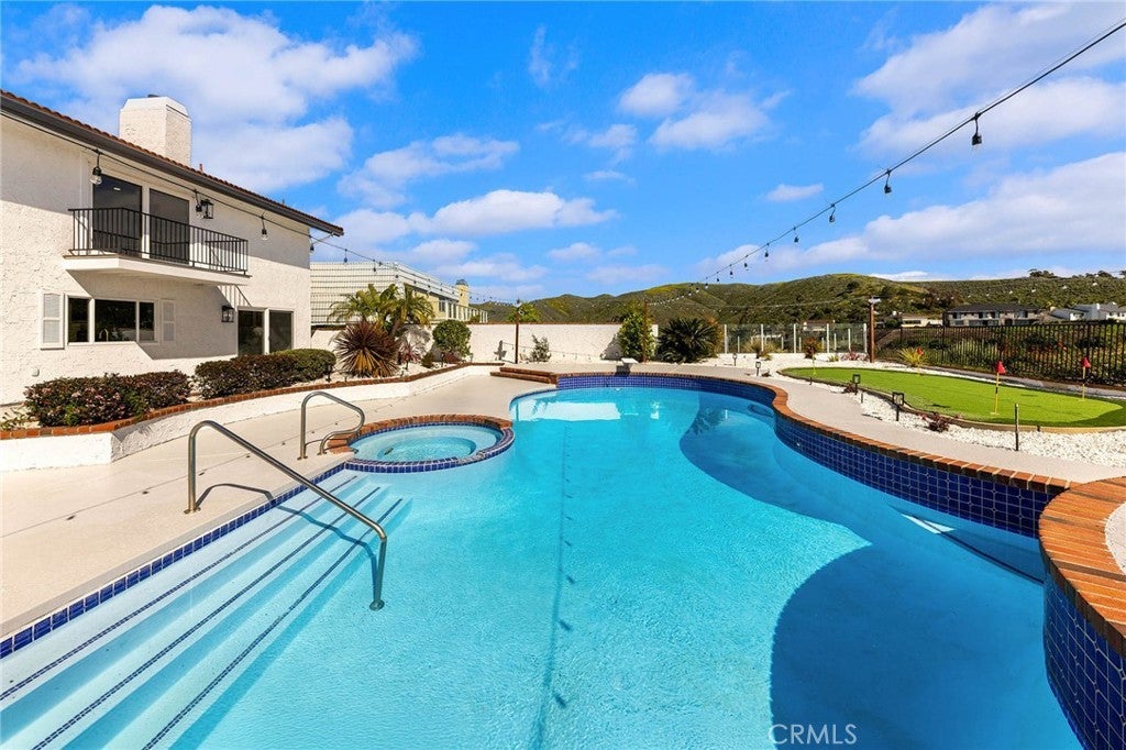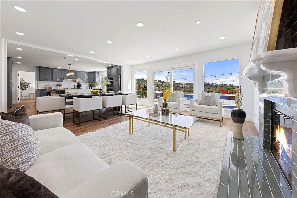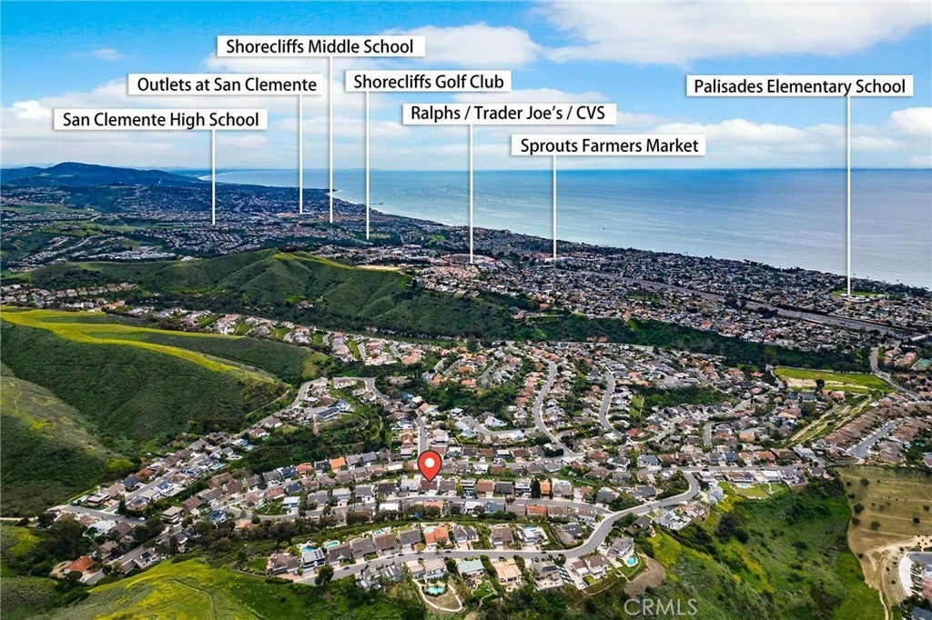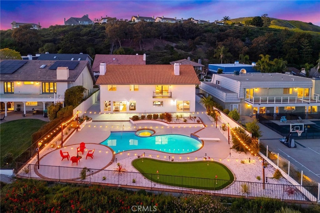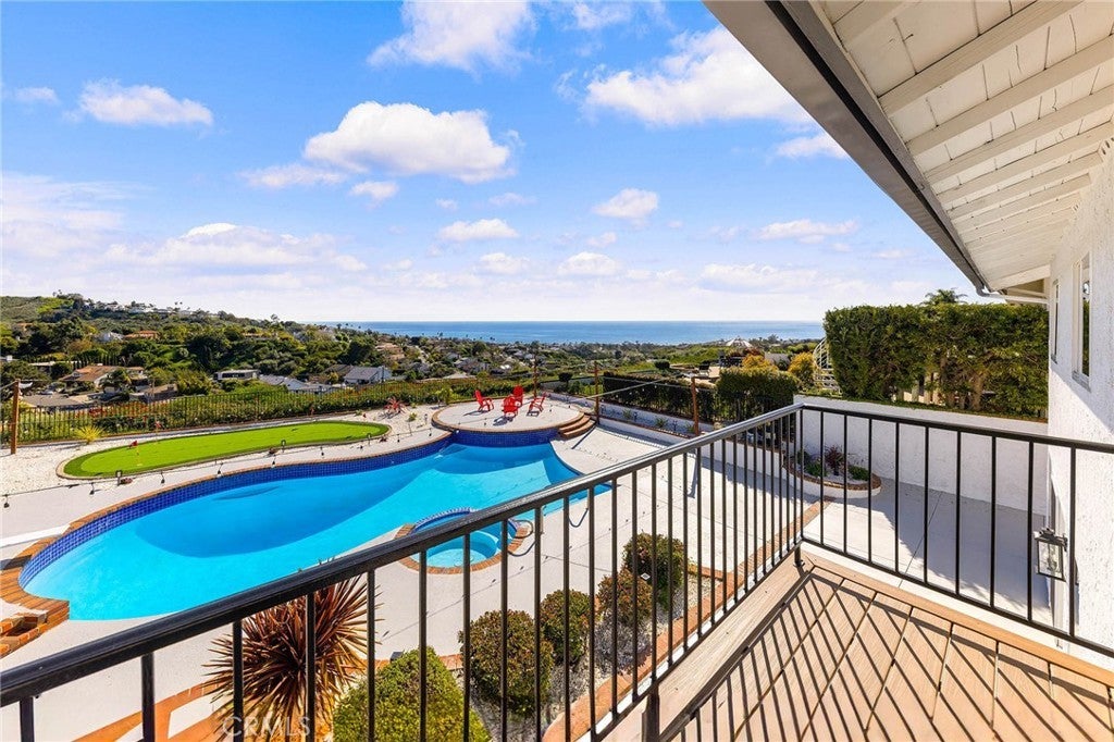 Coastal Meredith Canyon View Home | Panoramic Ocean, Hills & City Lights. Welcome to this beautifully remodeled designer home in the desirable Meredith Canyon community, offering breathtaking panoramic ocean, hillside, and city lights views. This exceptional residence combines luxury living with an entertainer’s dream backyard, all set on a flat 10,000+ sq. ft. lot. The home features 5 bedrooms (with permit), 3 full bathrooms, and approximately 3,150 sq. ft. of living space, along with a 3-car garage. Thoughtfully updated throughout, the home showcases a spacious and open layout designed for both comfortable living and entertaining. The gourmet open-concept kitchen serves as the centerpiece of the home, featuring custom cabinetry, brand-new stainless steel appliances, and a large center island, perfect for gatherings and everyday living. Adjacent living areas include formal living and dining rooms, as well as a family room with a fireplace, creating multiple spaces for entertaining and relaxation. A main-floor bedroom with scenic views and a fully remodeled bathroom offers flexibility for guests or multigenerational living. The upstairs primary suite is a private retreat featuring a luxurious bathroom, a cozy fireplace, a walk-in closet, and a private balcony where you can enjoy stunning ocean and sunset views. Step outside to the newly landscaped backyard, designed for resort-style living with a pool, spa, fire pit, and a private putting green, creating the perfect outdoor oasis for entertaining and relaxation.Additional highlights include:• New HVAC syste• 3-car garage with additional mezzanine storage space. Ideally located between Dana Point and San Clemente, this home is just minutes from local beaches, Dana Point Harbor, fine dining, shopping, hiking trails, and outdoor recreation. Convenient access to PCH and nearby freeways makes commuting easy. No HOA and low tax base, making this an exceptional opportunity to own a beautifully upgraded coastal view home in a highly desirable location.