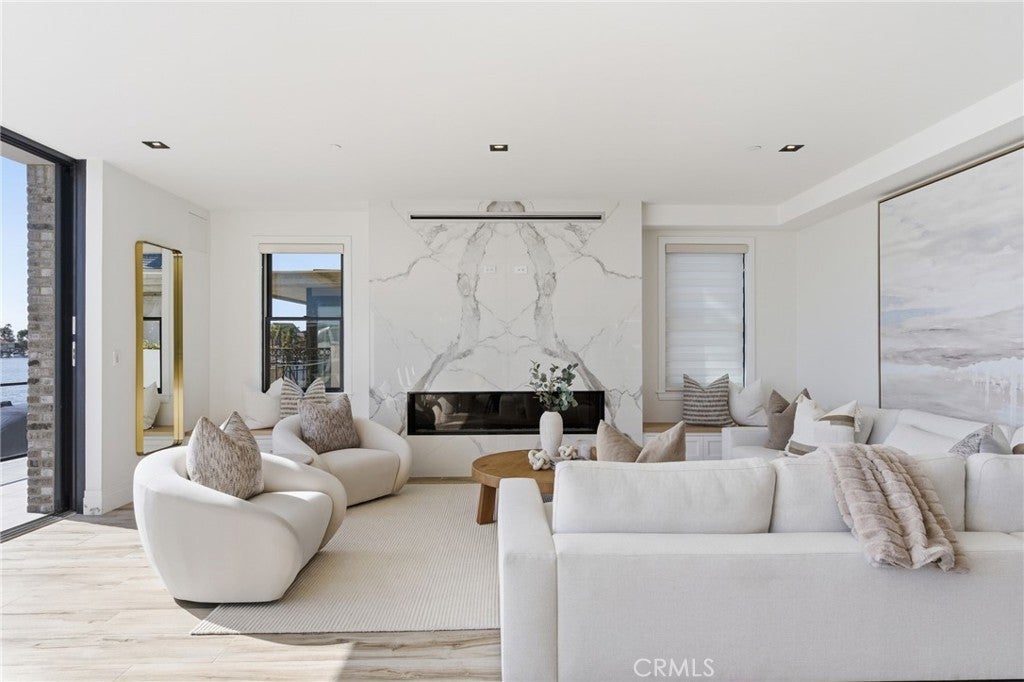 An exceptional opportunity to experience premier waterfront living in the heart of Huntington Harbour, complete with a private 347-square-foot boat dock capable of accommodating a vessel of approximately 50 feet. Perfectly positioned along the water, this stunning newly constructed residence offers breathtaking harbour views and the ultimate Southern California coastal lifestyle. Spanning approximately 5,158 square feet, this newly constructed home features thoughtfully designed with refined finishes throughout. Walls of glass invite abundant natural light while framing tranquil water views, creating a seamless connection between indoor living spaces and the picturesque harbor setting. The open-concept living and dining areas flow effortlessly into a beautifully appointed chef’s kitchen, ideal for both everyday living and sophisticated entertaining. Restoration Hardware lighting and premium fixtures add a timeless sense of luxury and design. Additional highlights include a private elevator servicing all levels, generous garage space, and multiple outdoor areas perfect for enjoying ocean breezes and sunset views across the harbor. With boating, paddleboarding, and waterfront dining just moments away, this remarkable Huntington Harbour residence offers an extraordinary blend of elegance, comfort, and coastal living.