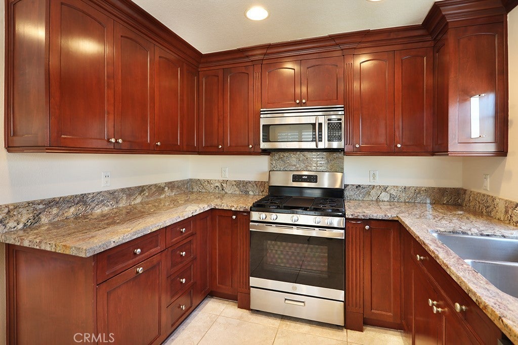 Welcome to this charming 2 bed, 2 bath condo nestled in the sought-after gated community of Meadow Ridge Villas in beautiful Trabuco Canyon. Perched on the second story, this home offers stunning views of iconic Saddleback Mountain and is surrounded by the natural beauty of one of Orange County's most desirable outdoor communities. The entry living room flows seamlessly into the bright kitchen, featuring gorgeous custom cabinetry and stainless steel appliances perfect for everyday living and entertaining alike. The primary bedroom boasts vaulted ceilings, a walk-in closet, and ensuite bathroom. Stay comfortable year-round with a whole house fan and upgraded ceiling fans throughout the home. An inside laundry area adds everyday convenience, while the private patio is the perfect spot to sip your morning coffee and soak in the sunrise views. Additional highlights include a one-car detached garage, all dual-paned windows, and a completely re-piped system with PEX. The community offers a pool, relaxing spa, gym, and playground for residents to enjoy. Located just minutes from award-winning Portola Hills Elementary, miles of hiking, biking, and running trails, plus shopping and dining, this home truly captures the best of the Southern California lifestyle.