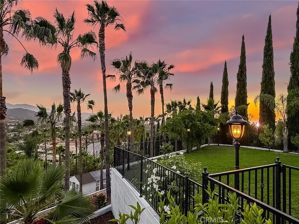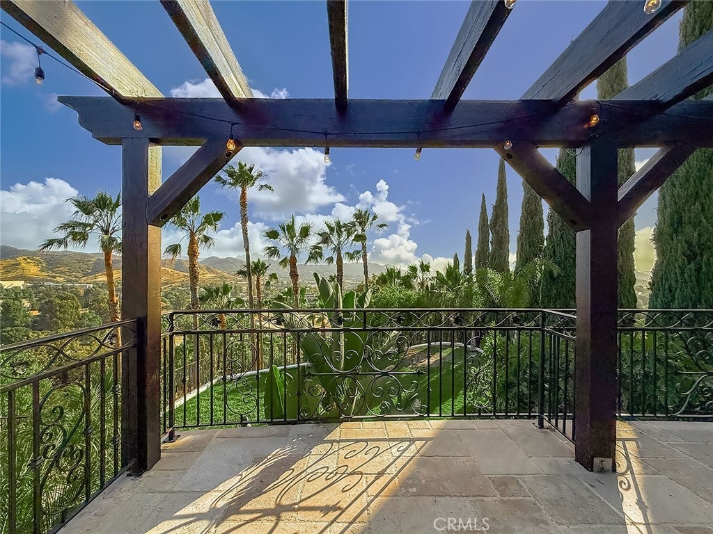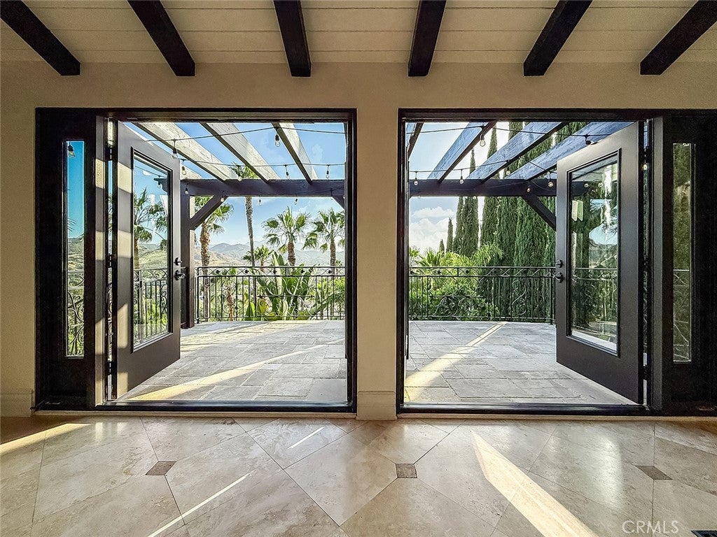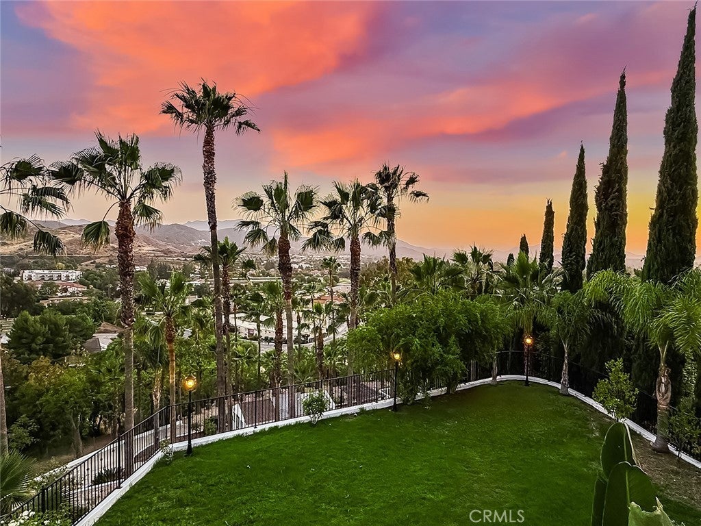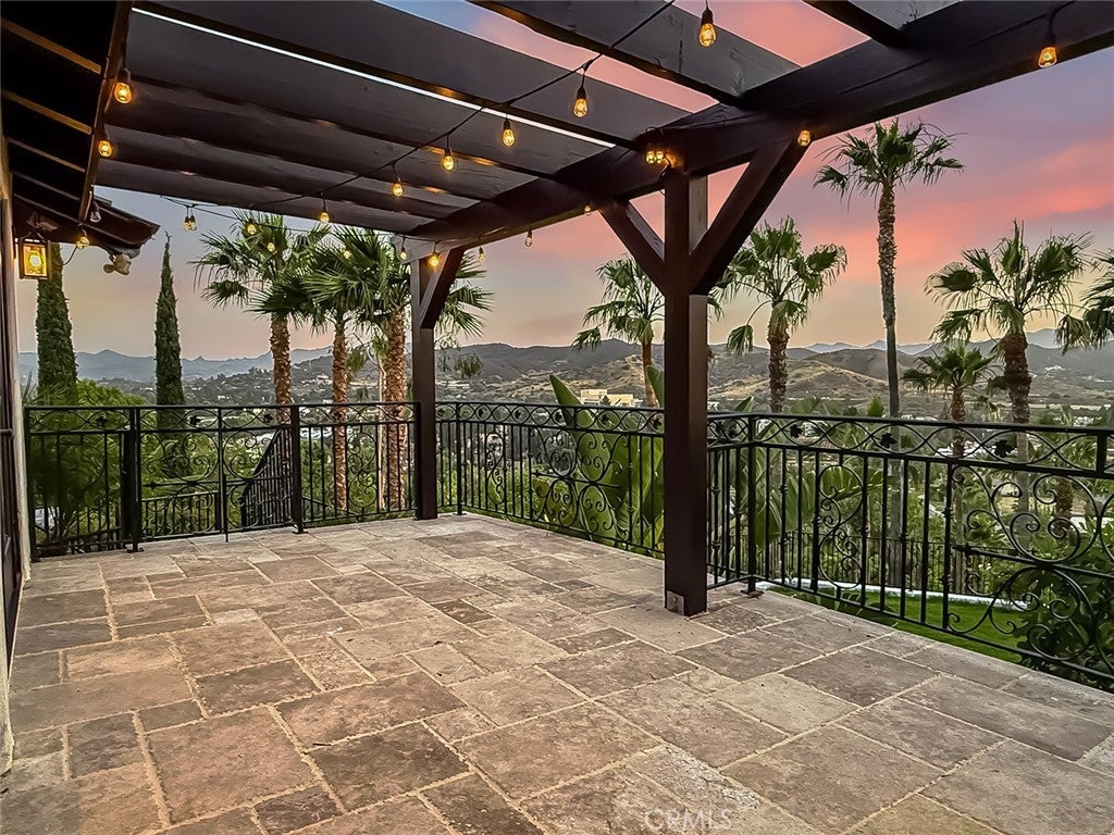 Luxury Live Auction! Bidding to start from $1,700,000! One-of-a-kind Spanish Hacienda estate with sweeping mountain and city views, privately gated and surrounded by mature Mediterranean landscaping on a fully fenced acre. The gourmet kitchen features granite countertops, stainless steel appliances, and a walk in pantry that flows into the dining area and living room with a custom fireplace. Three sets of French doors open to dual patios overlooking the lush grounds and capturing stunning sunrise and sunset views. The spacious primary suite includes dual closets, scenic views, and a spa inspired bathroom with soaking tub, frameless glass shower, and dual sinks. The lower level is designed for entertaining with a large family room, fireplace, full size custom wet bar, and direct access to the backyard. Two additional bedrooms on this level each include private ensuite bathrooms. A rare four car garage with tandem workspace is ideal for car enthusiasts and features an in ground hydraulic lift, compressor, engine hoist, and built in steel cabinetry. Additional upgrades include custom windows and doors, smooth stucco, updated plumbing, and HVAC. Zoned RE20 with space for horses, chickens, and gardening, the property includes a custom chicken coop and plenty of room for farm to table living. Conveniently located near mountain trails, shopping, dining, the 23 and 101 freeways, and Conejo Valley schools!