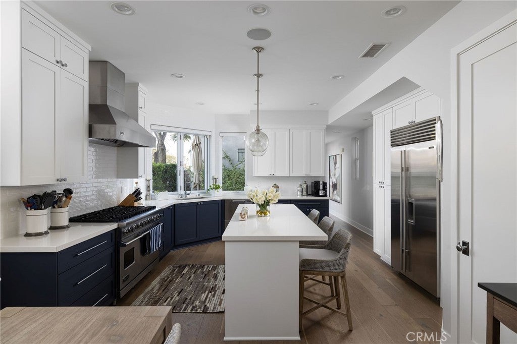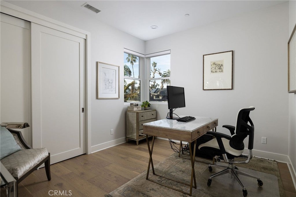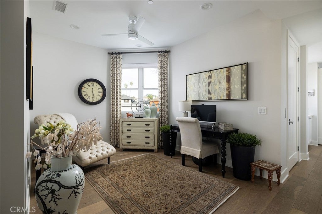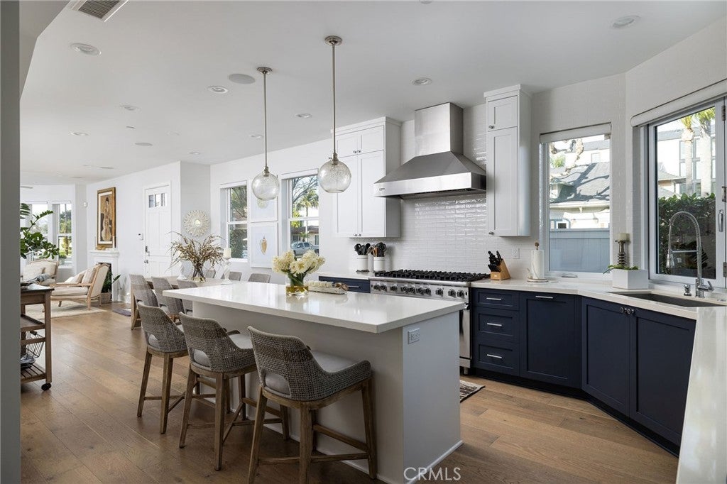 Nestled in the heart of Huntington Beach’s lively downtown district, 428 7th Street is a masterpiece of coastal craftsmanship. Built in 2017, this stunning Craftsman style home sits on a prime 2938 square foot corner lot, offering 2808 square feet of thoughtfully designed living space with incredible lighting, privacy, and an elevated aesthetic. From the moment you see its unique rounded front façade, it is clear this is no ordinary home. Designed by the illustrious Jasmine Roth, this home is a showcase of custom architecture and artistry. Every detail has been carefully curated to combine beauty with functionality. The exterior shines with a timeless galvanized metal roof, not only adding character but also ensuring low maintenance in the coastal climate. Inside, high end finishes like rich white oak hardwood floors, elegant marble accents, and premium Kohler fixtures elevate the home’s aesthetic while promising lasting quality. Natural light floods the spaces from every angle thanks to the strategic design and abundance of windows, enhancing the home’s warm and inviting atmosphere. The main level is an entertainer’s dream. The gourmet kitchen is a showstopper featuring Viking appliances, crisp quartz countertops, custom cabinetry, and a clever pass through window that seamlessly connects to the outdoor dining area. The living room anchored by a cozy fireplace flows effortlessly to a charming patio. Upstairs, the master suite is a haven of luxury with its own romantic fireplace, generous storage, and spa like bathroom. Two additional bedrooms, a full bath, and a versatile den offer plenty of room for family, guests, or even a home office. The third floor takes leisure to new heights featuring a wet bar and two expansive rooftop decks. The front deck provides a covered patio with fireplace and tv, while the private back deck is specially designed to adapt to a wide range of entertainment possibilities. This custom built gem does not just stand out for its beauty. Location is everything and this home offers the best of Huntington Beach living. You are just steps from the iconic pier, world class surf spots, boutique shops, and trendy dining options. Yet thanks to its position near Pecan Avenue, a quieter non-through street, you will enjoy a sense of tranquility that is a rare find in the bustling downtown area. With its modern elegance, impeccable craftsmanship, and unbeatable proximity to the beach, 428 7th Street is not just a home. It is a lifestyle.