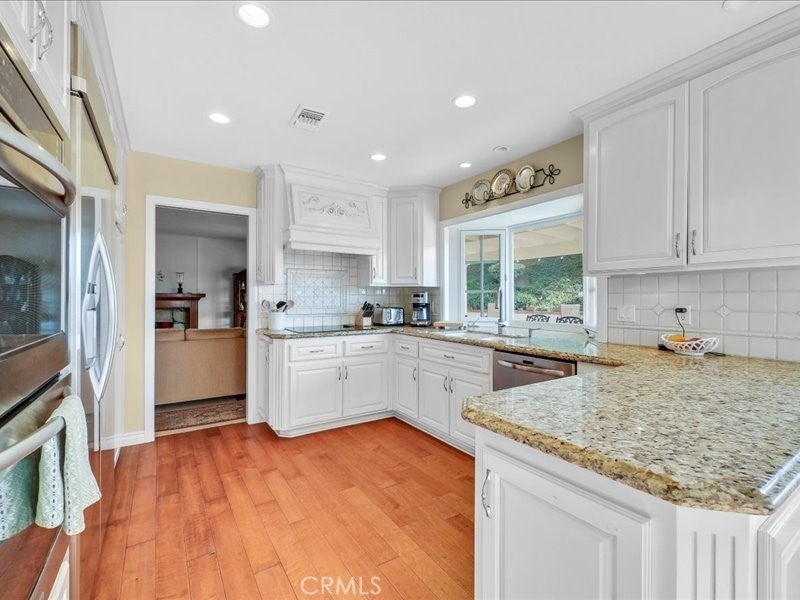 Welcome to your dream oasis! This stunning Pool home is an entertainer's paradise, promising both luxury and charm. As you step in, the elegant double doors lead you through a well-appointed floor plan, culminating in a backyard haven. The backyard and pool set the stage for resort-style relaxation, complemented by a large, covered patio, and an upper deck that offers panoramic views of Catalina Island, Brea Hills, and fireworks—talk about a magical setting! But wait, there's more! Nestled amidst this paradise, you'll find a cozy fire pit and even a shuffleboard court for added entertainment. Inside, the spacious living room with Plantation shutters and a custom skylight exudes comfort. The formal dining room opens gracefully to the pool and spa through French doors, while the family room boasts a charming stone fireplace. The remodeled kitchen is a chef's dream with stunning cabinetry, granite counters, stainless steel appliances, a double oven/convection oven, induction cooktop, and a built-in Kitchenaid refrigerator. The spectacular master suite offers a spacious retreat with a walk-in closet and views of the pool & spa, ensuring every day feels like a vacation. With double-paned windows and elegant recessed lighting throughout, this home combines practicality with sheer elegance. Don't miss your chance to call this "dream home" yours—where every day feels like a getaway!