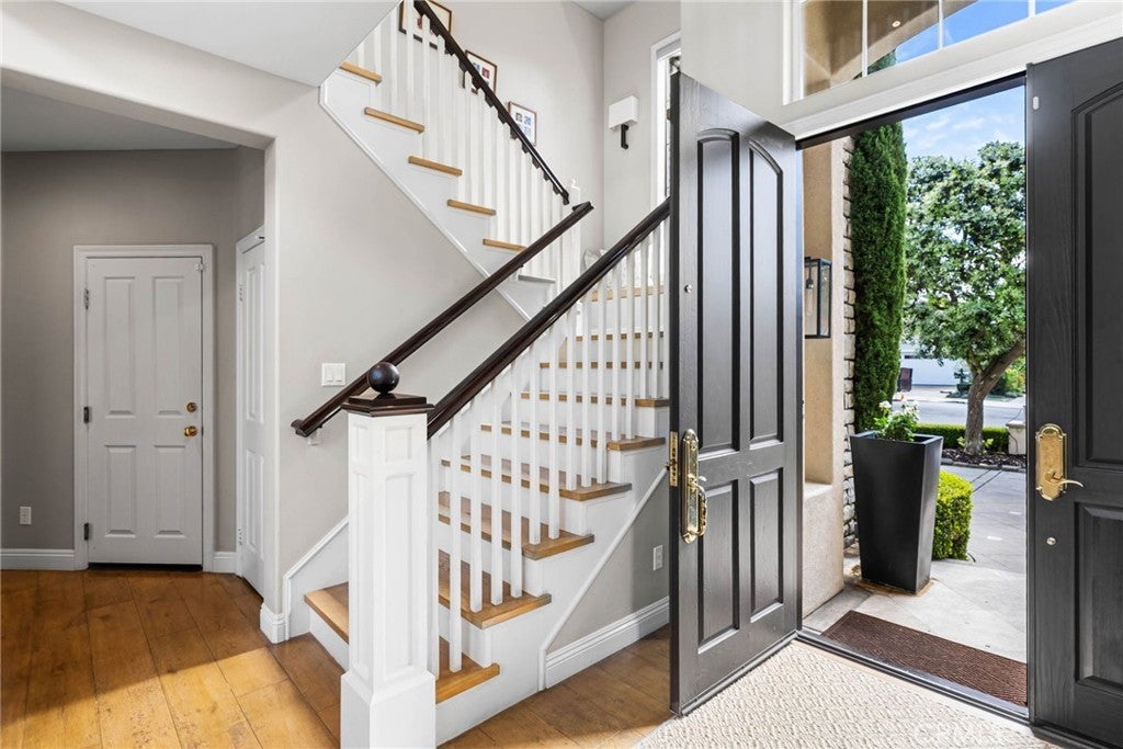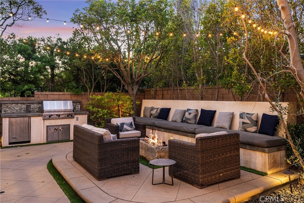 Situated on a quiet cul-de-sac within the guard-gated community of Bonita Canyon, this beautifully appointed Newport Beach residence offers privacy, functionality, and an effortless indoor-outdoor lifestyle. Featuring the highly sought-after and rarely available Plan Five layout, the home showcases a versatile and well-designed floor plan. A main-level bedroom, with direct exterior access, provides flexibility for guests, multigenerational living, or a private office. Upstairs, four additional bedrooms include a spacious primary suite with an en-suite bathroom and walk-in closet, creating a comfortable retreat from the main living areas. Natural light fills the formal living and dining areas, where high ceilings and a fireplace create a warm and inviting atmosphere, with double doors that open seamlessly to the backyard. The open-concept kitchen and family room serve as the heart of the home, enhanced by integrated Sonos surround sound and additional access to the outdoor living spaces, ideal for both everyday living and entertaining. Outdoors, the private spa, built-in barbecue, and built-in fire pit create a peaceful setting designed for relaxed evenings and intimate gatherings. Bonita Canyon residents enjoy 24-hour guard-gated security and access to exclusive community amenities, including a resort-style pool, tennis court, playground, and thoughtfully maintained common areas that foster a sense of connection. Ideally located in the heart of Newport Beach, the home offers convenient access to beaches, scenic hiking and biking trails, premier shopping and dining, John Wayne Airport, and Orange County’s leading business centers, along with top-rated schools just minutes away.